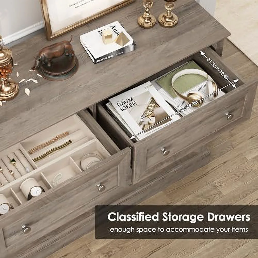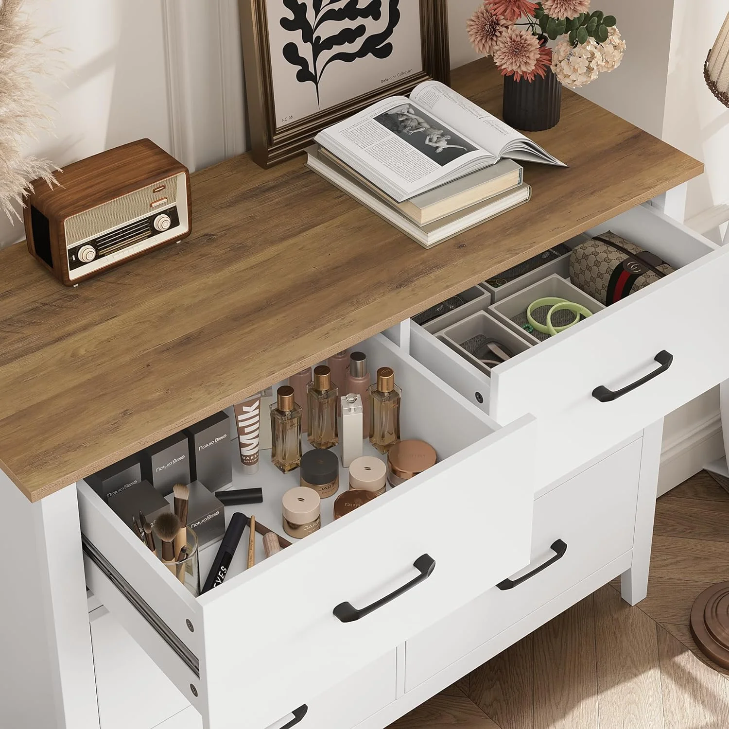 Makeup Desk Rotating Dresser and Desk 6 Drawer Dresser Vanity Makeup White