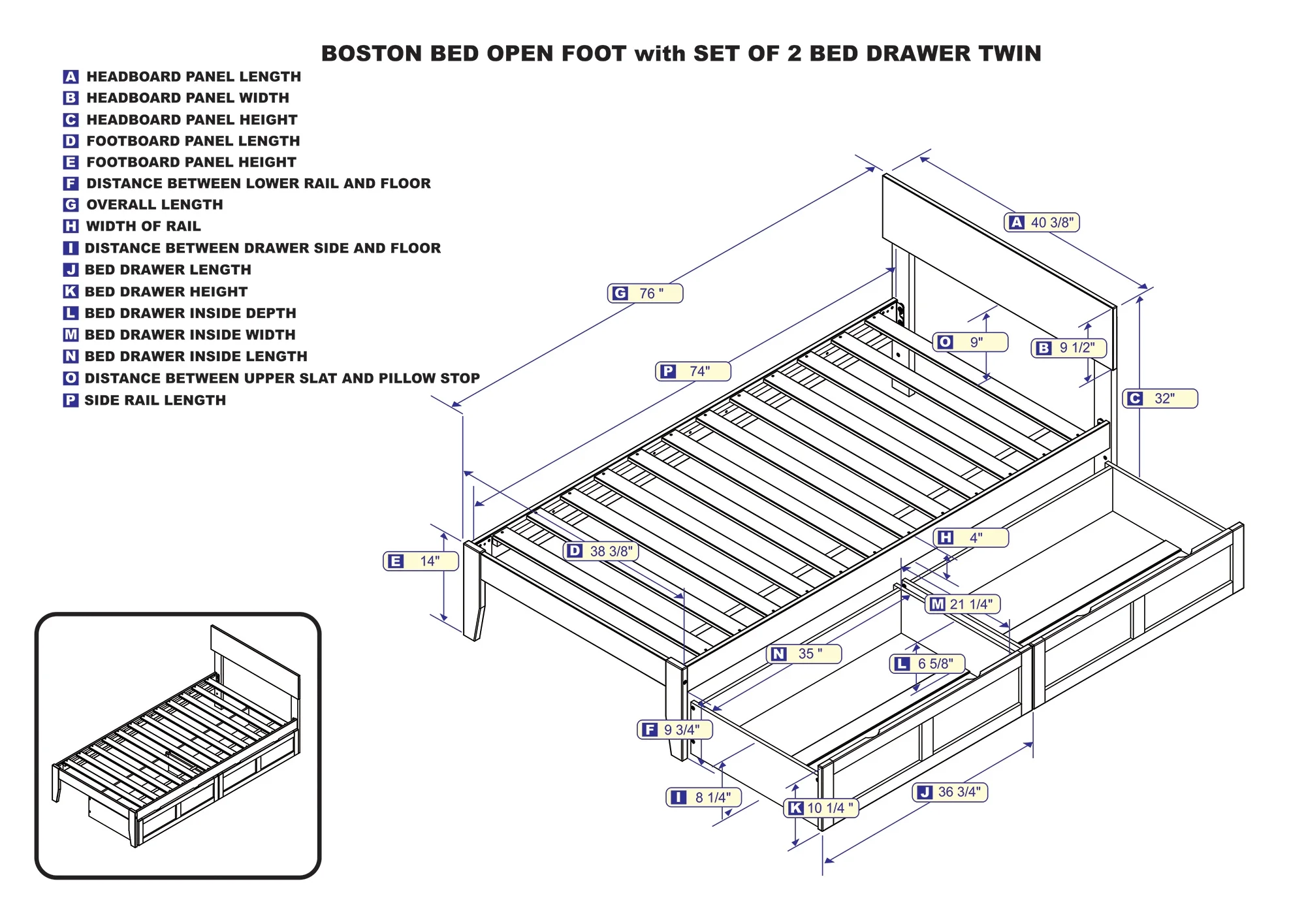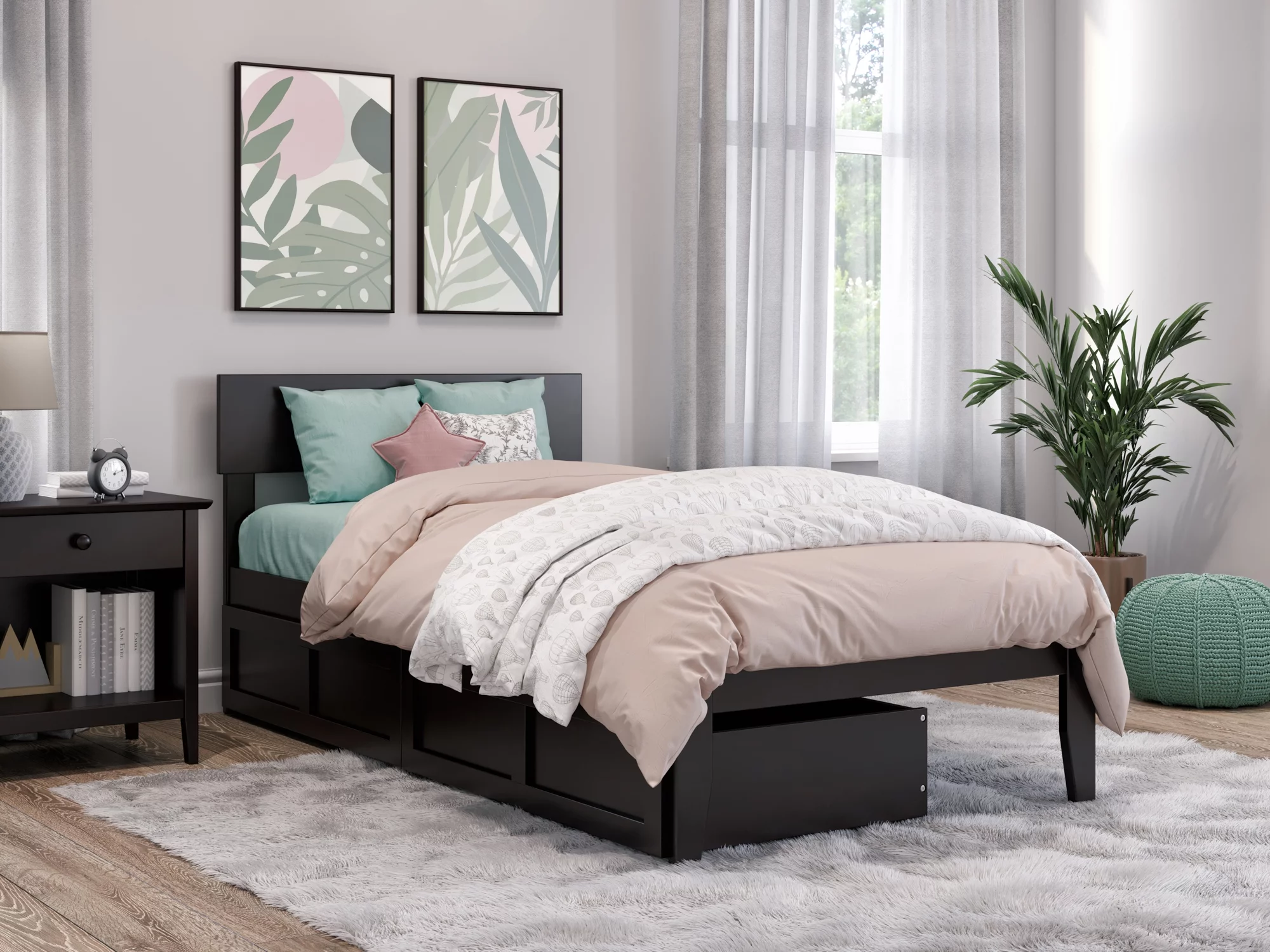 AFI Boston 14" Twin Wood Platform Bed Frame with Set of 2 Storage Drawers, Espresso