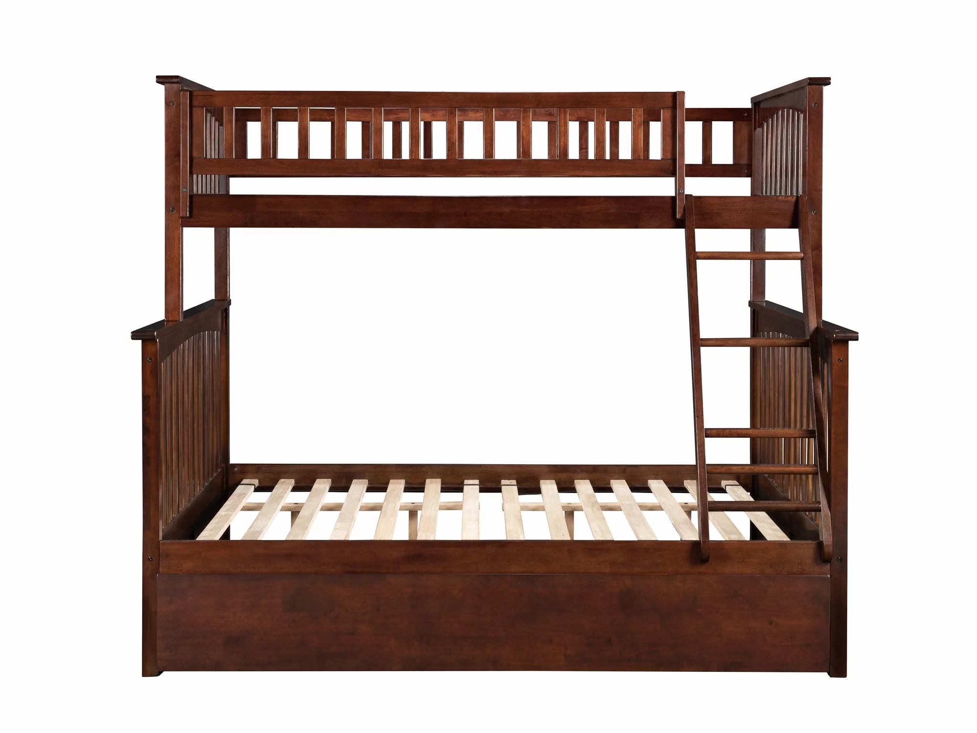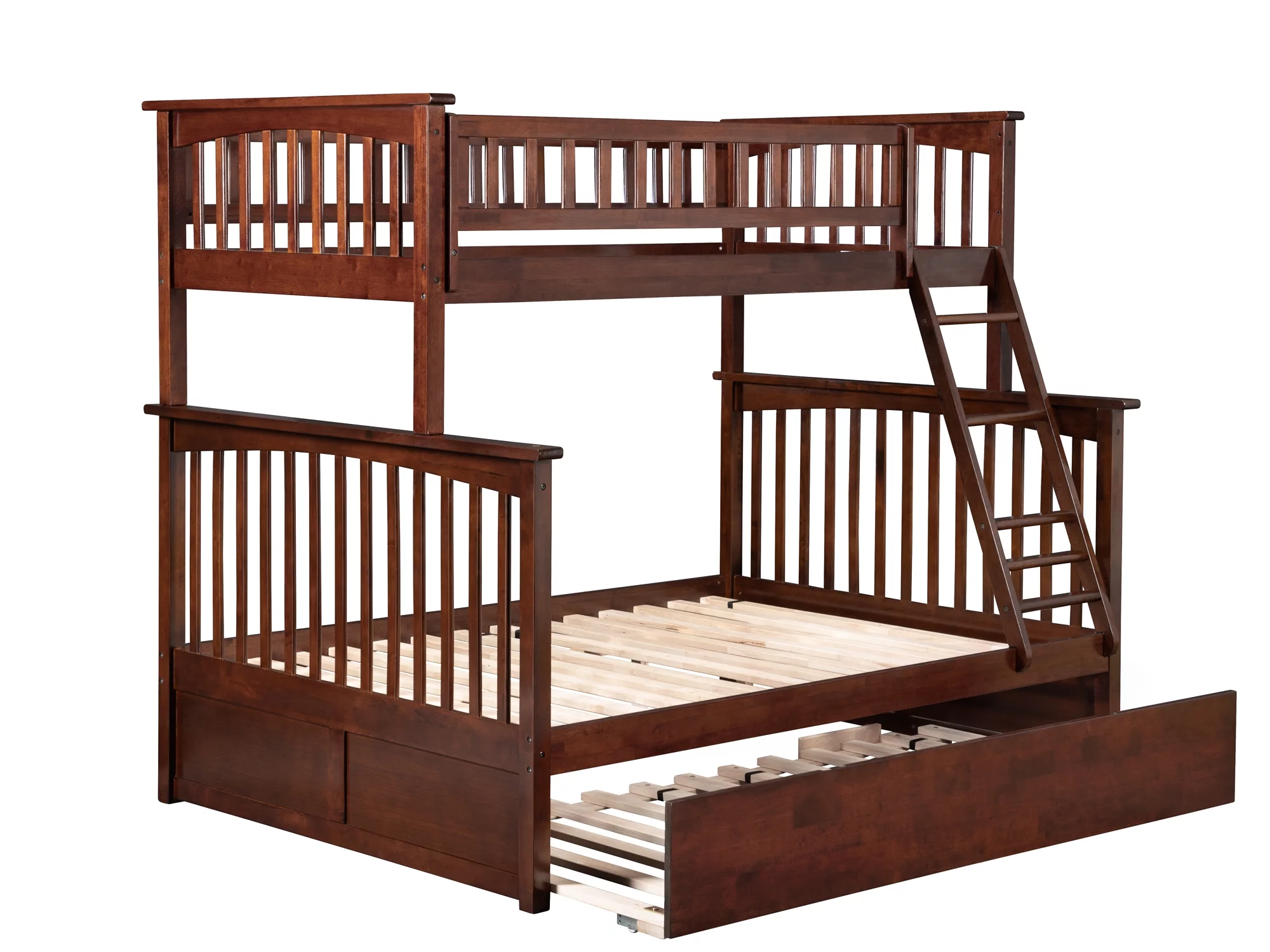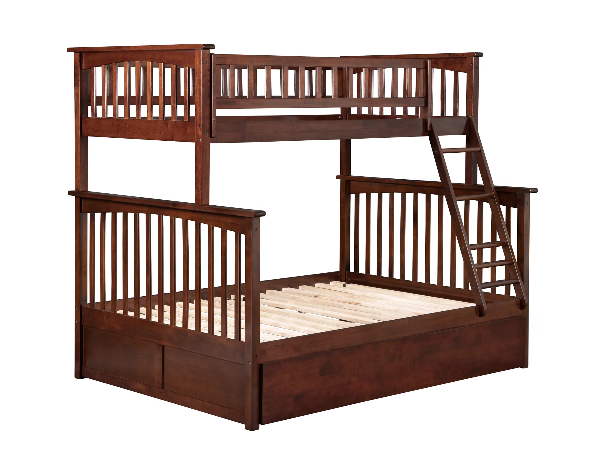 Columbia Bunk Bed Twin over Full with Full Size Urban Trundle Bed in Walnut