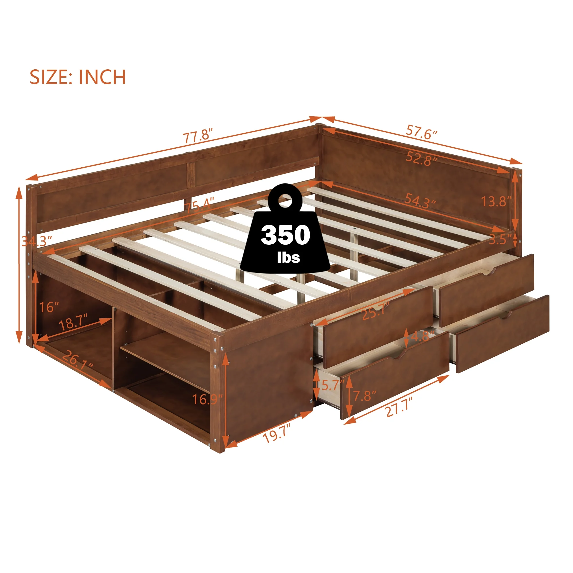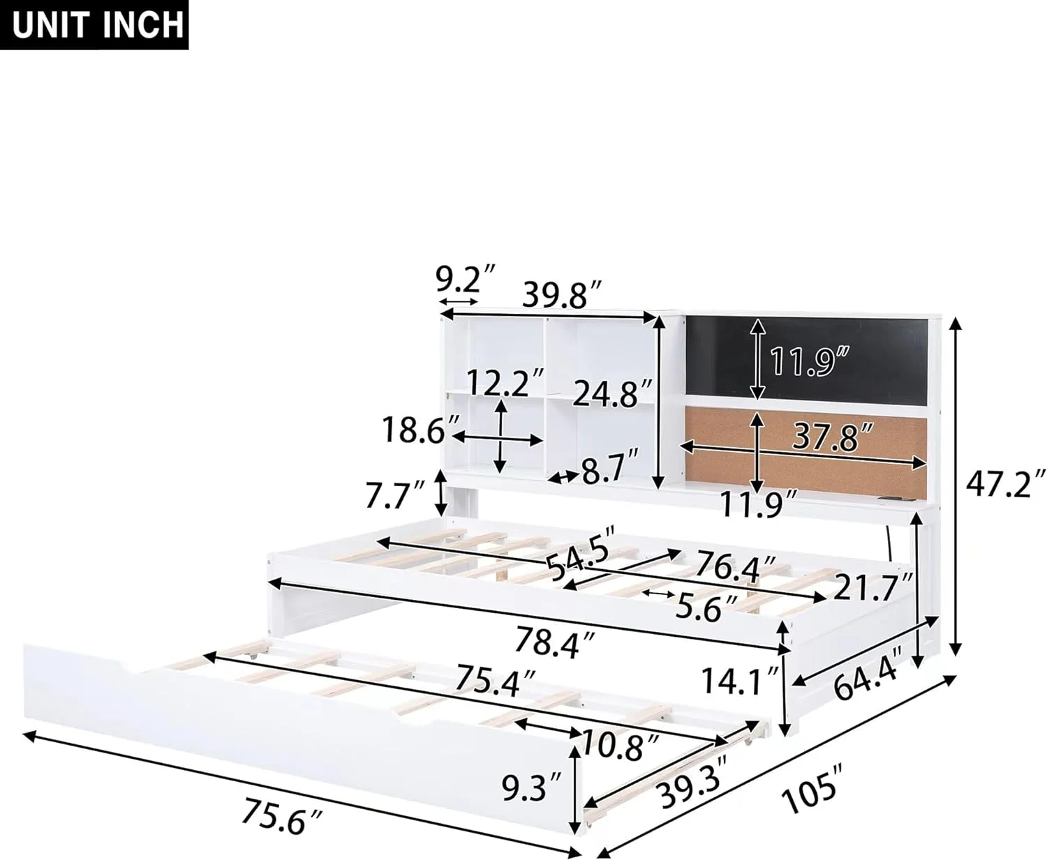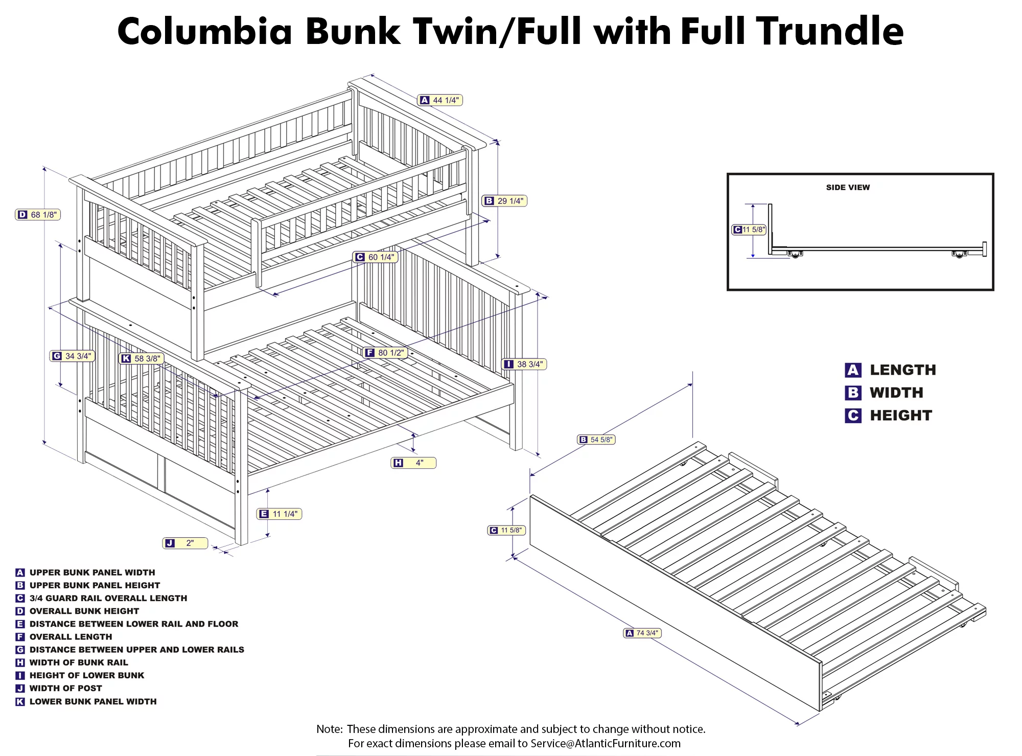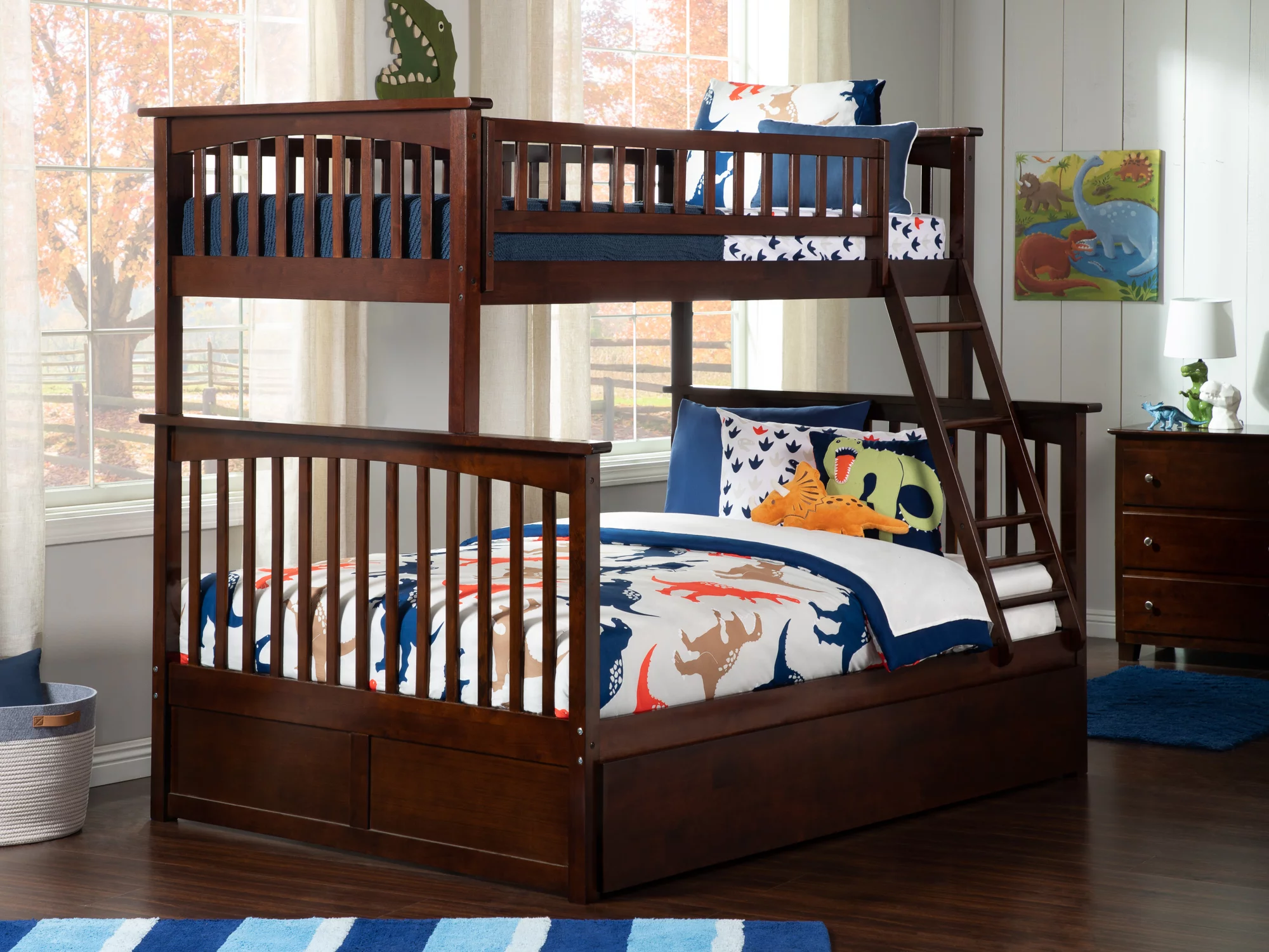 Columbia Bunk Bed Twin over Full with Full Size Urban Trundle Bed in Walnut