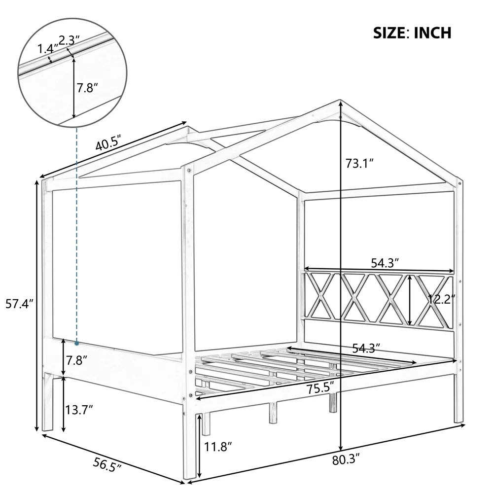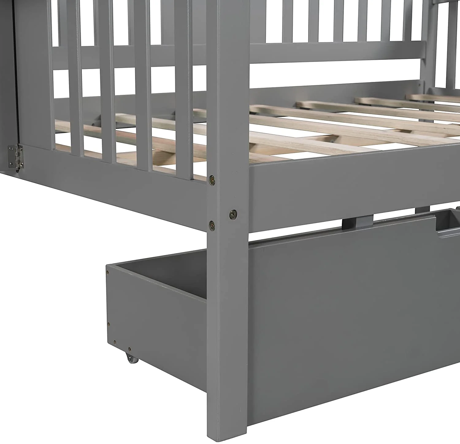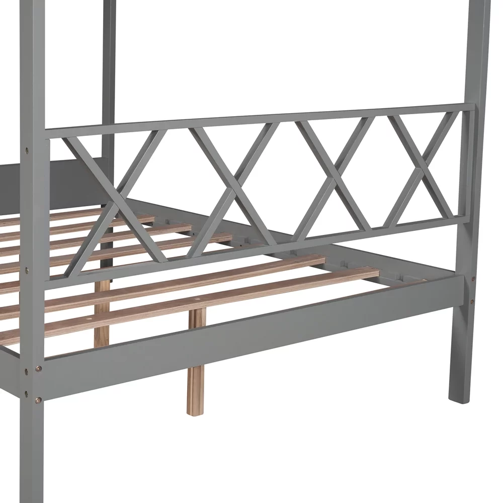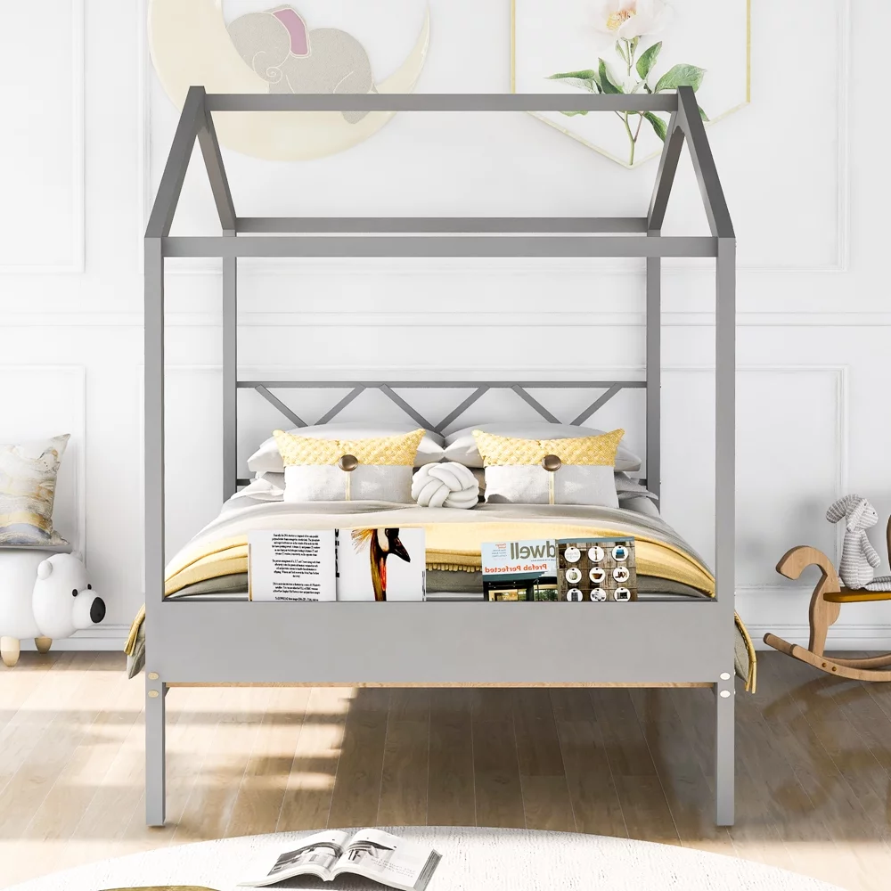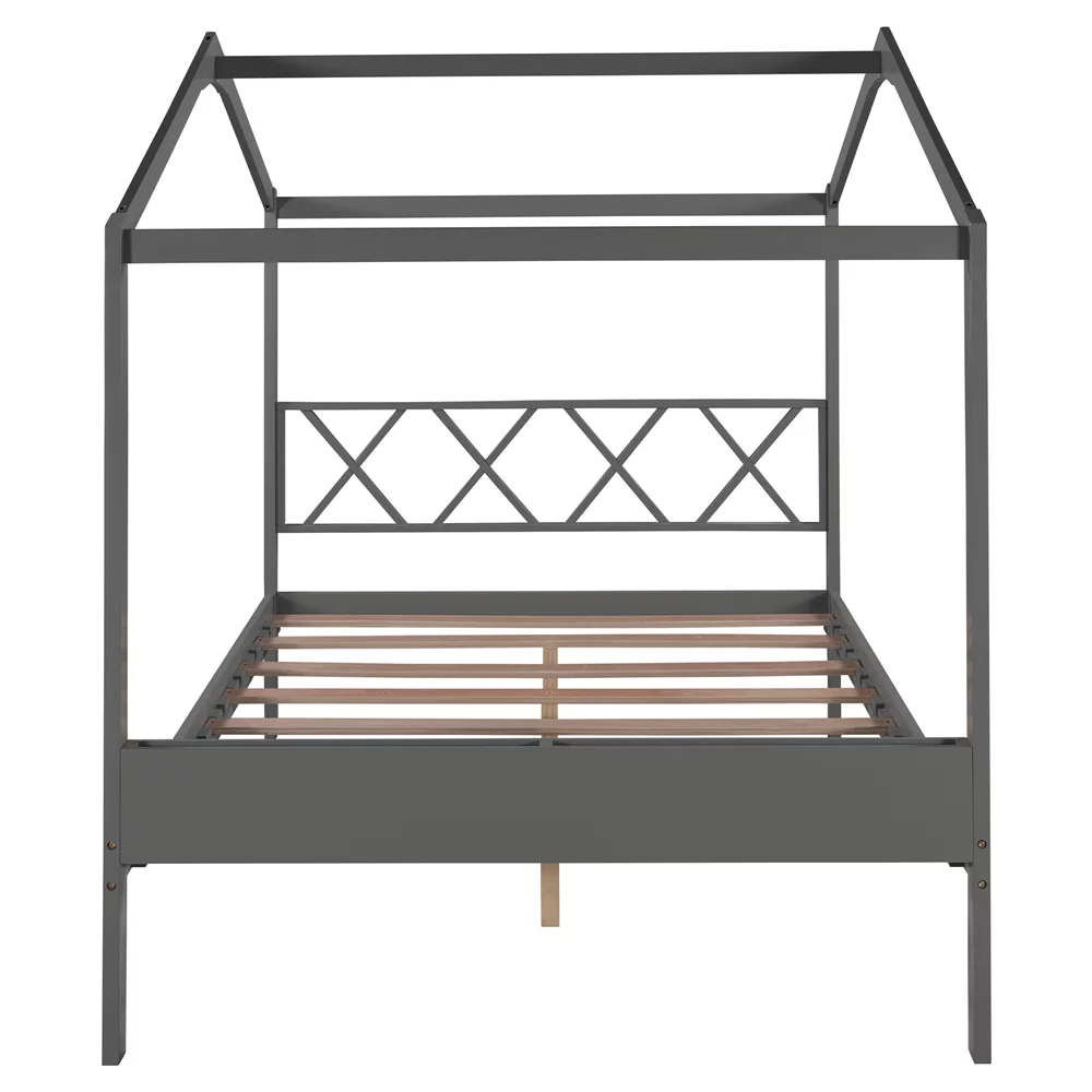 CHURANTY Full Size Wood House Bed, Daybed with Roof and Storage Space for Kids/Boys /Girls, No Box Spring Needed, Gray