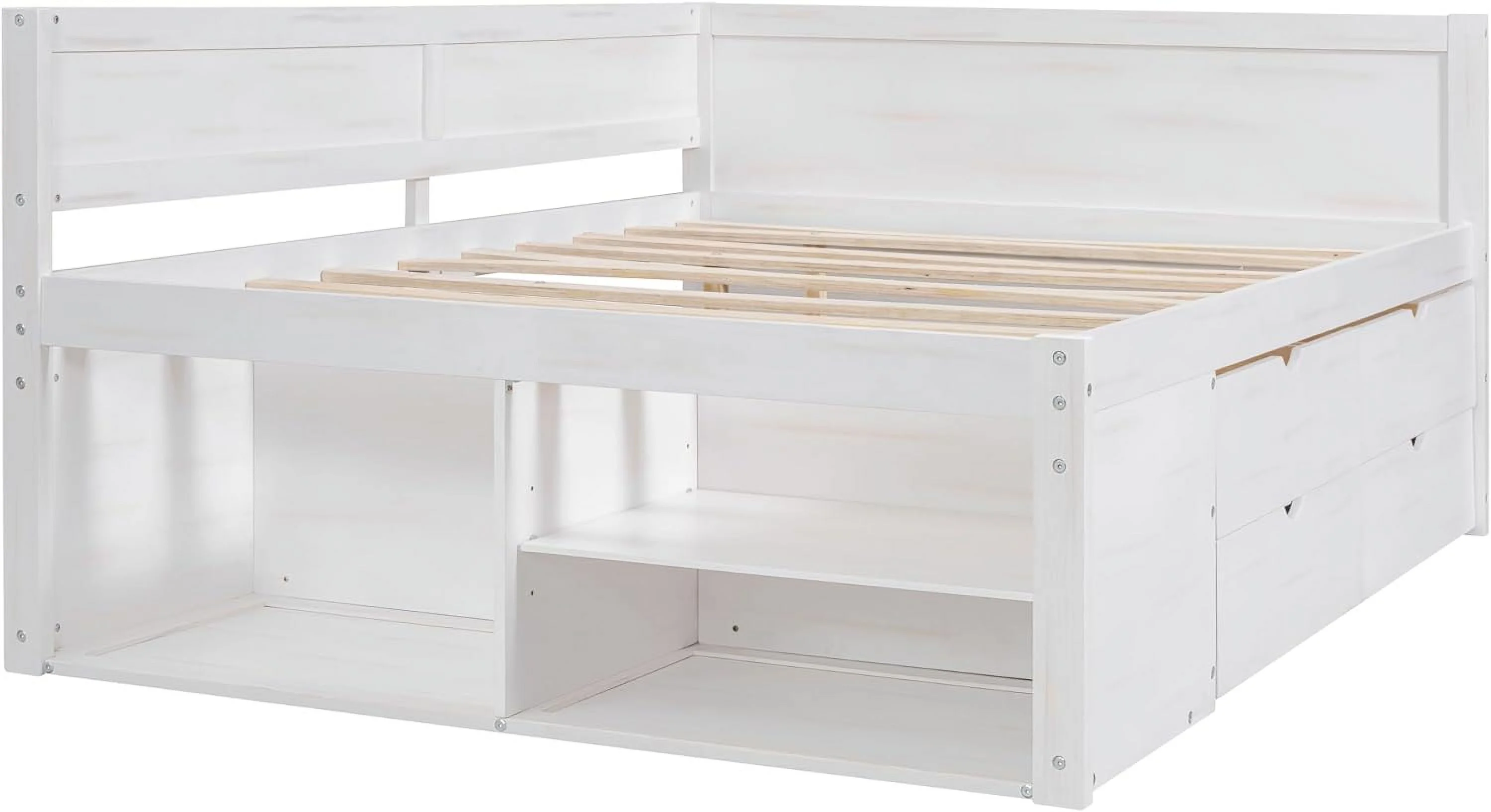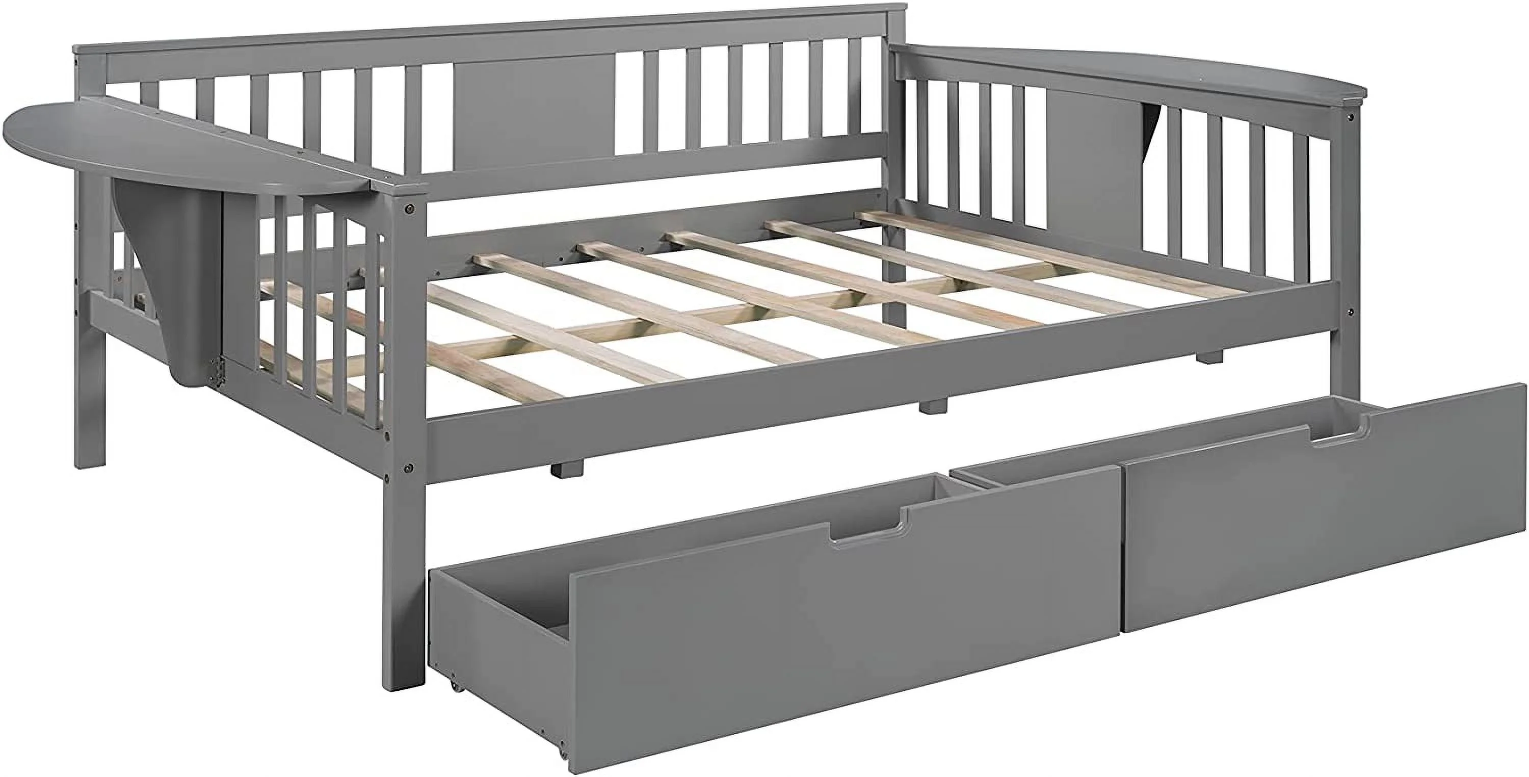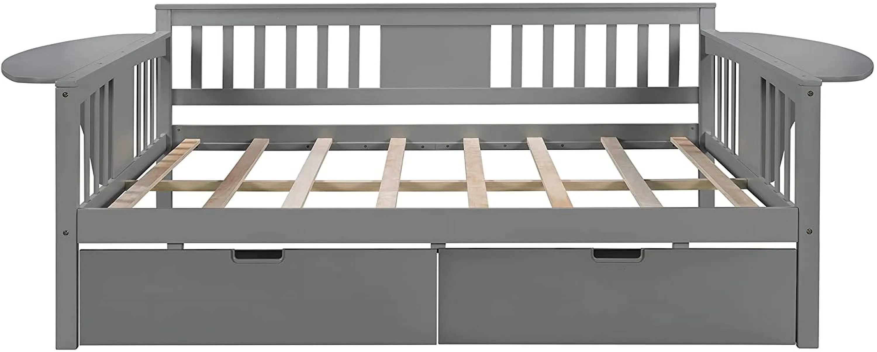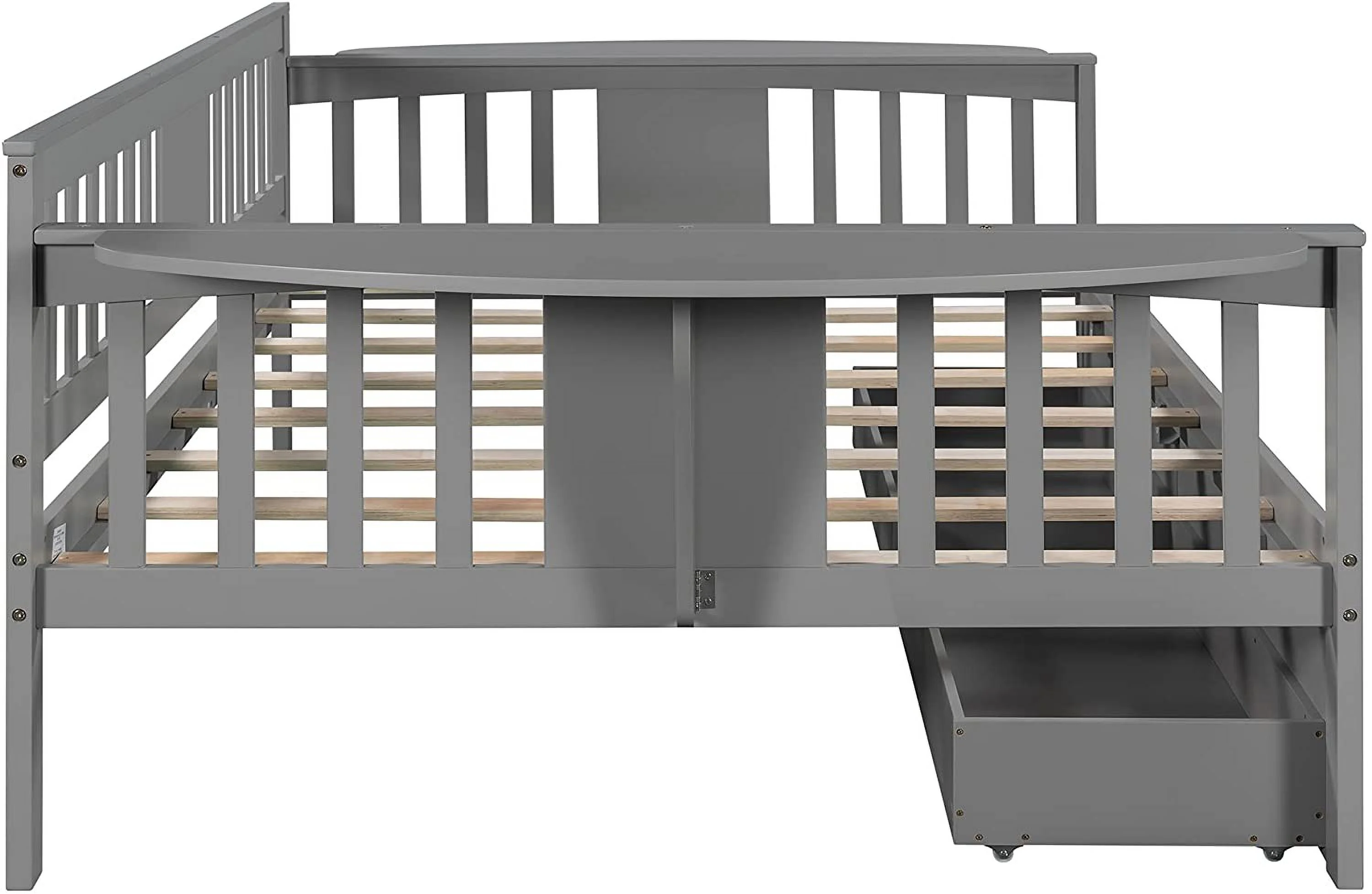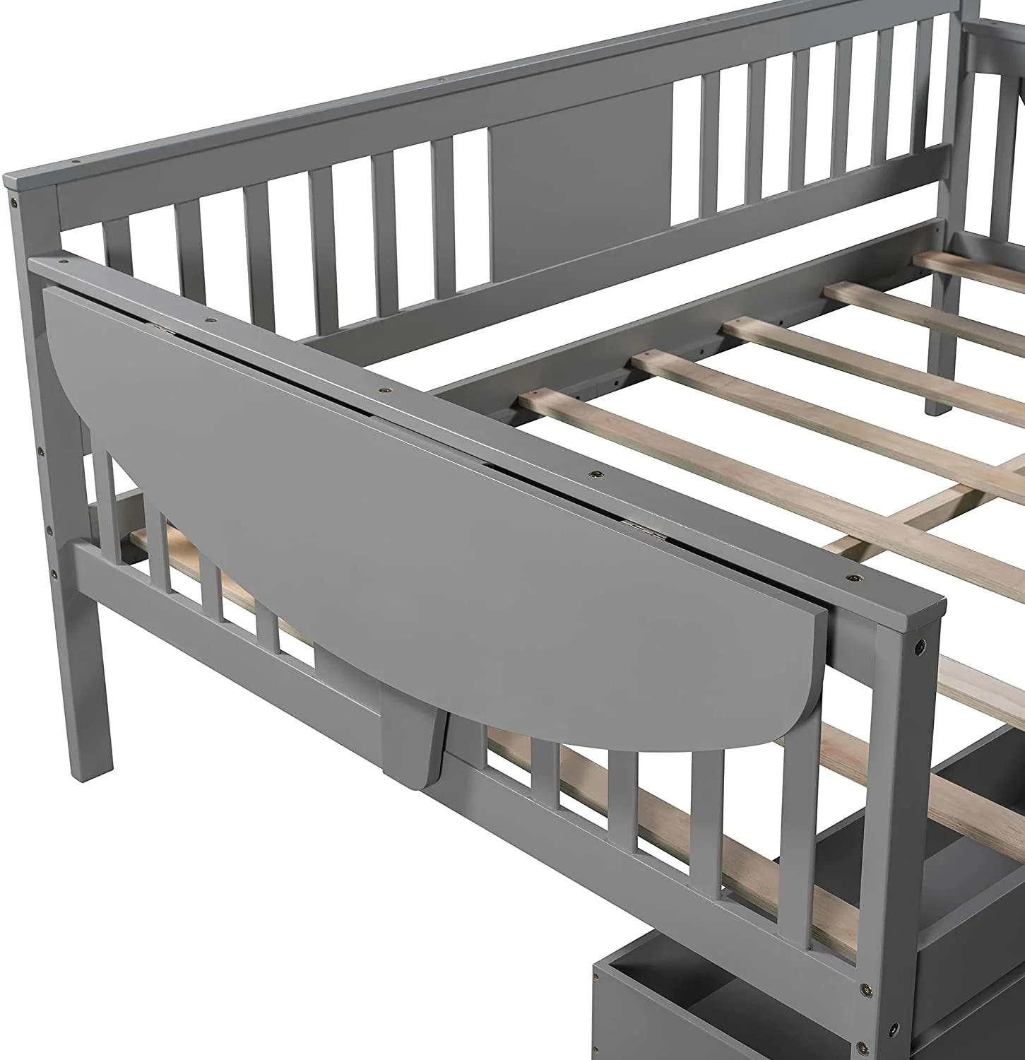 CHURANTY Full Size Wood House Bed, Daybed with Roof and Storage Space for Kids/Boys /Girls, No Box Spring Needed, Gray