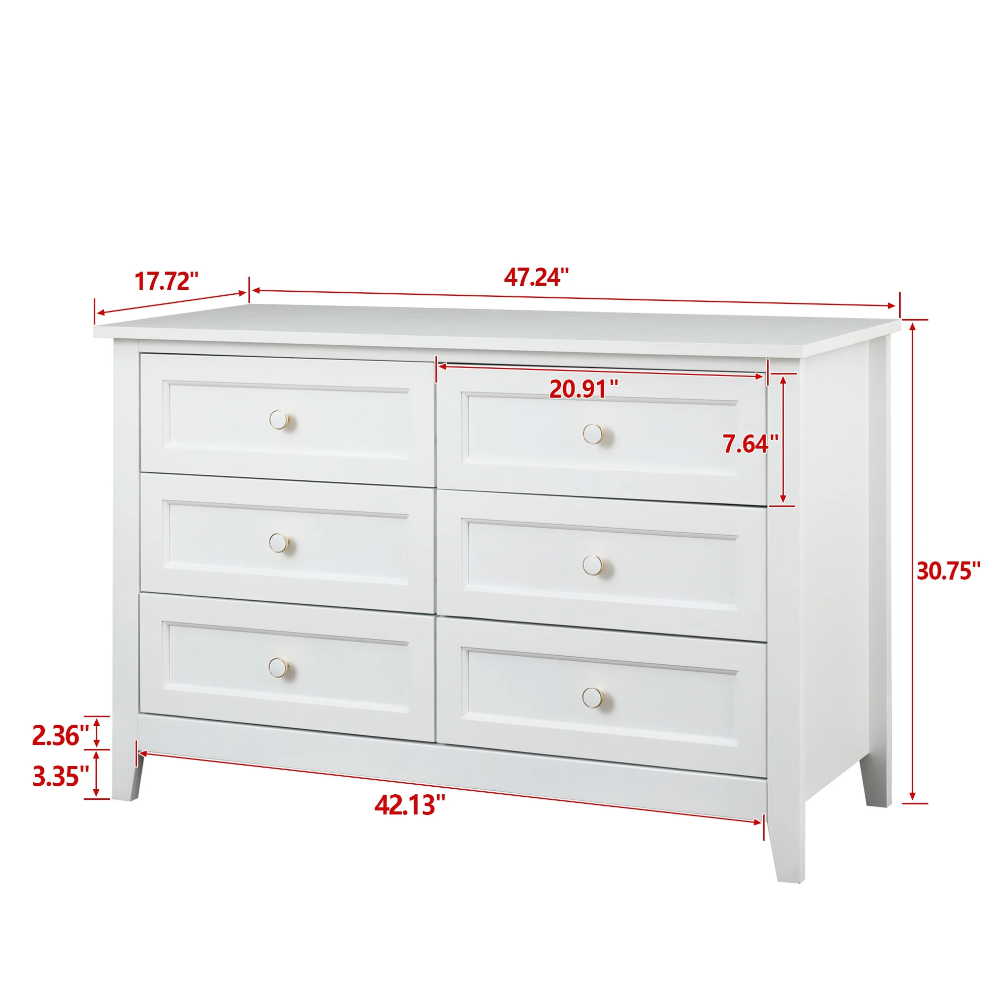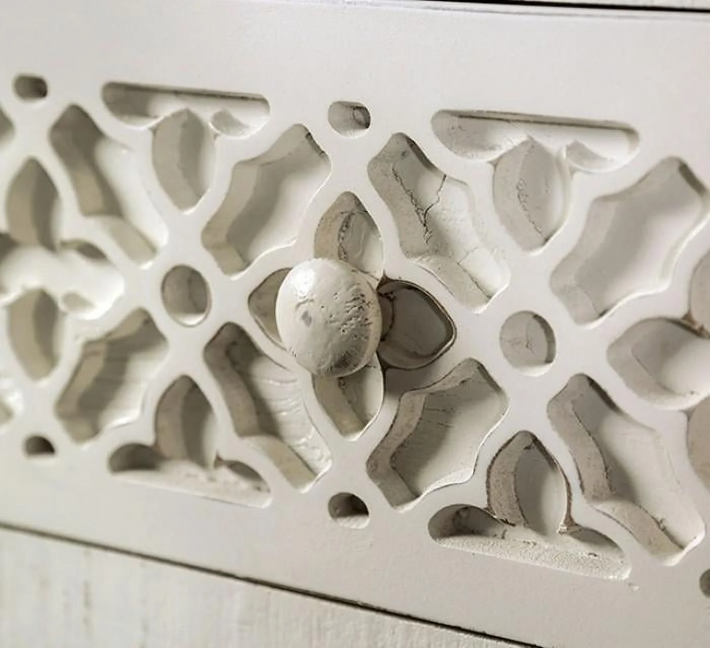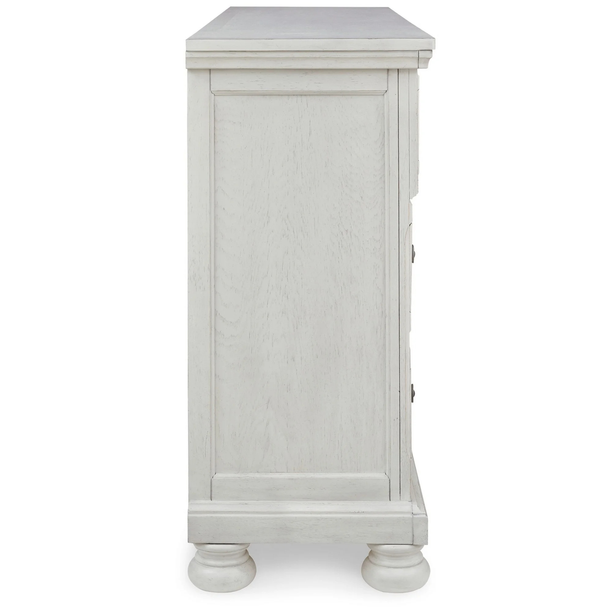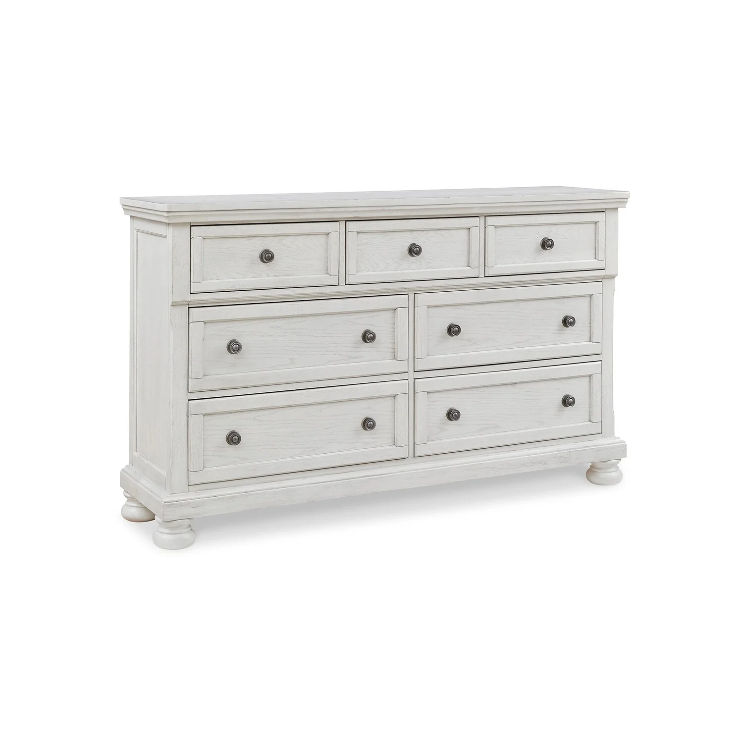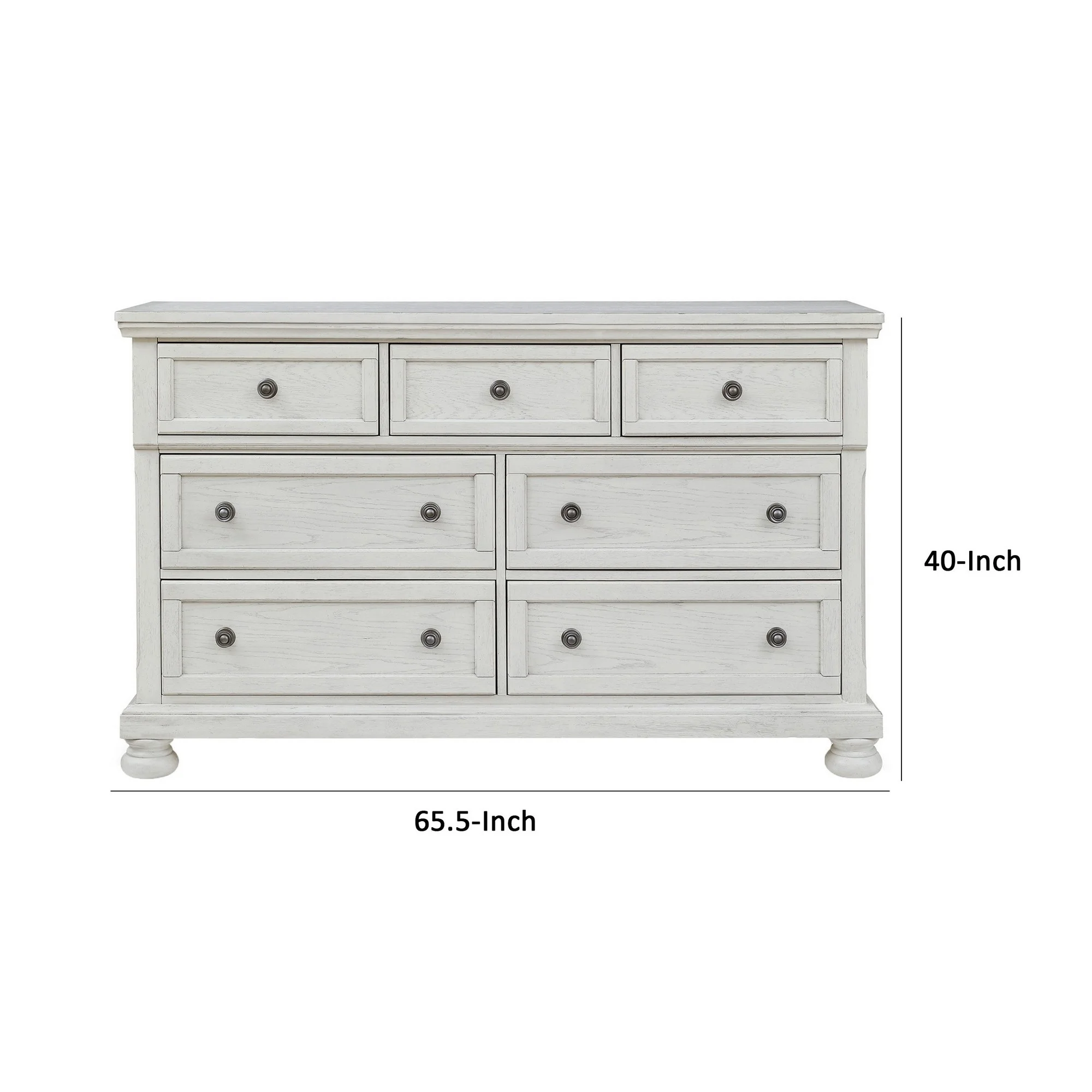 Benjara Kith 66 Inch Traditional Dresser, Vintage White Wood, 7 Drawers, Bun Feet