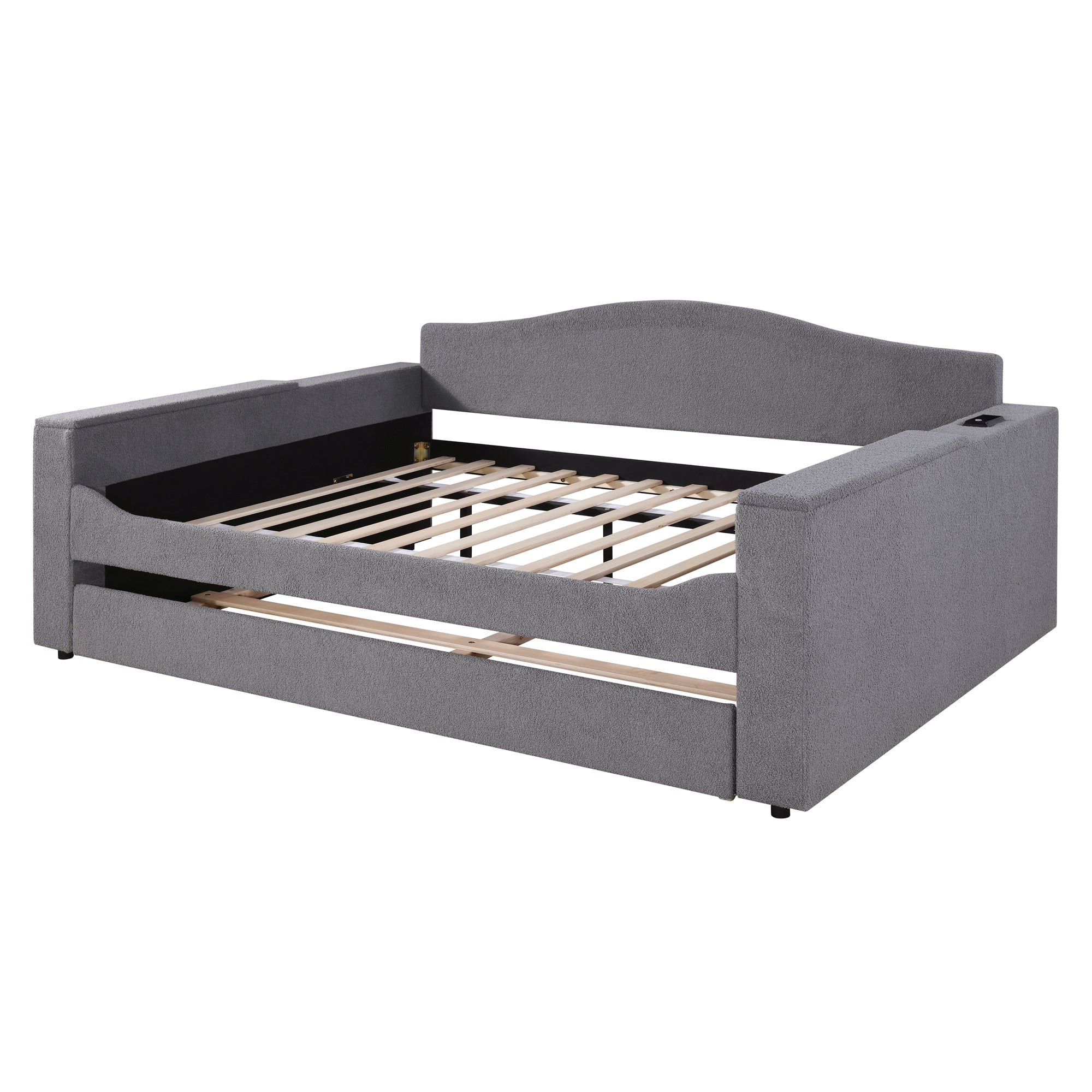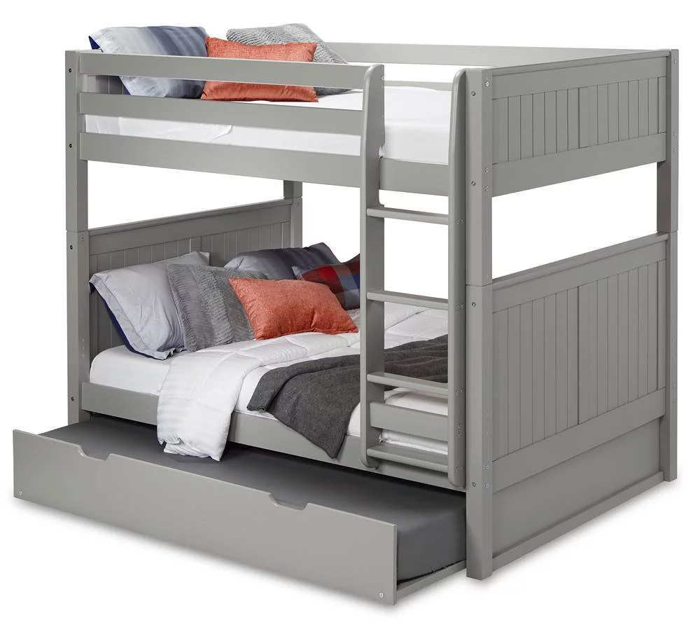 Camaflexi Full over Full Bunk Bed with Twin Trundle - Panel Headboard - Grey Finish