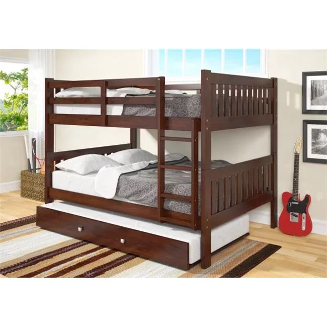 Pivot Direct PD-1015-3CP-503CP Full Over Full Mission Bunk Bed with Twin Trundle in Dark Cappuccino