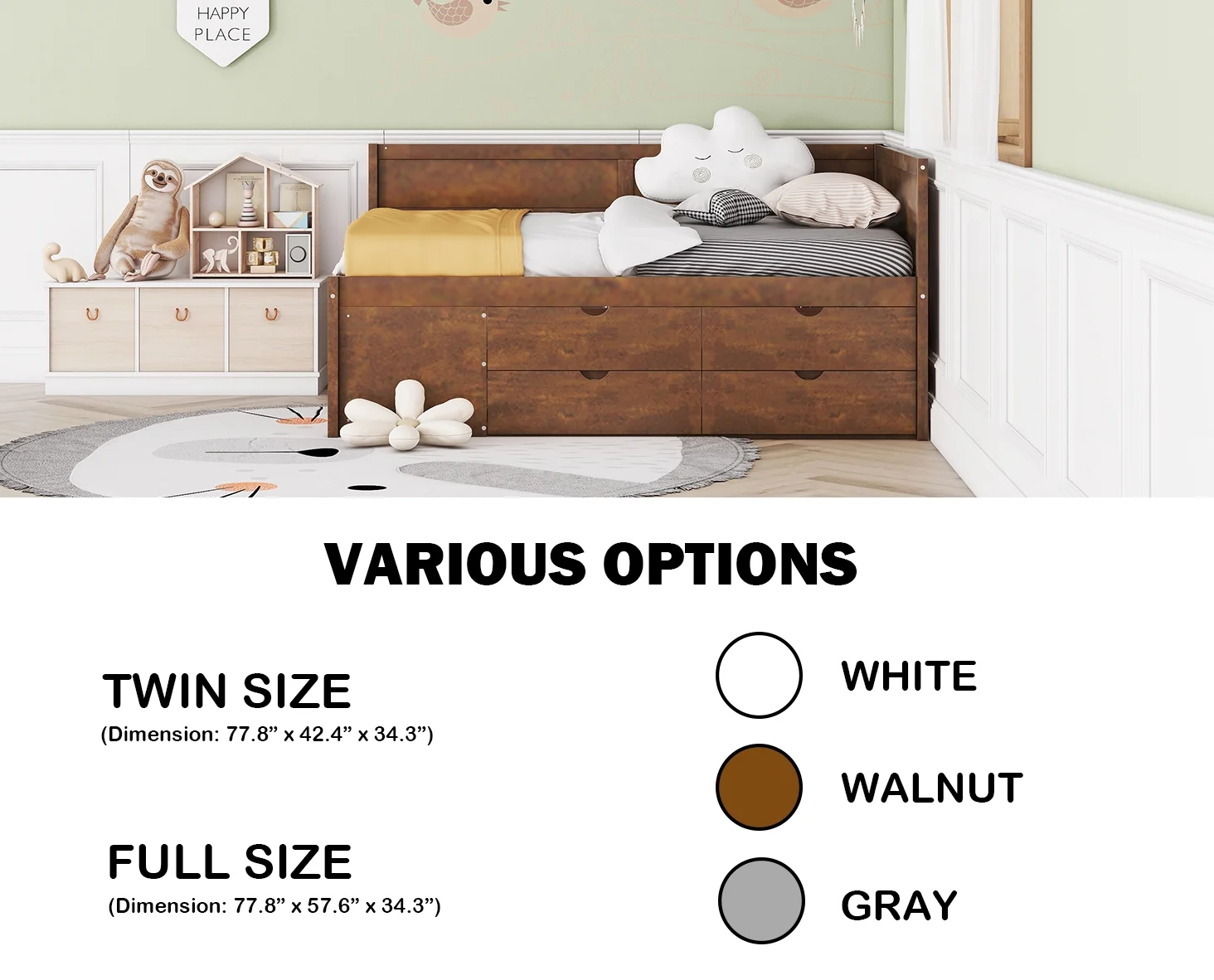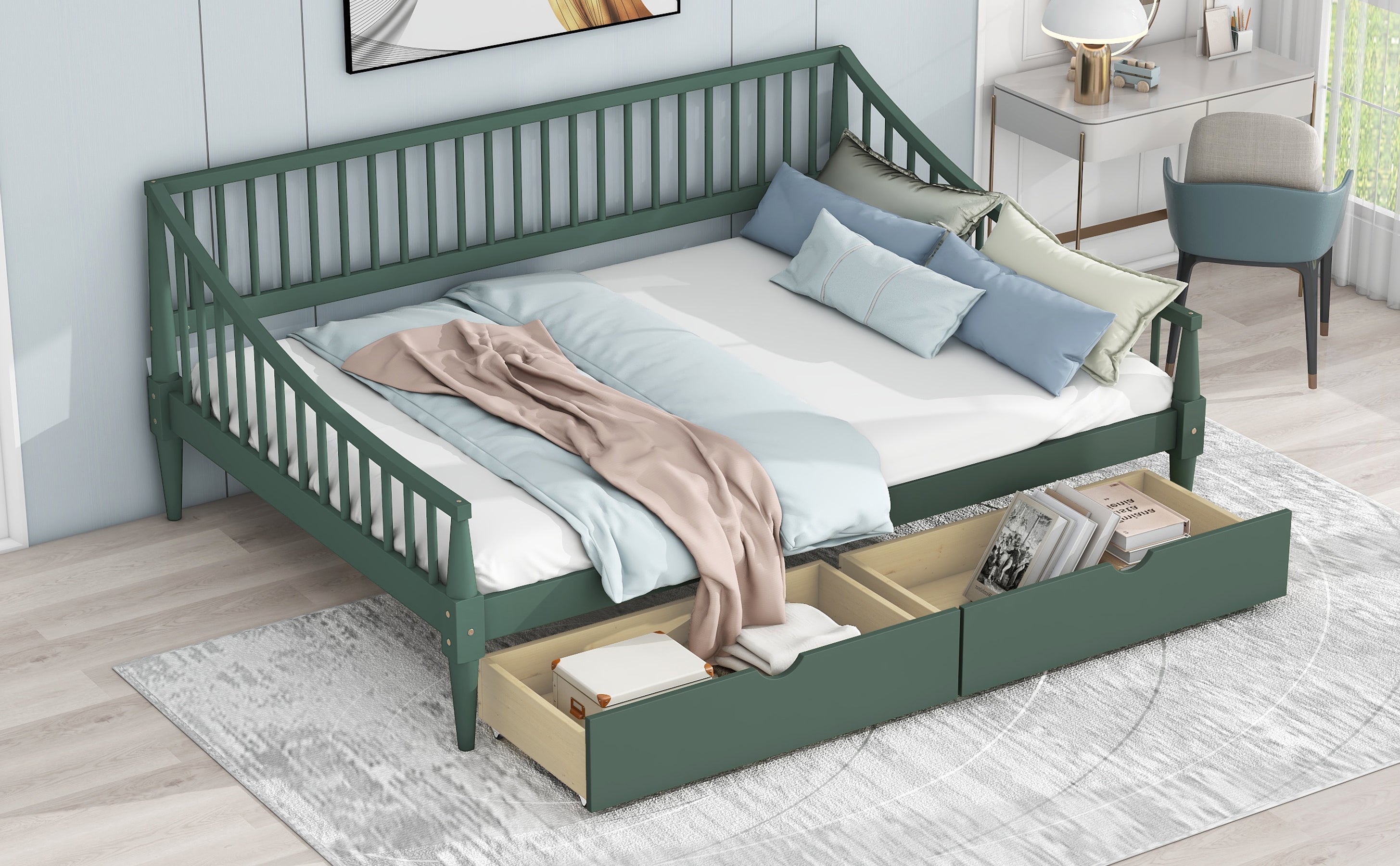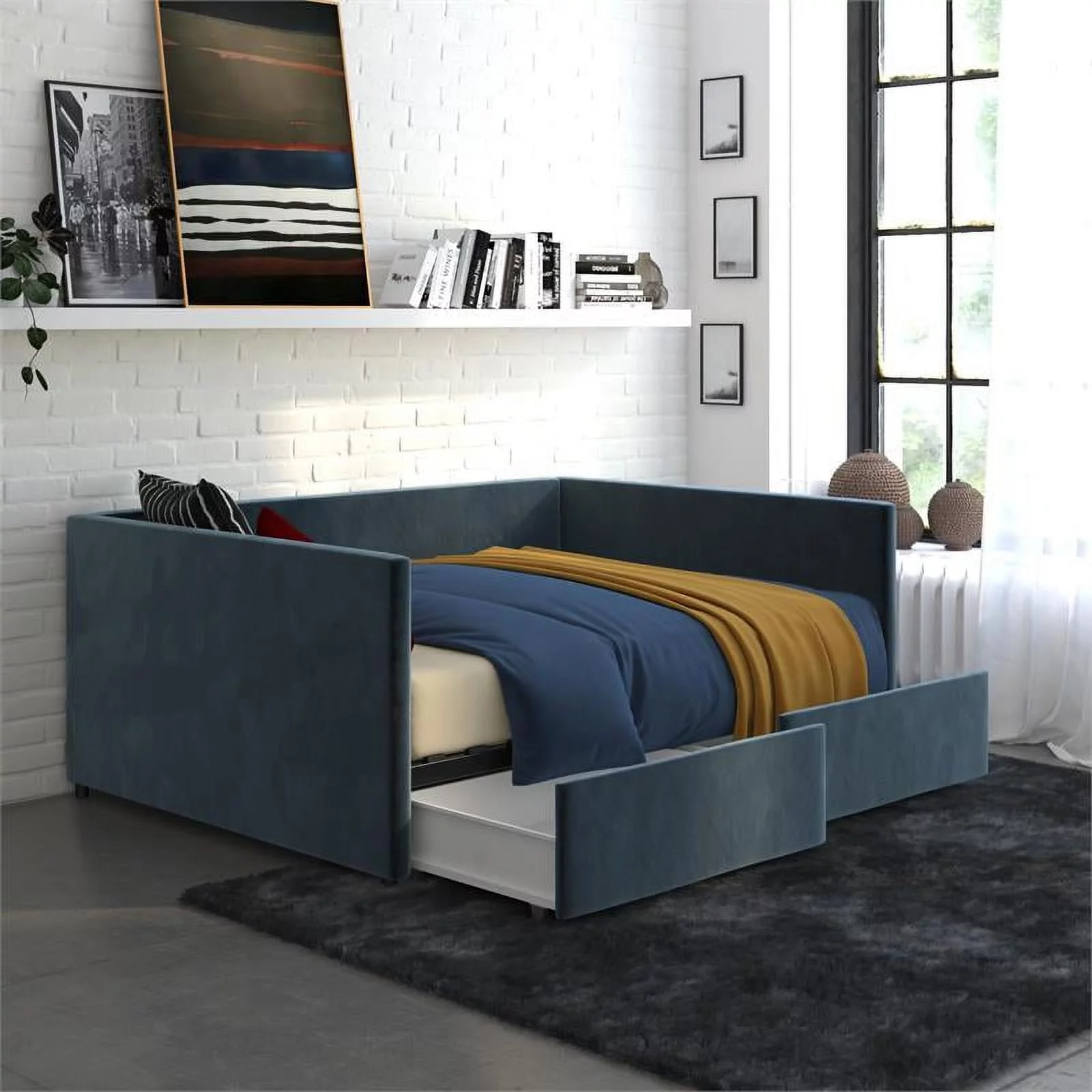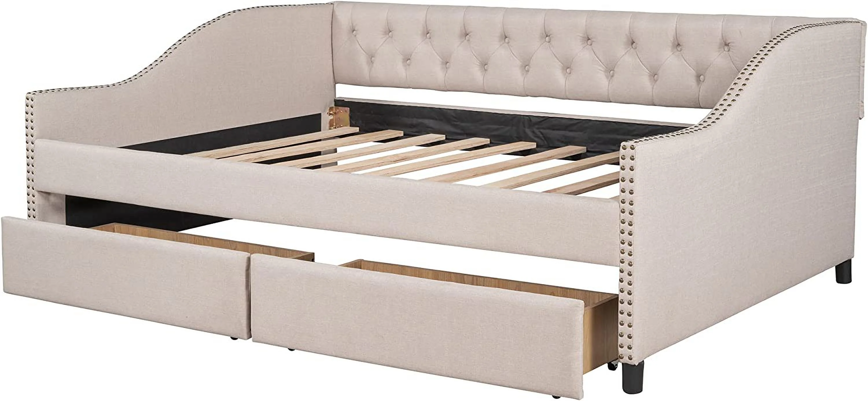 Aukfa Full Size Daybed with Two Storage Drawers, Upholstered Sofa Bed Frame, Yellow