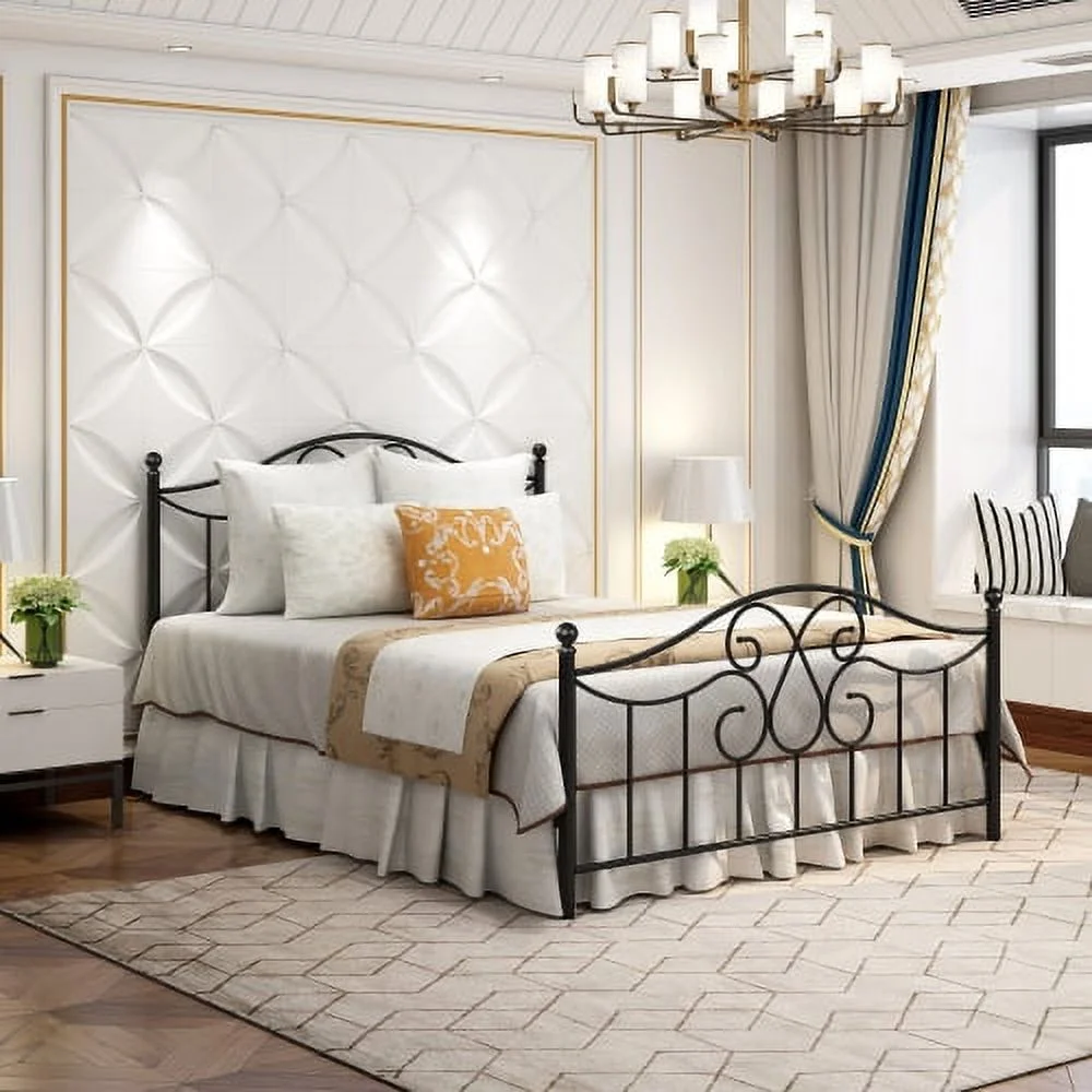 Queen Szie Bed Frame, Mattress Foundation with Headboard & Footboard, Black