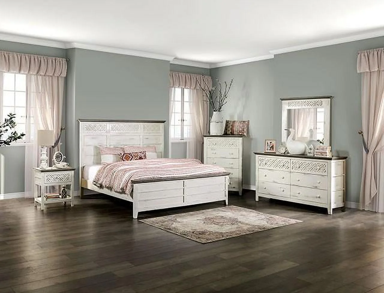 Rustic Vintage Ivory Solid Wood Dresser w/Mirror FOA EM7079IV-D Myrtlemoore