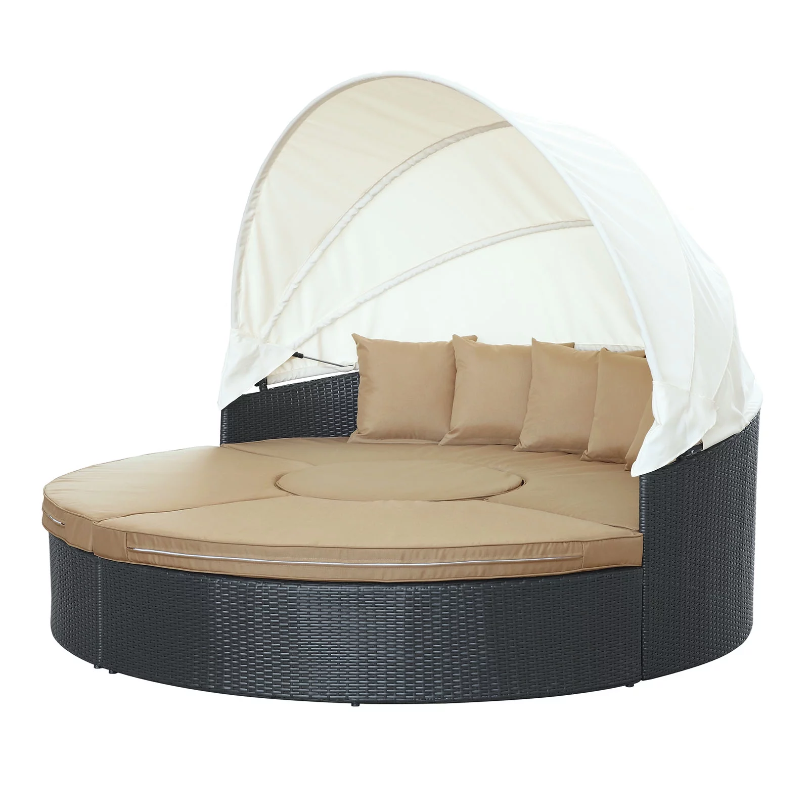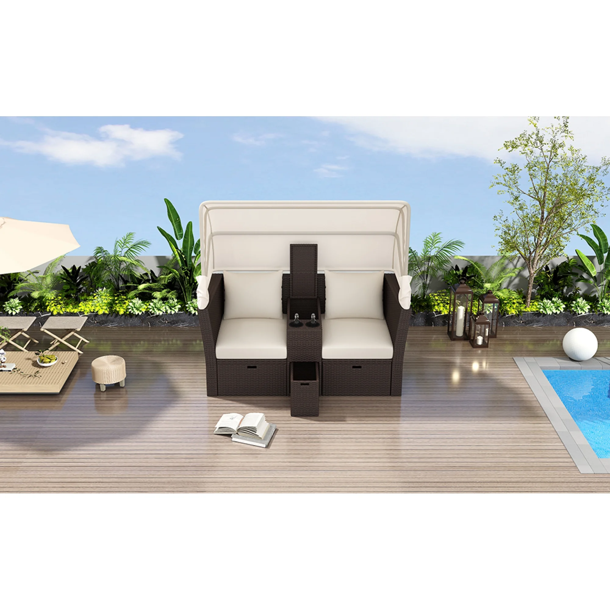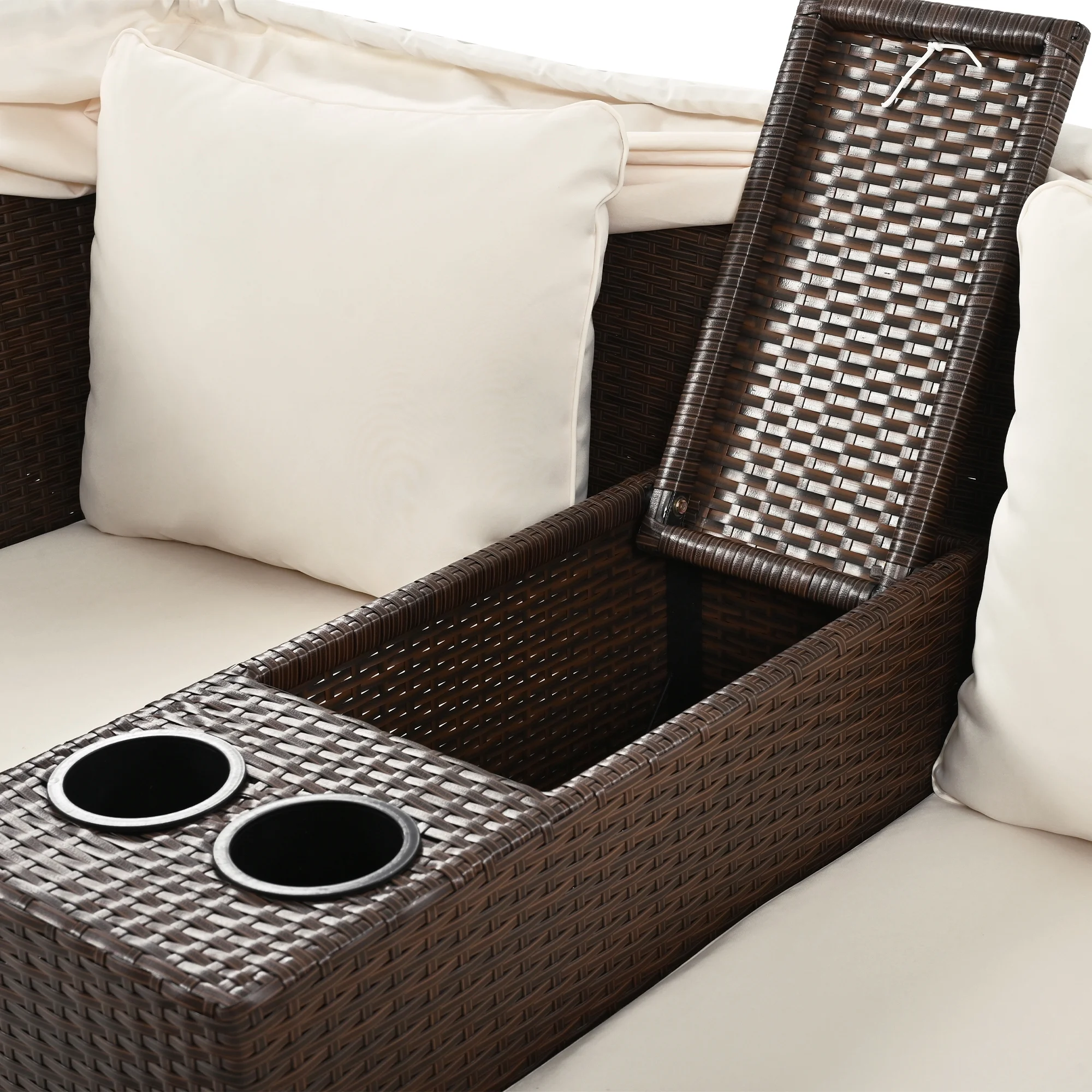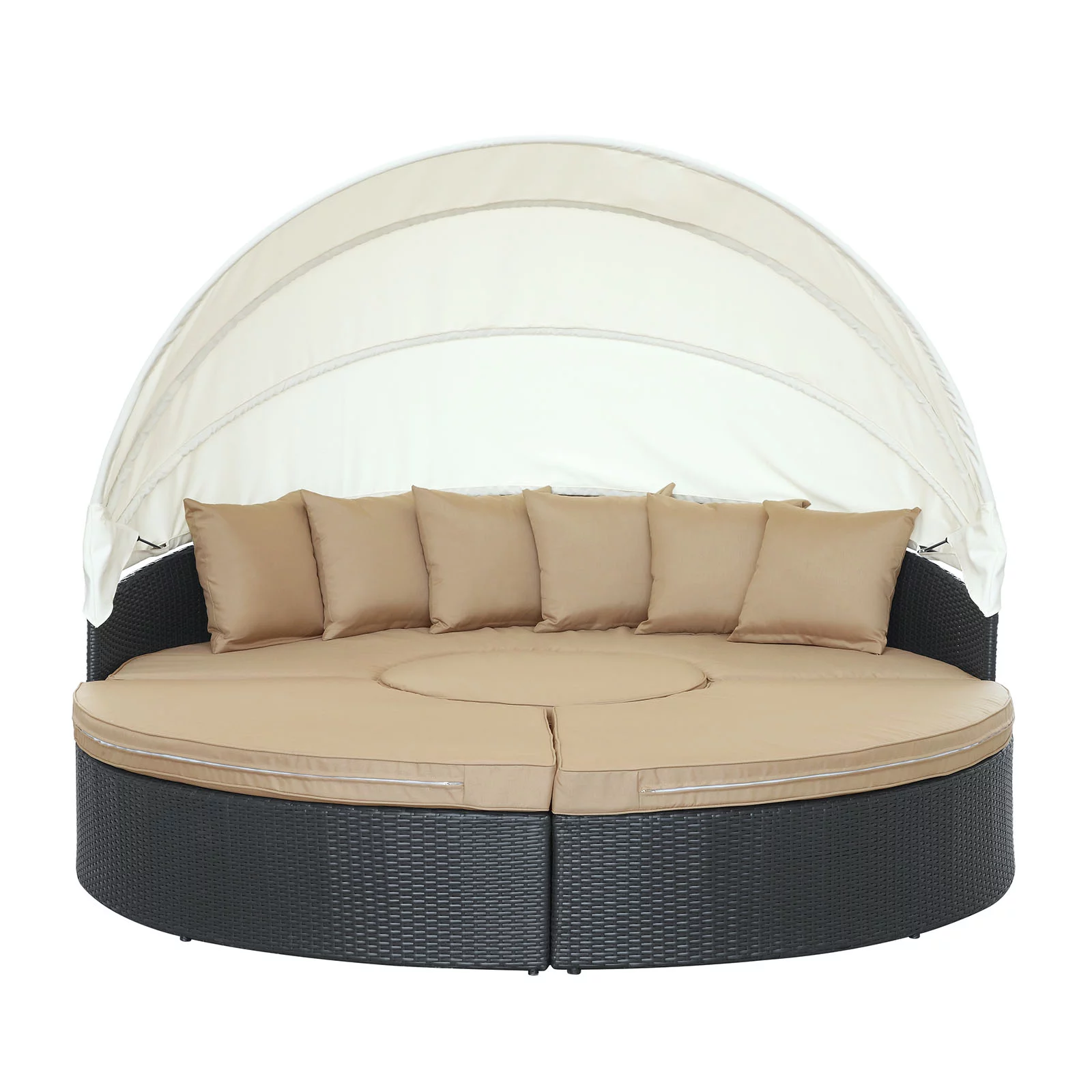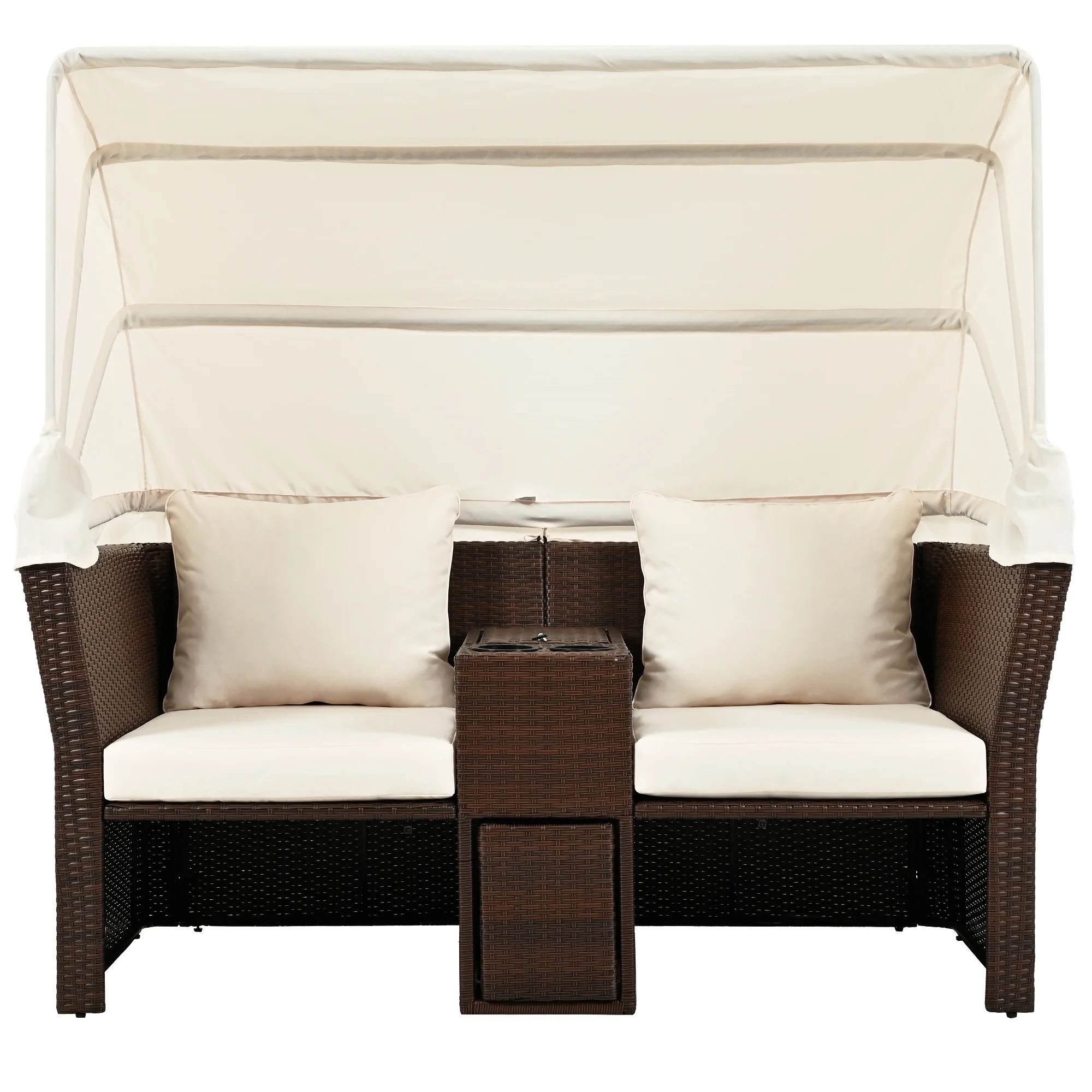 Modern Contemporary Outdoor Patio Rattan and Wicker Canopy Sofa Brown