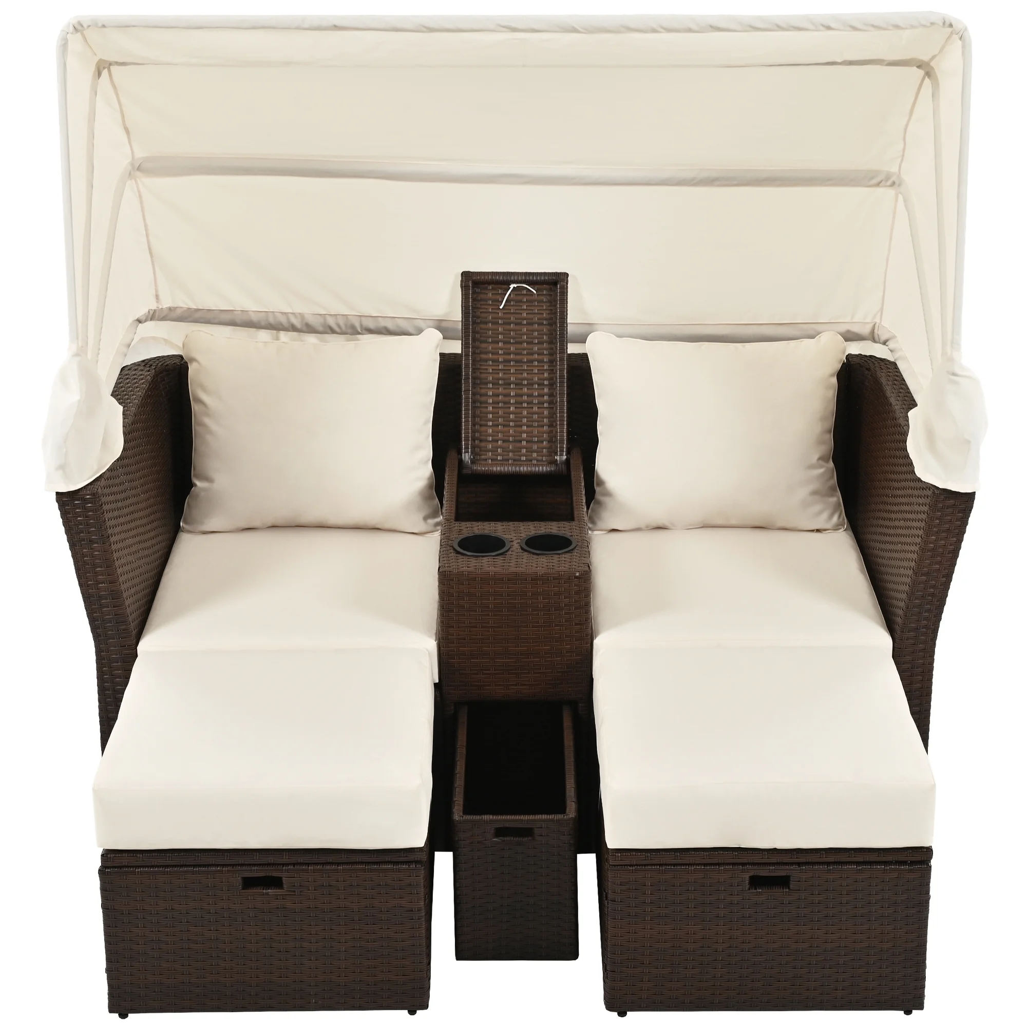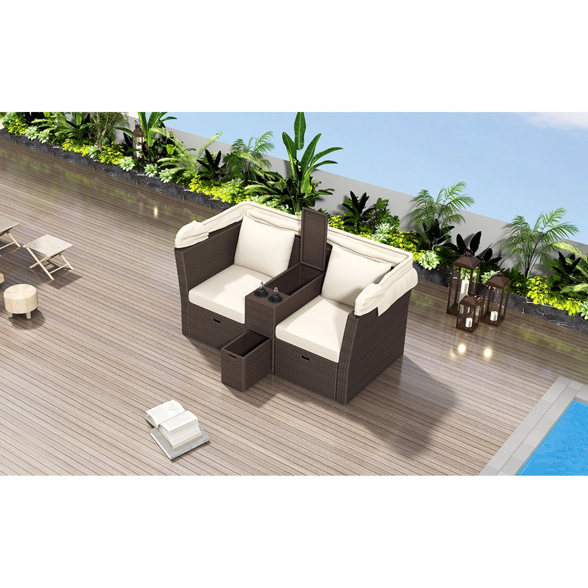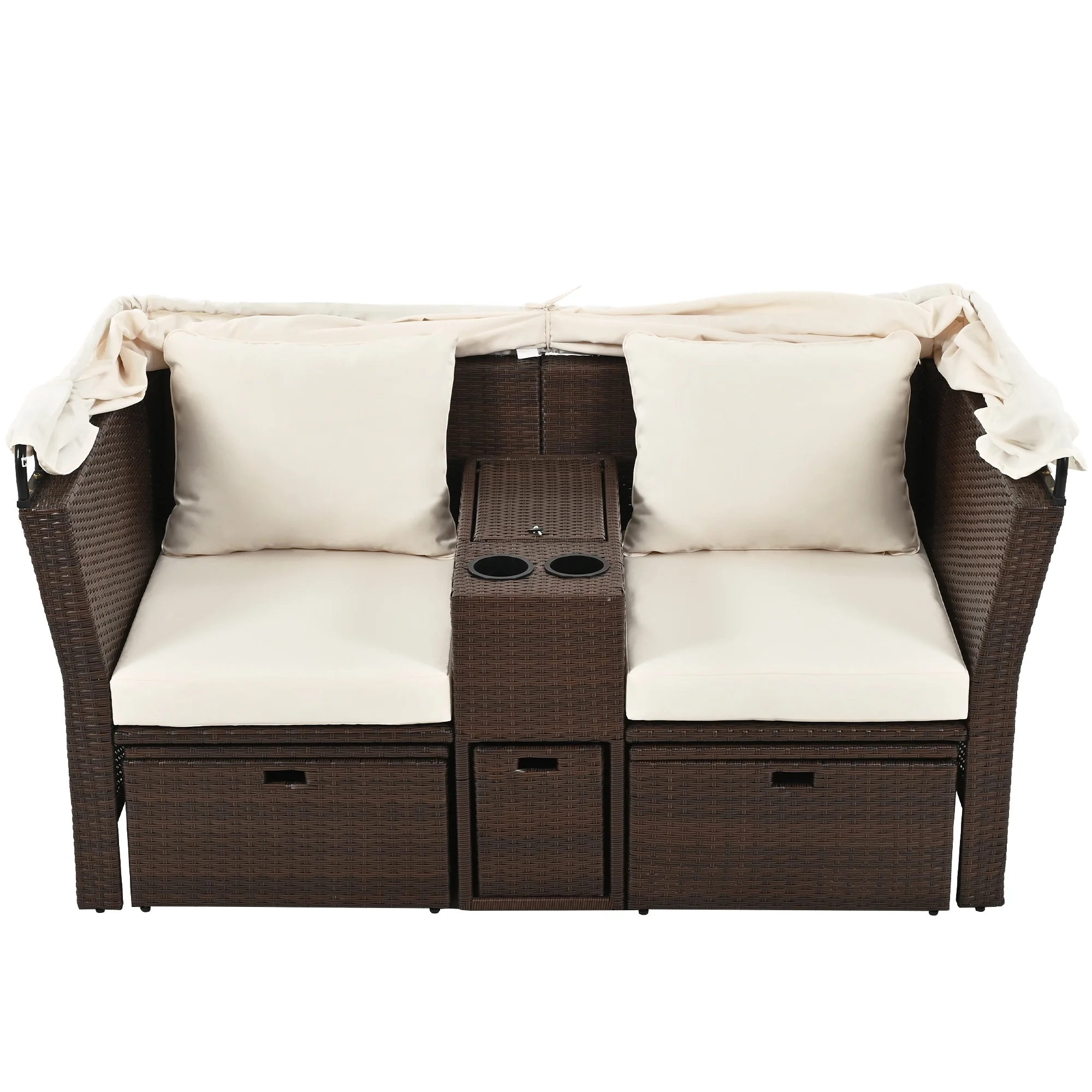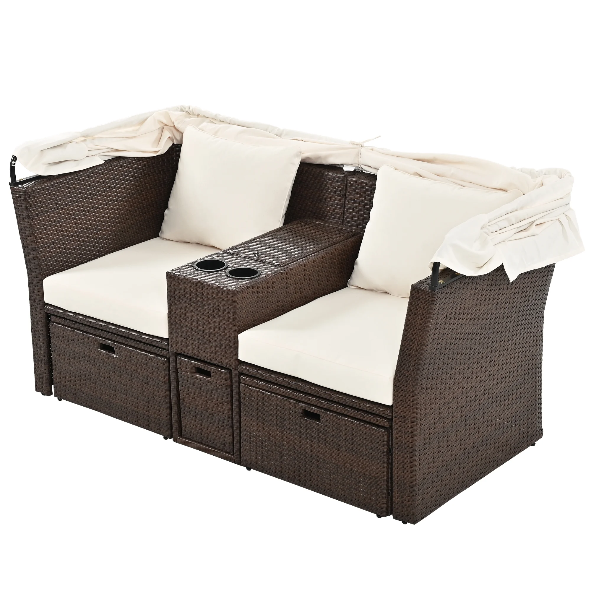 Modern Contemporary Outdoor Patio Rattan and Wicker Canopy Sofa Brown