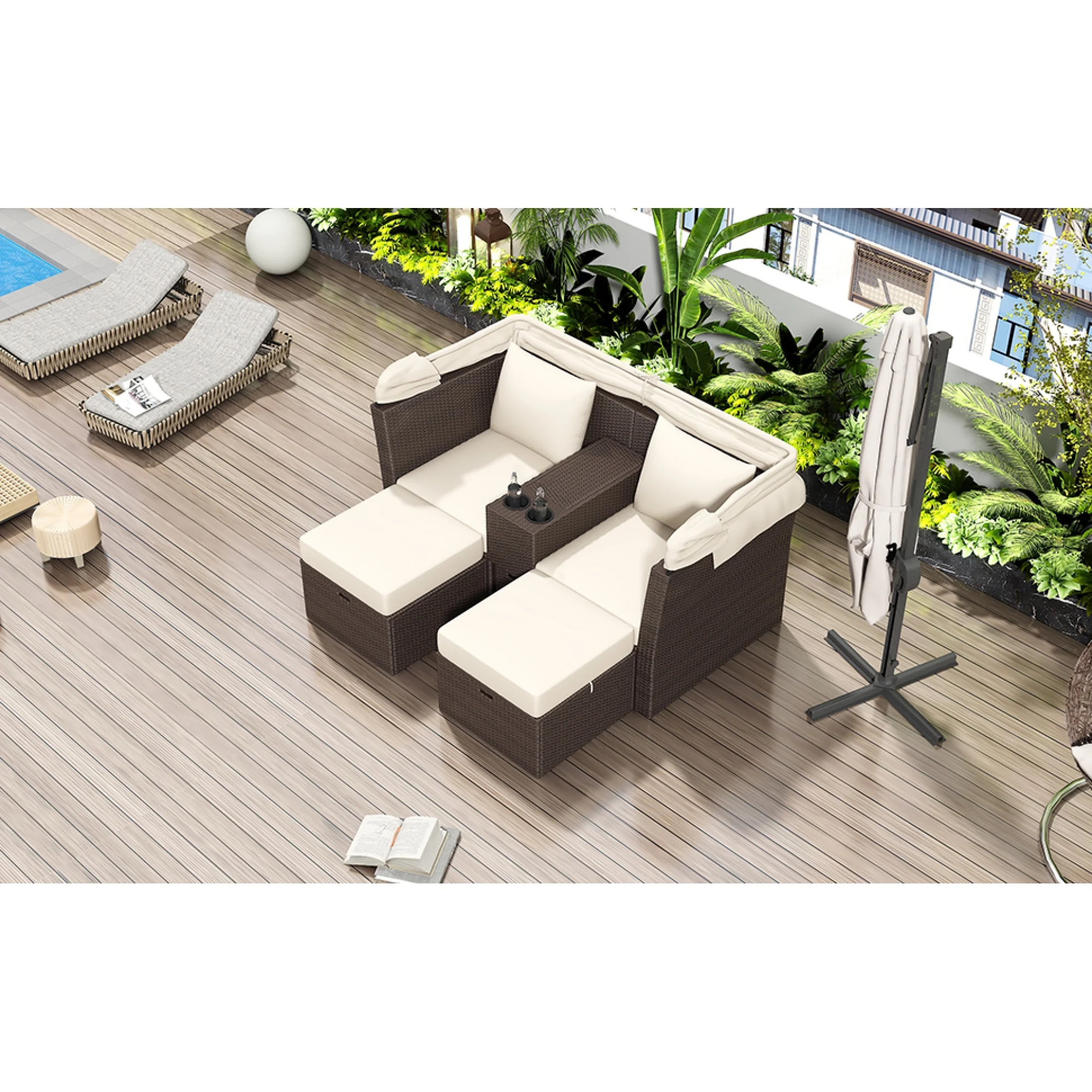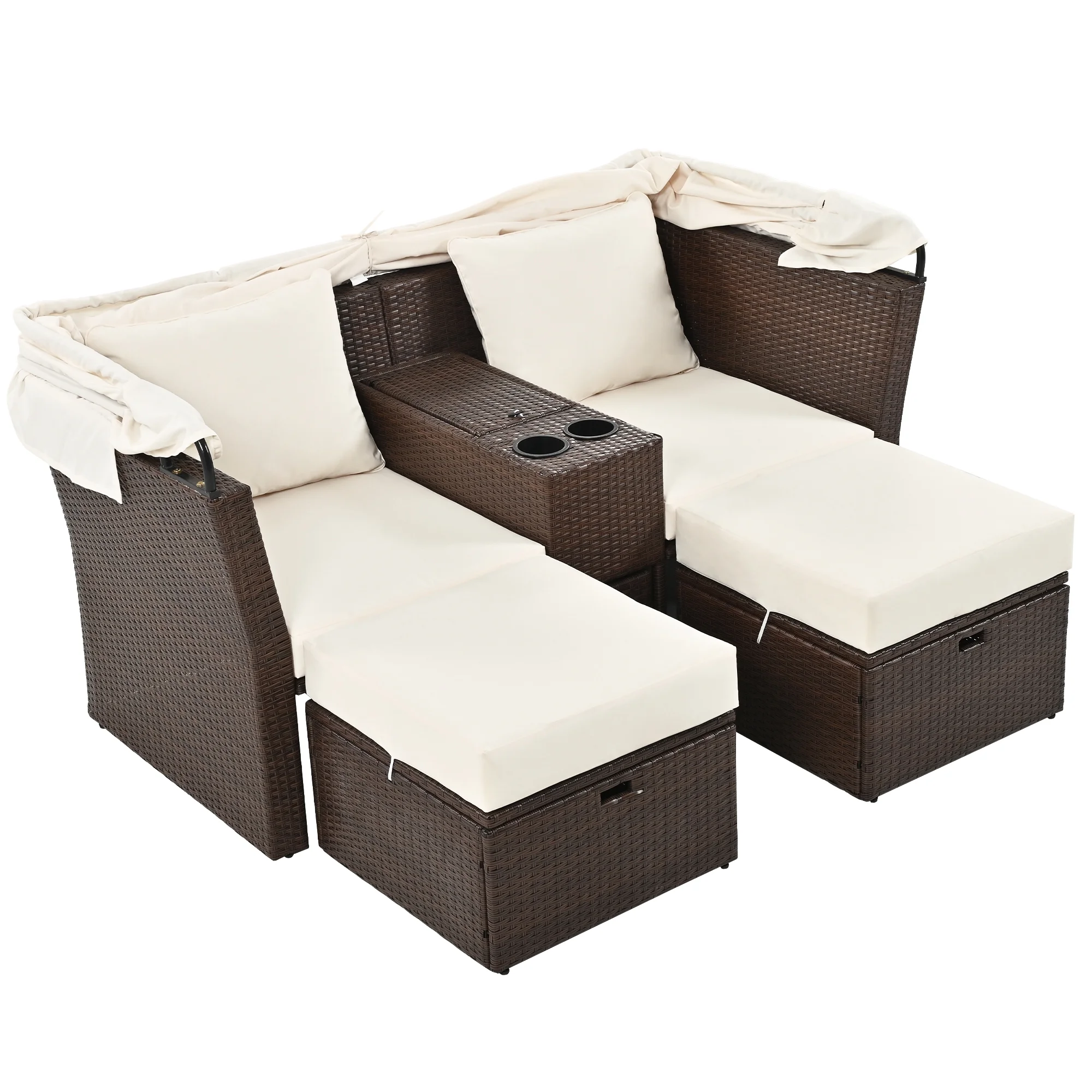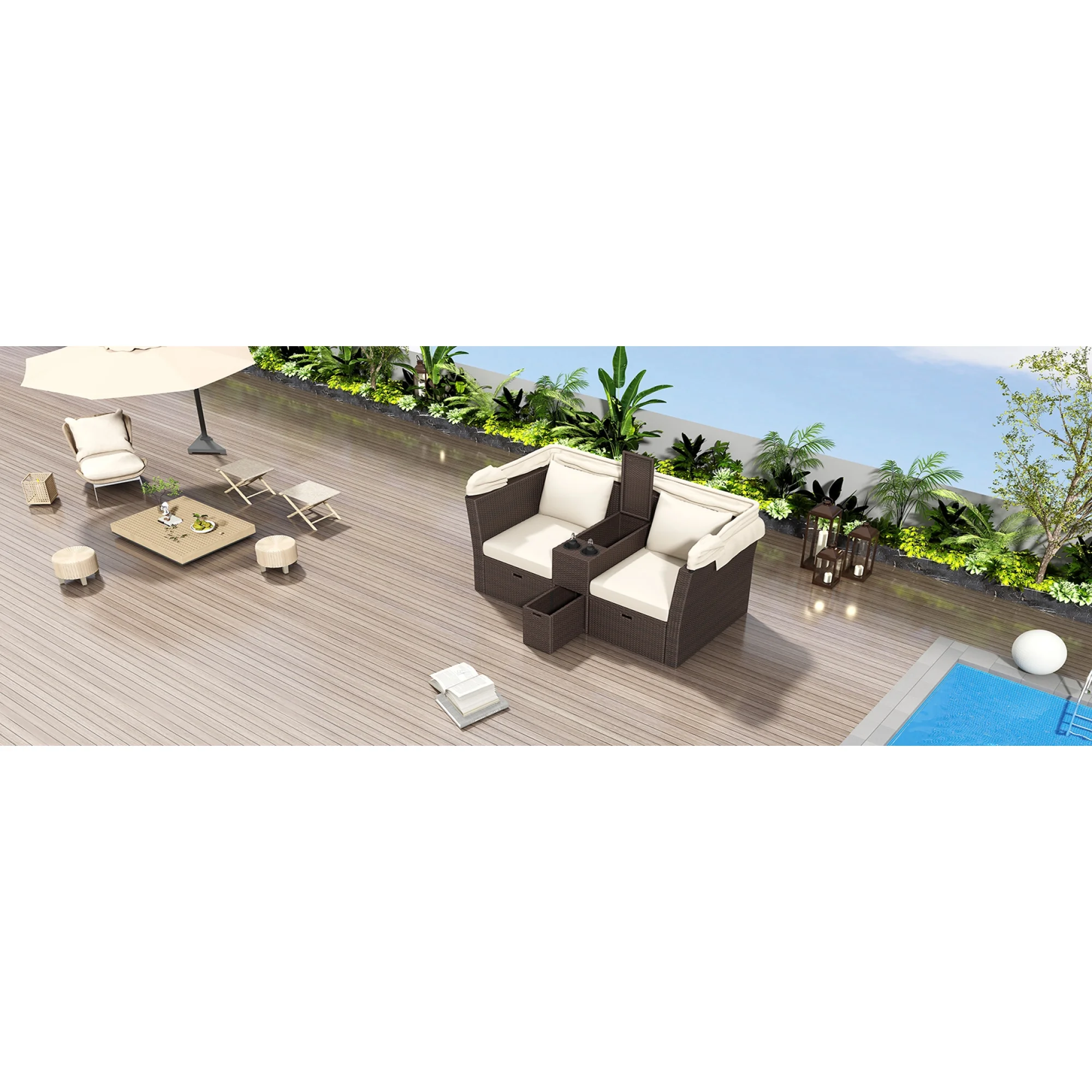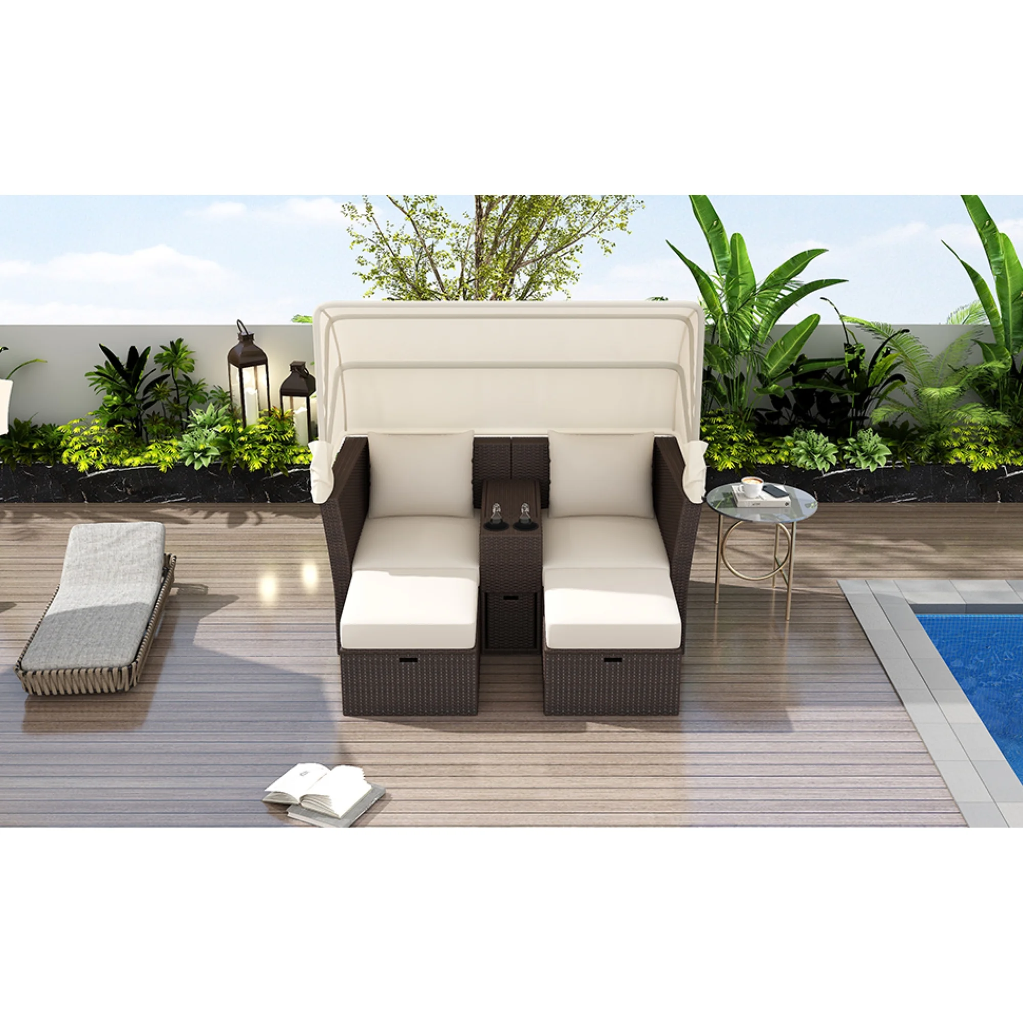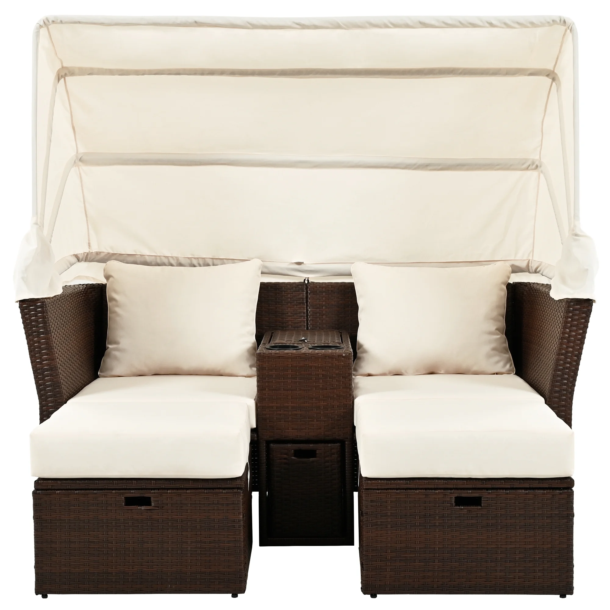 Modern Contemporary Outdoor Patio Rattan and Wicker Canopy Sofa Brown