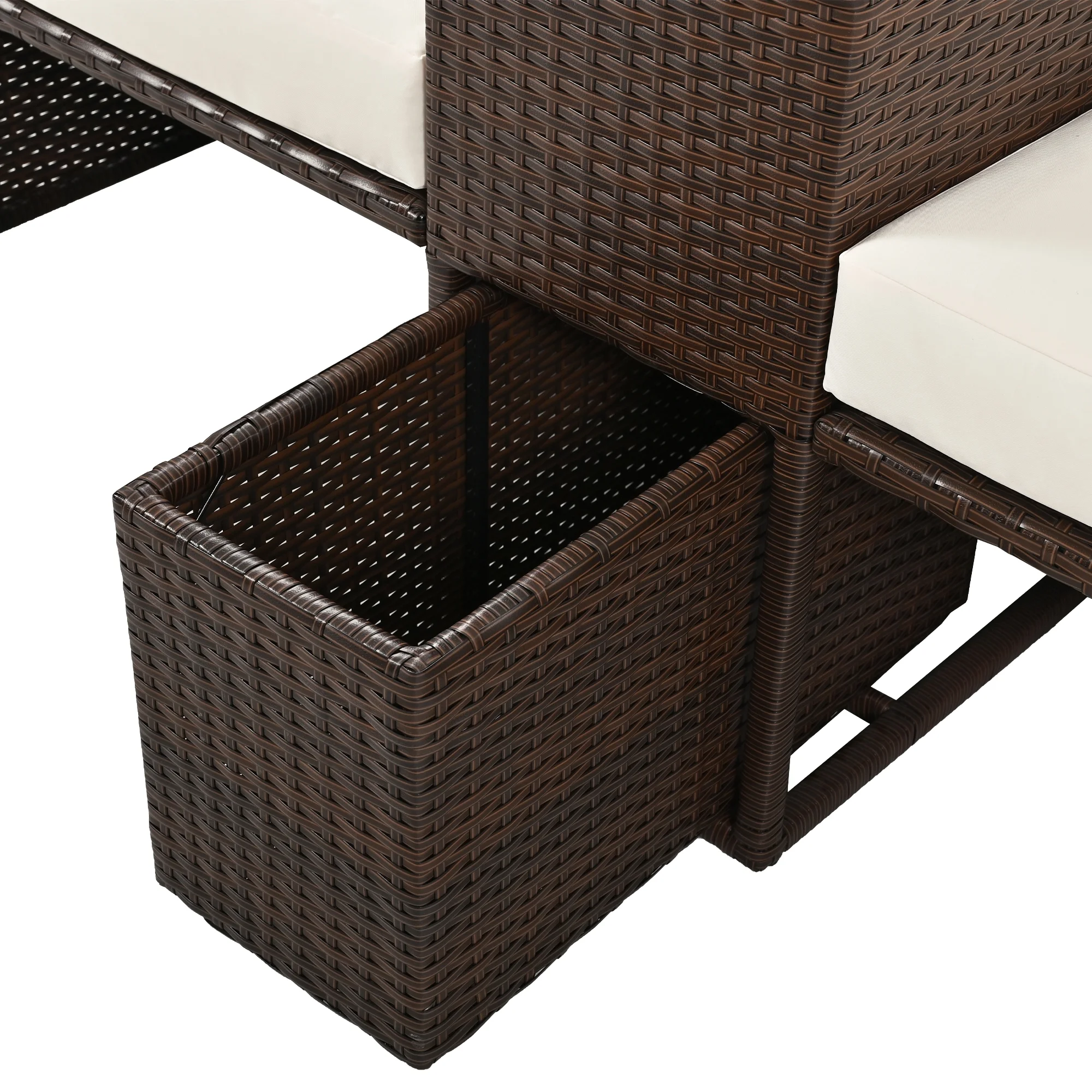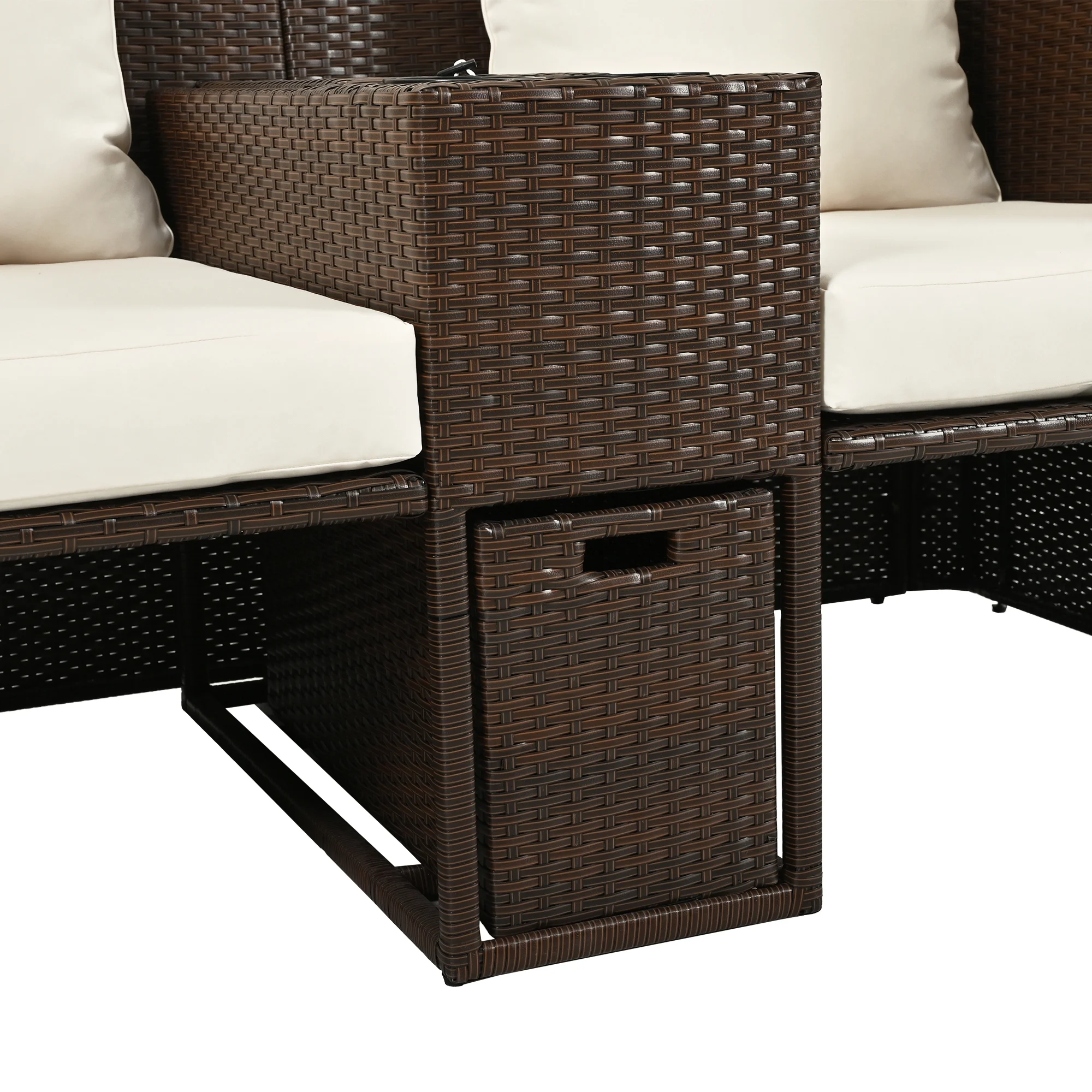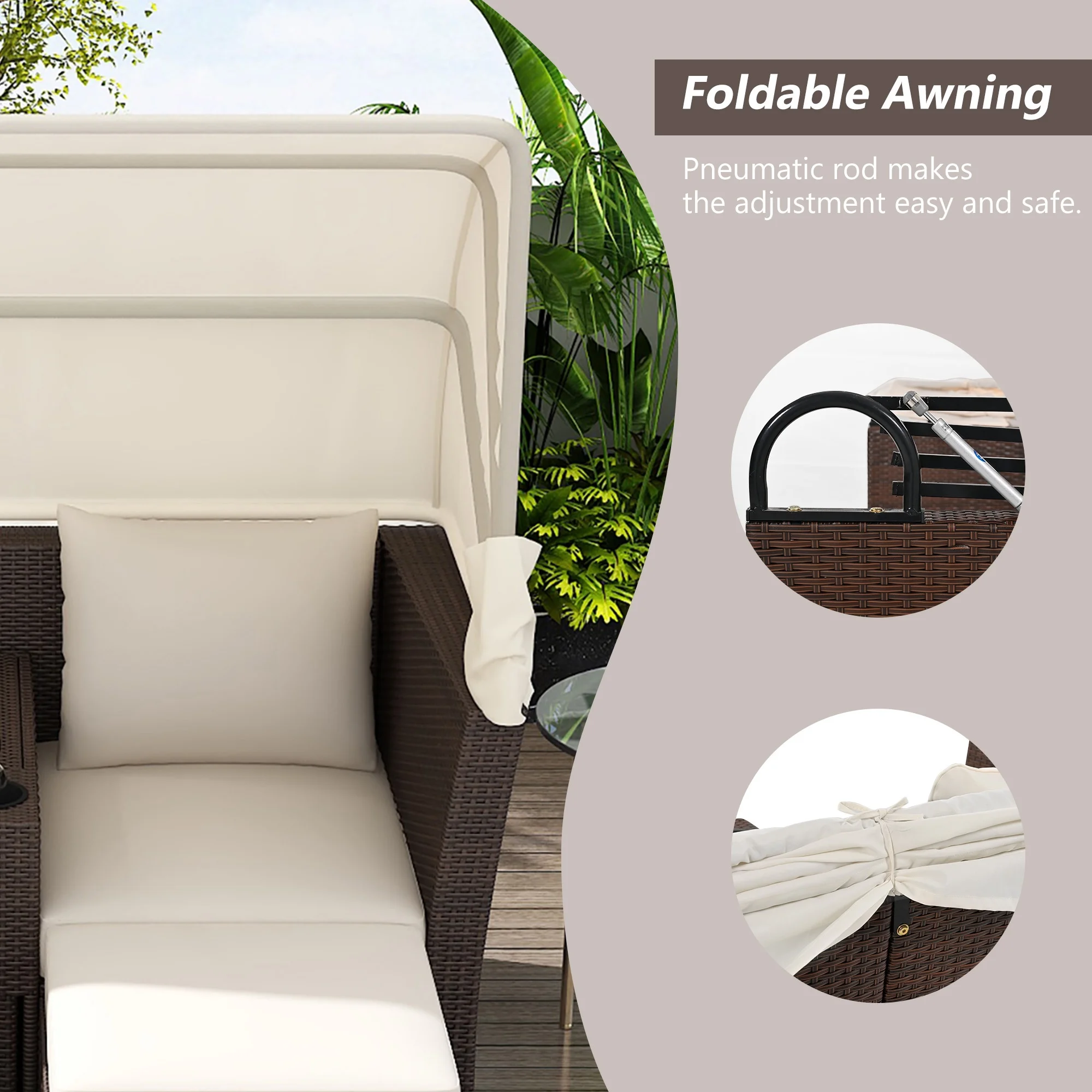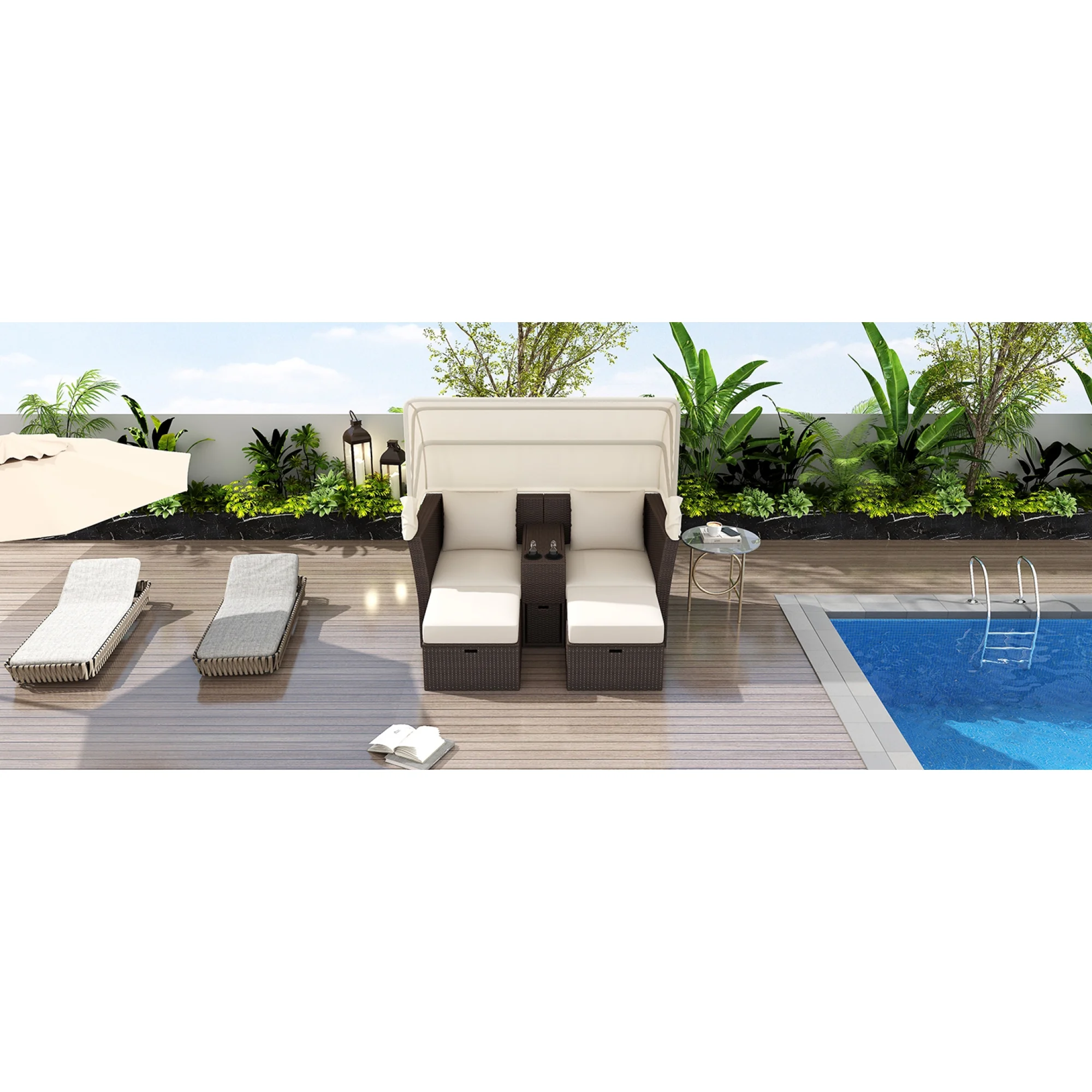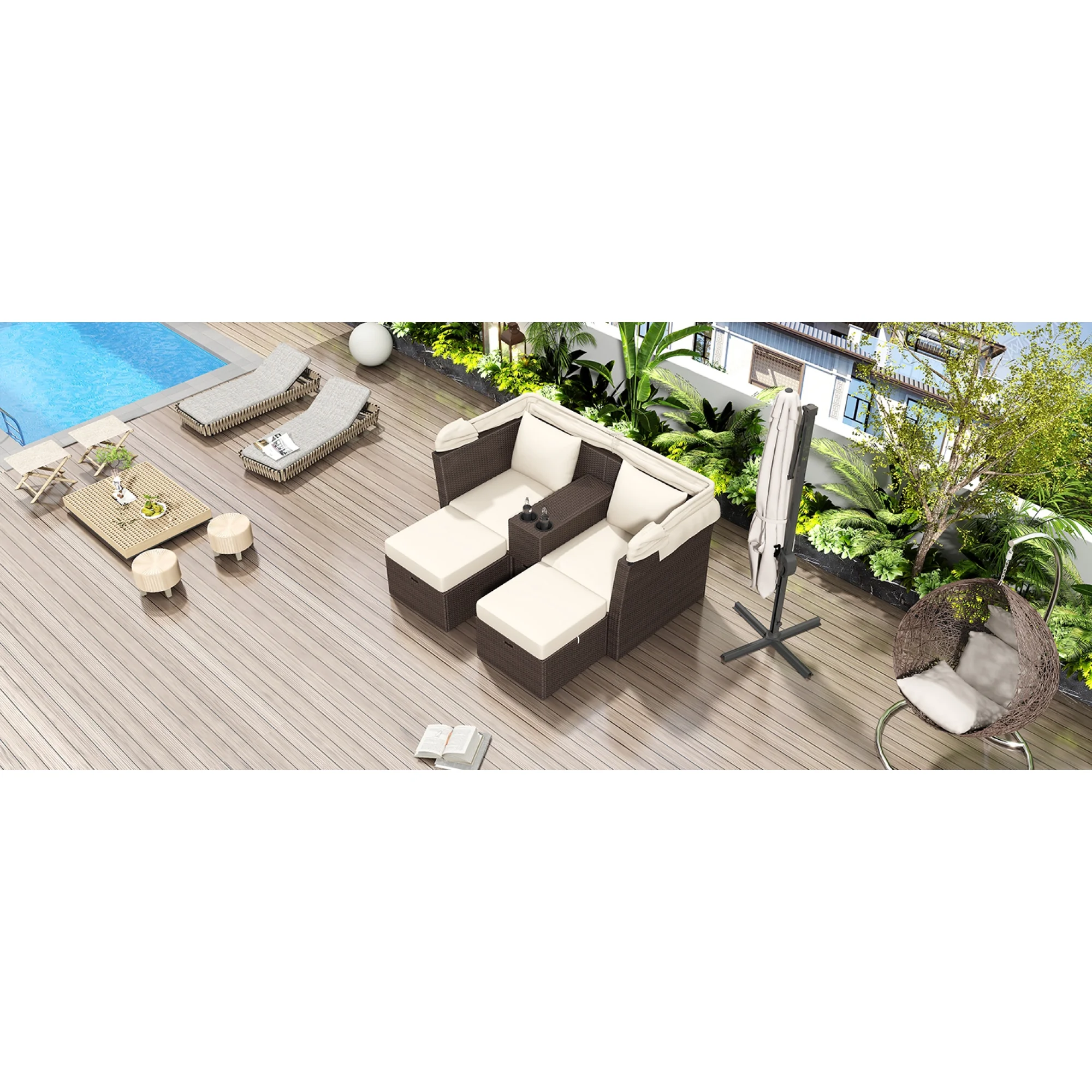 Modern Contemporary Outdoor Patio Rattan and Wicker Canopy Sofa Brown
