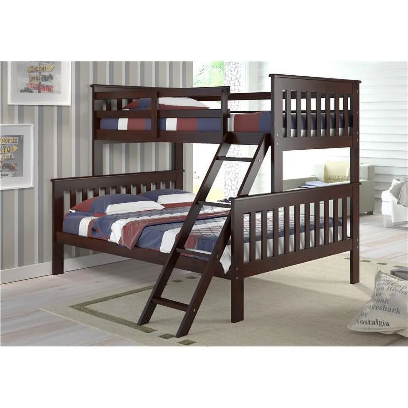 PD-122-2CP-TF Twin & Full Size Mission Bunk Bed with Tilt Ladder - Dark Cappuccino
