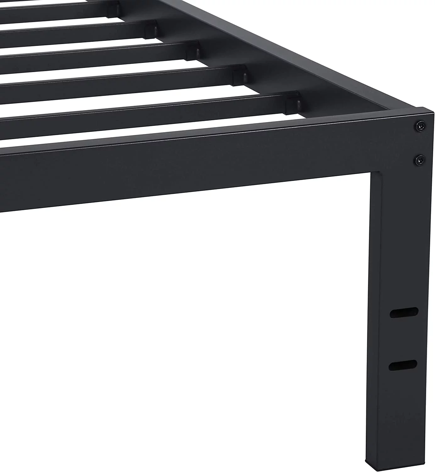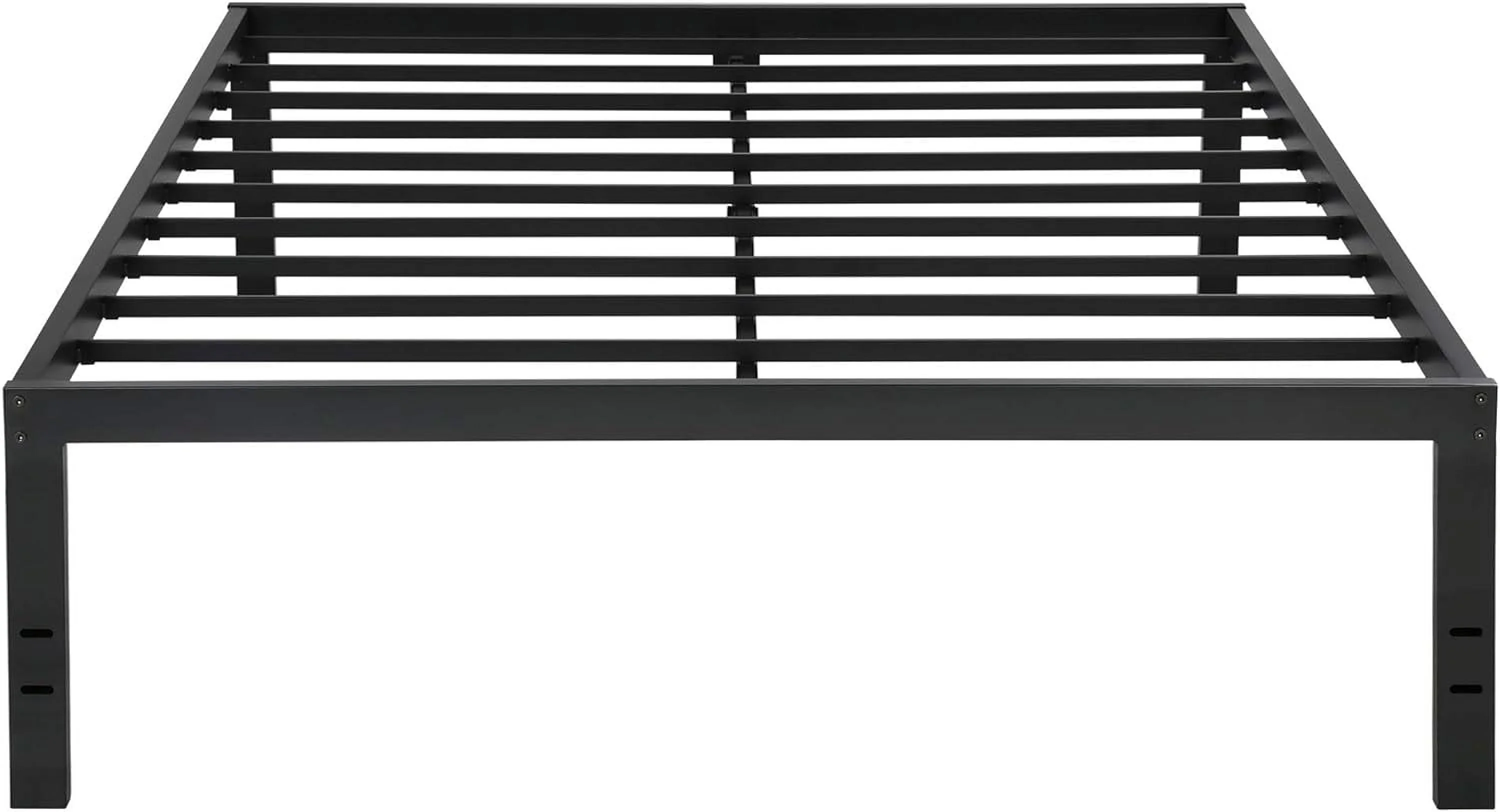 QCAI 18 Inch Tall Metal Bed Frame/Dura Steel Slat/Anti-Slip Support/No Box Spring Needed, Queen, Black