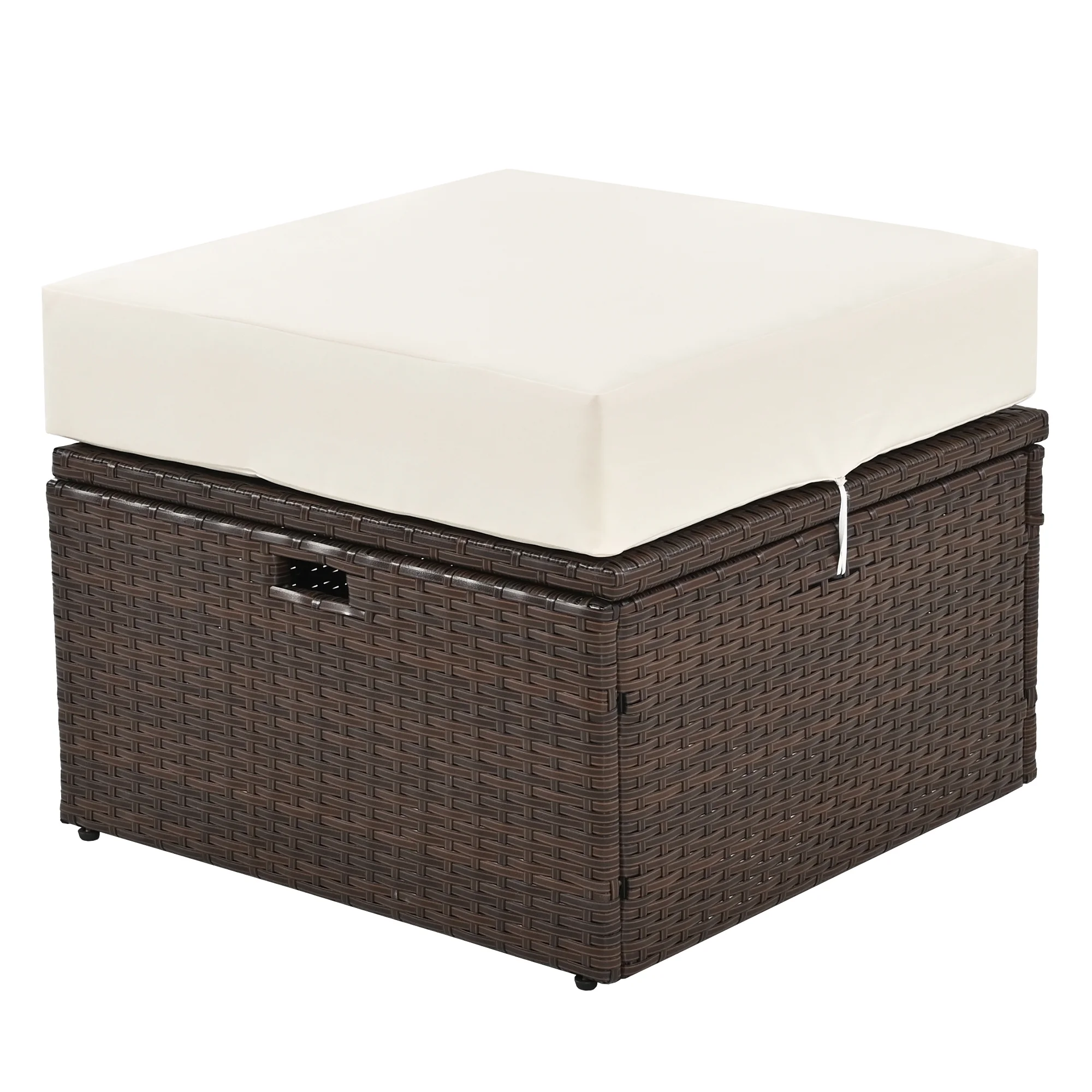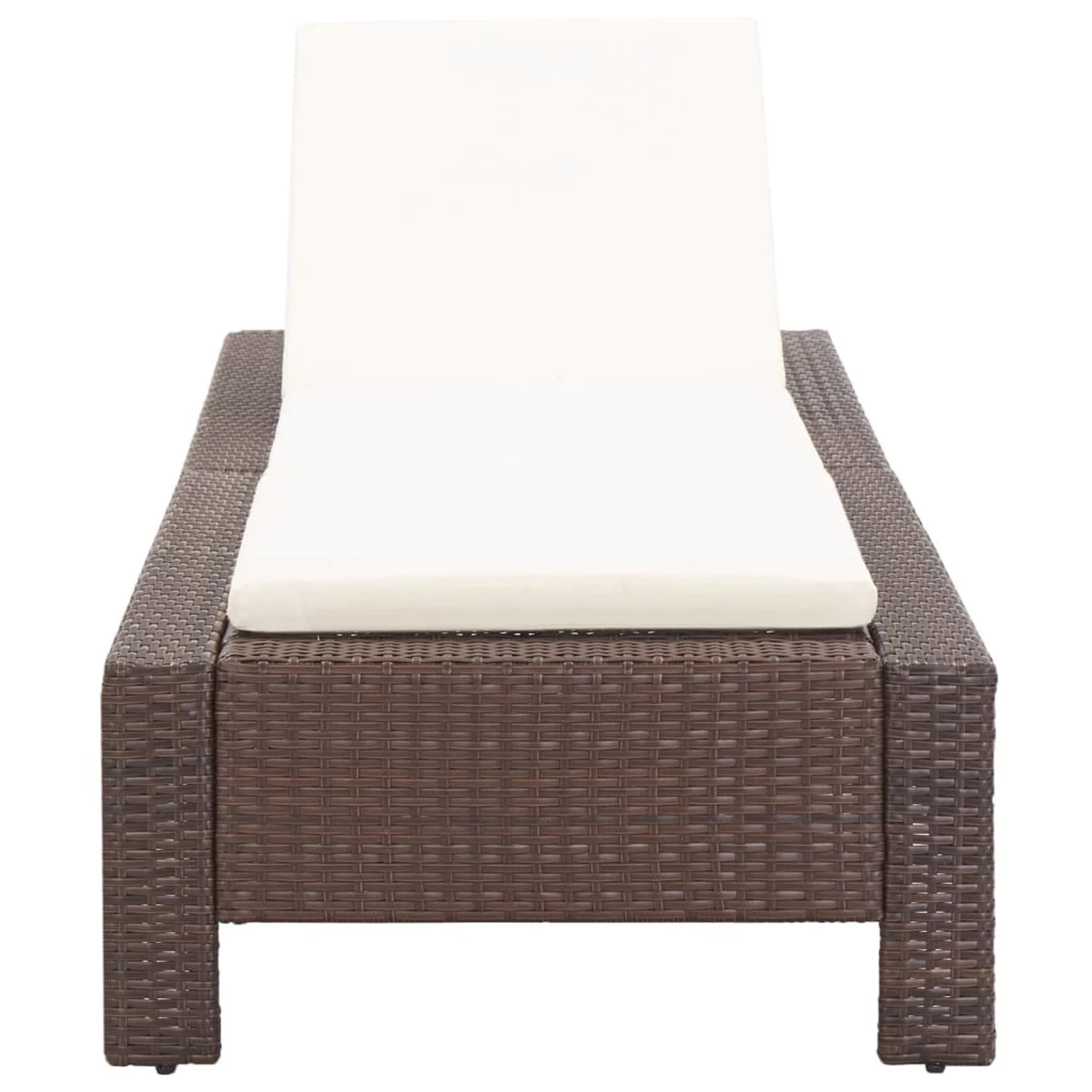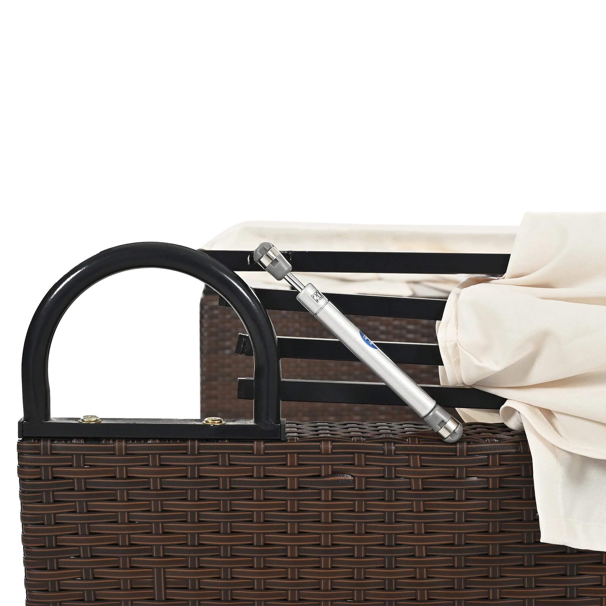 Anself 2-Person Outdoor Sunlounger Daybed with Curtains Poly Rattan Brown