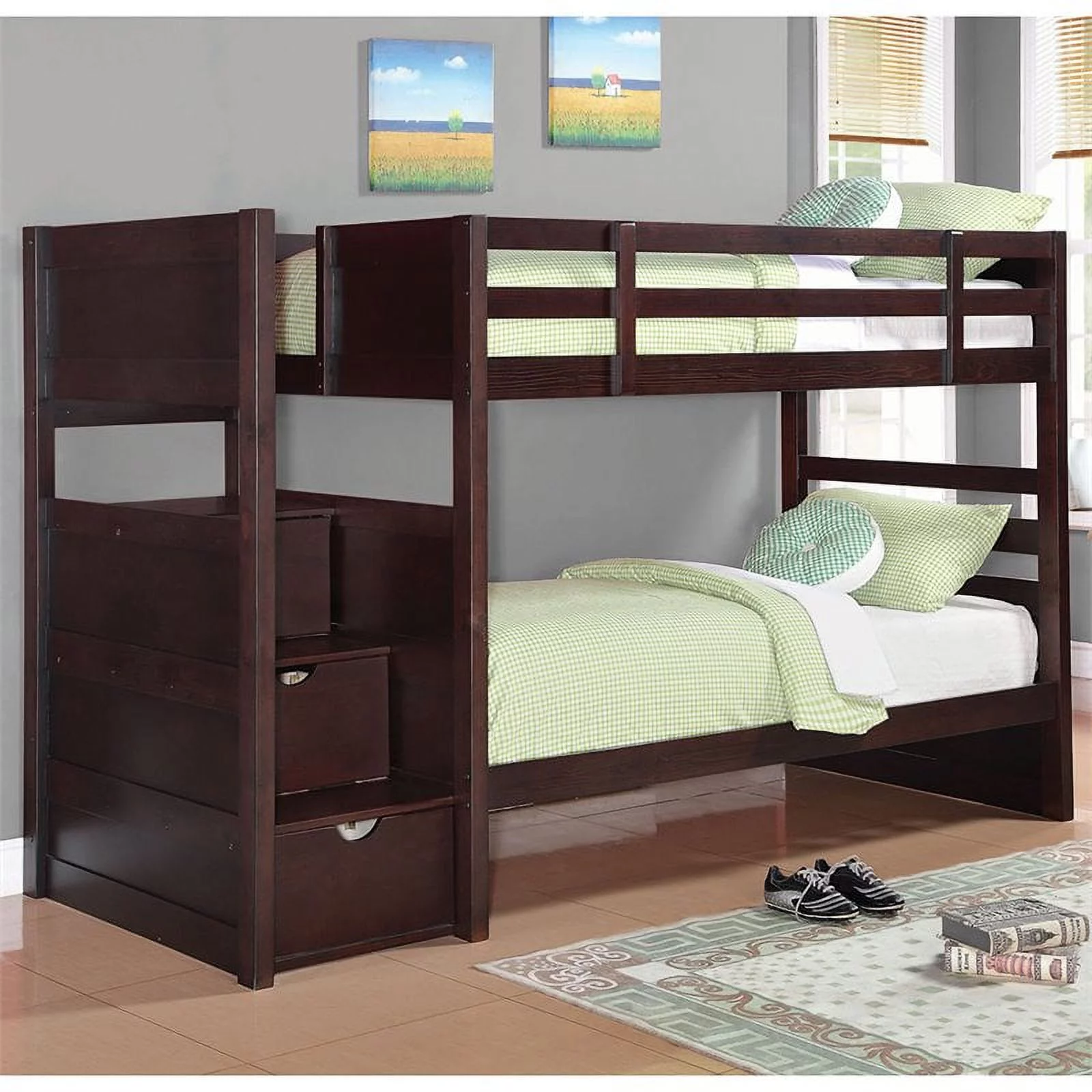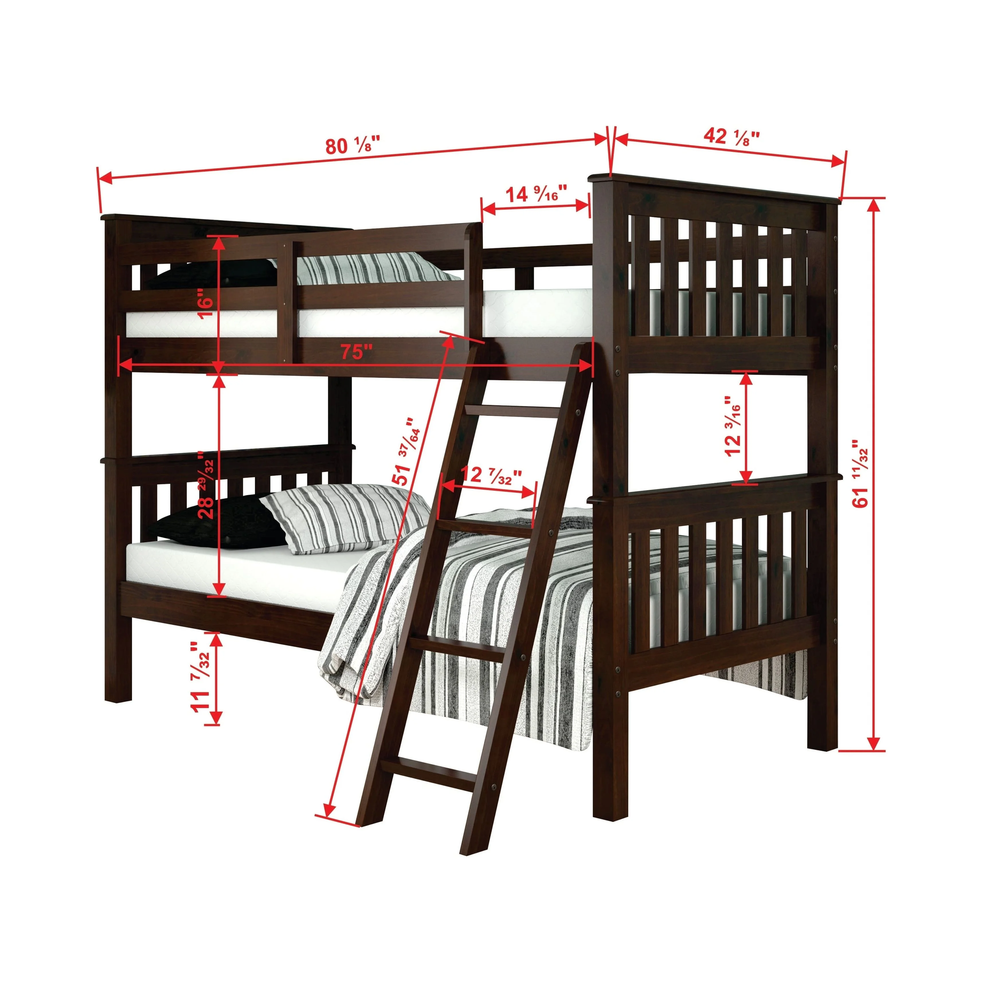 Pivot Direct PD-120-1CP-TT Twin Size Mission Bunk Bed with Tilt Ladder - Dark Cappuccino