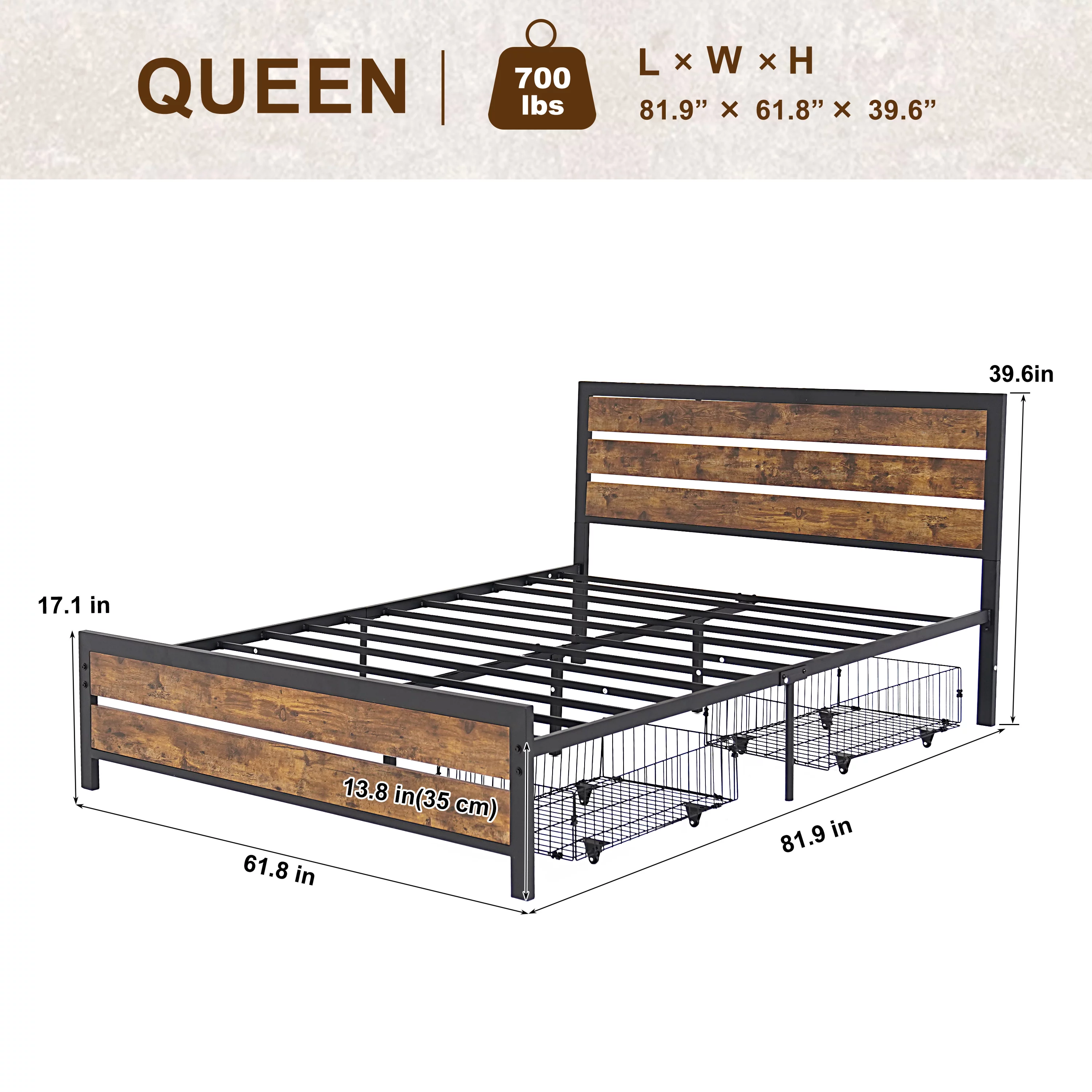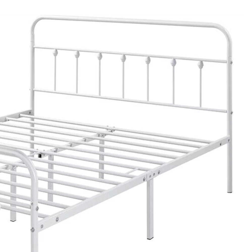 Queen Size Metal Bed Frame Classic Iron W/ Headboard Footboard, White