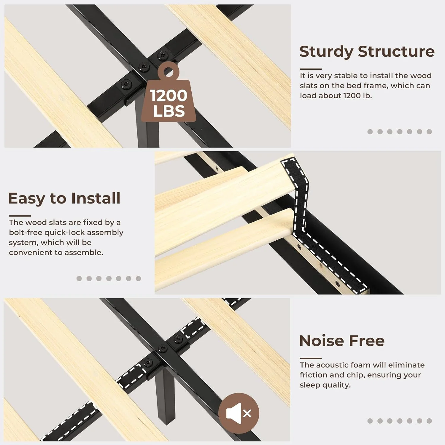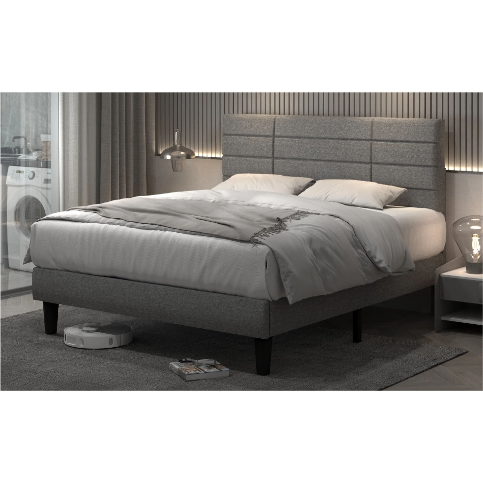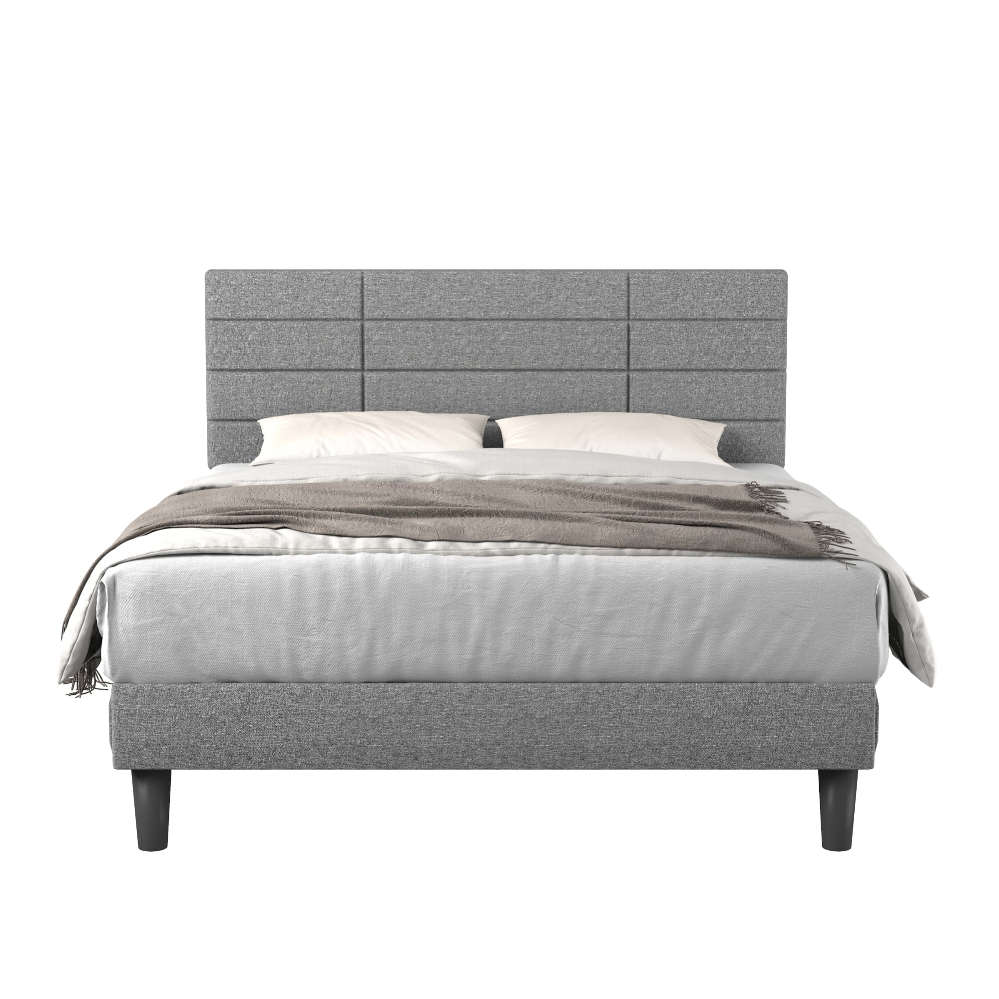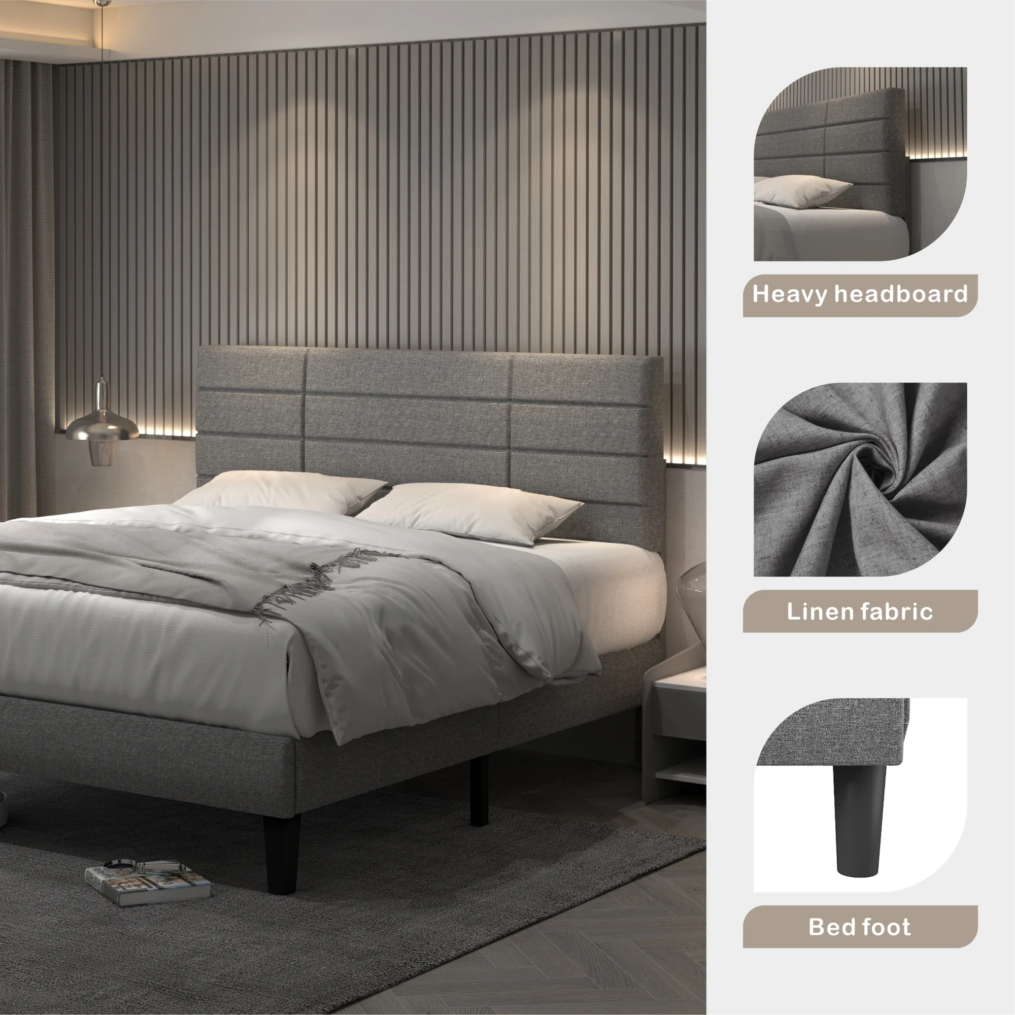 Light Grey King Size Bed Frame with Upholstered Headboard, Strong Wooden Slats, Non-Slip, Noise-Free, No Box Spring Needed