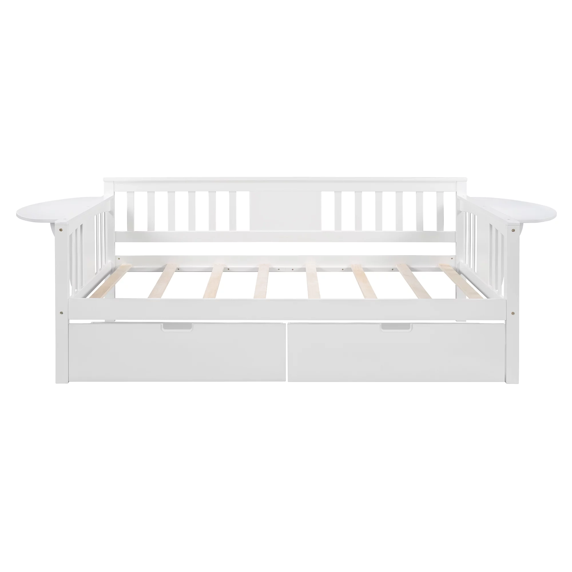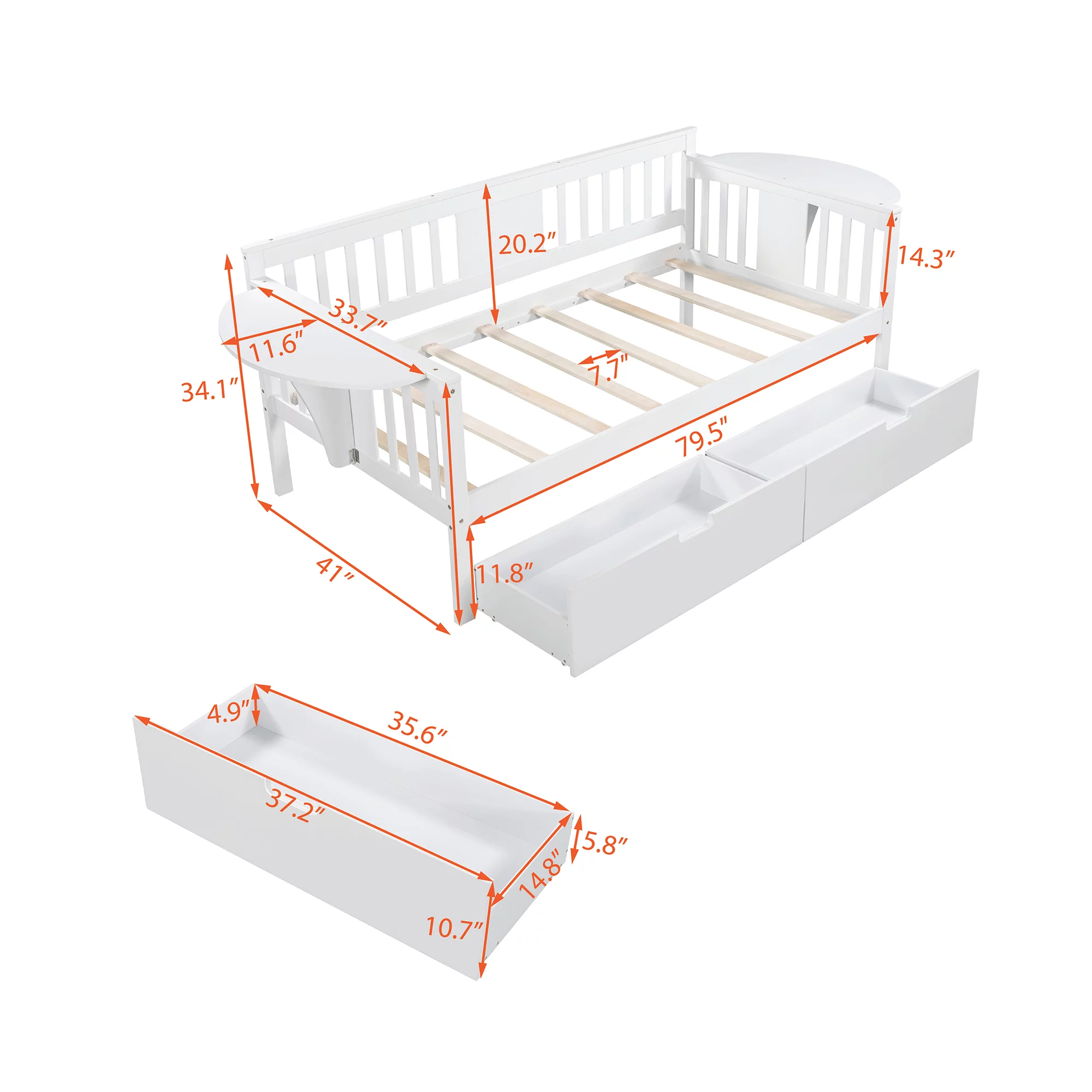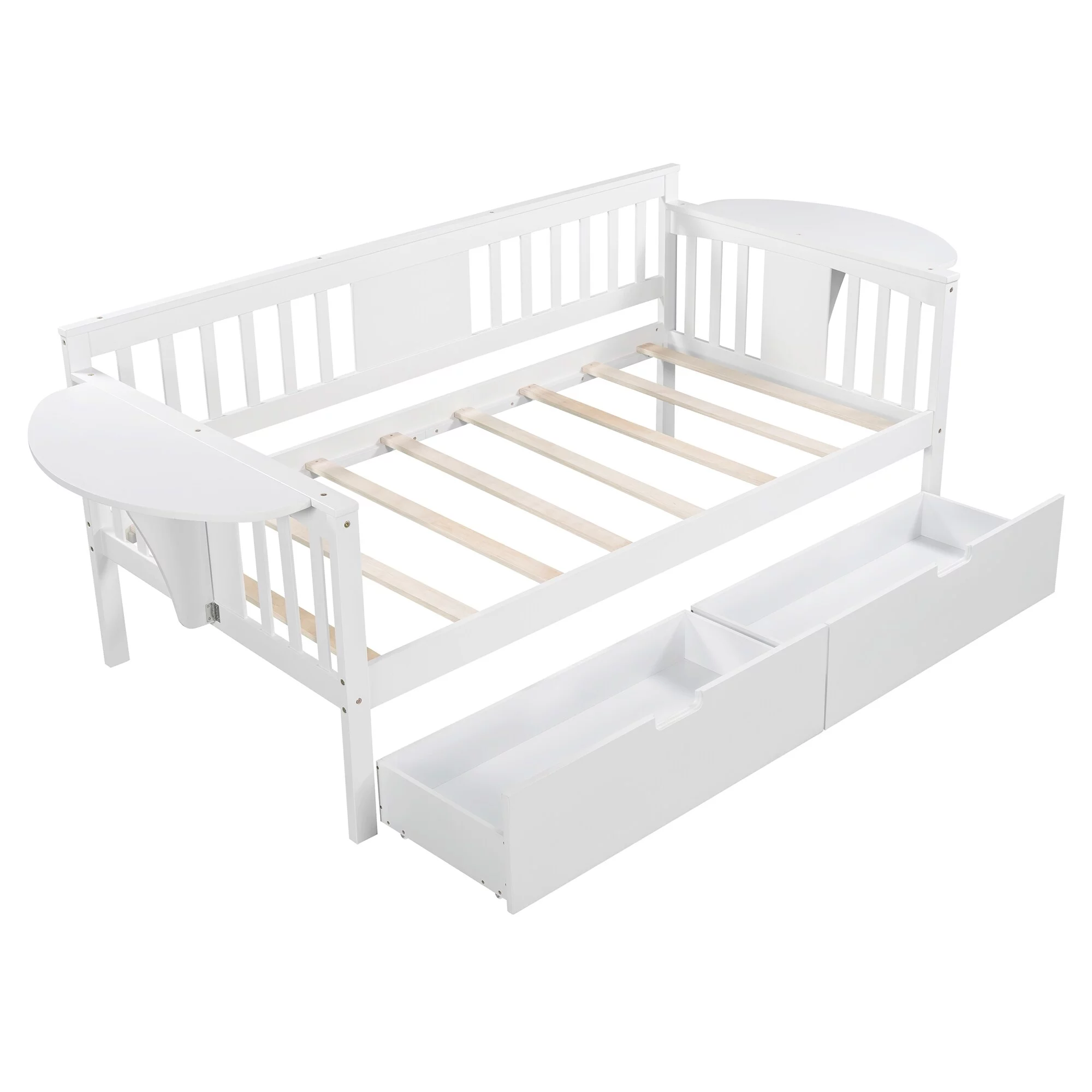 CoSoTower Twin Size Daybed with Desk, Green Leaf Shape Drawers and Shelves, White
