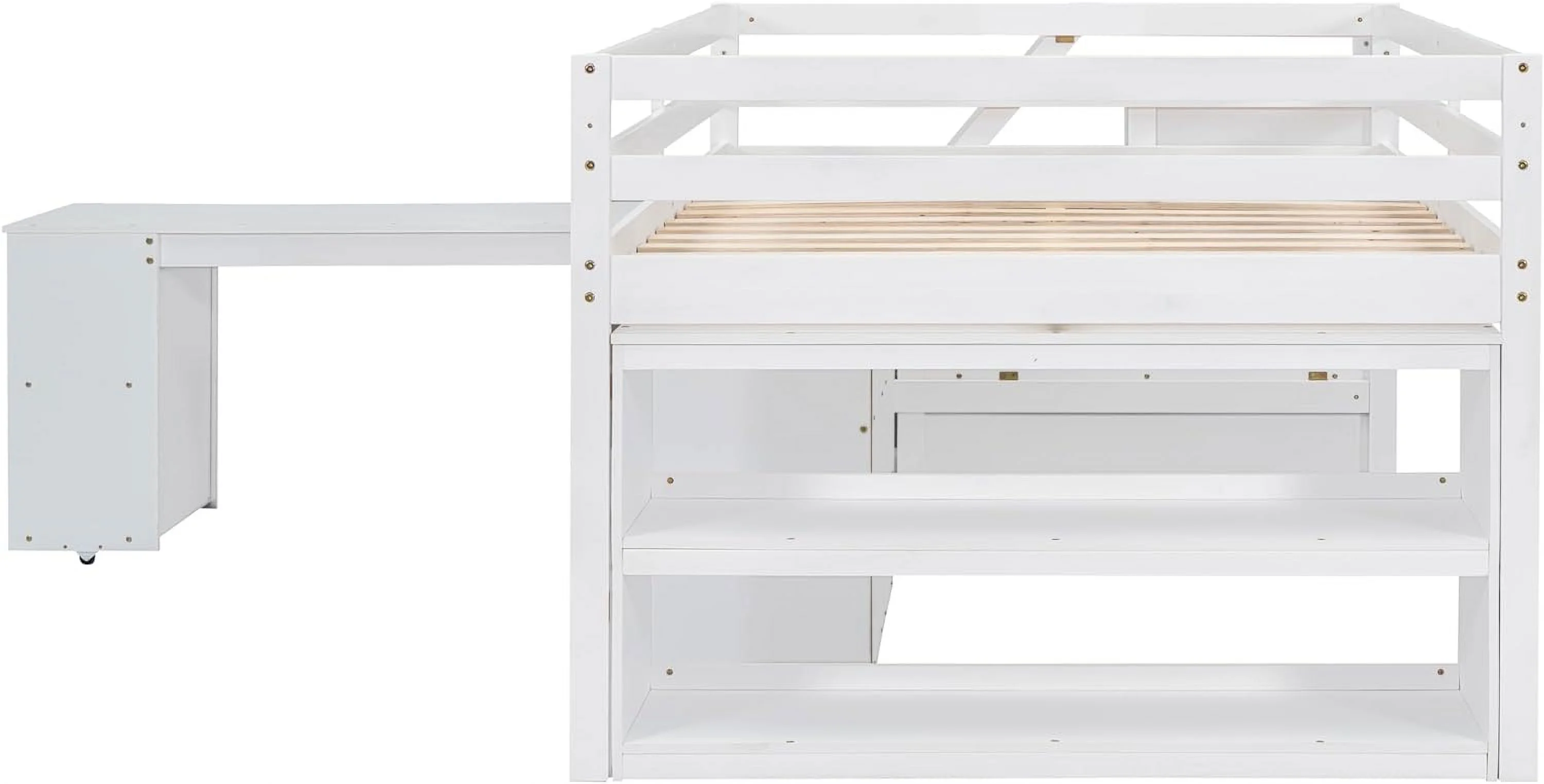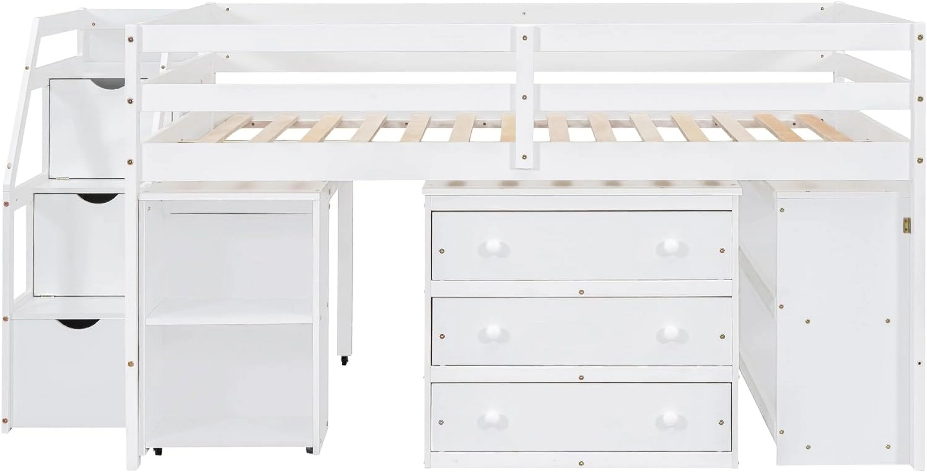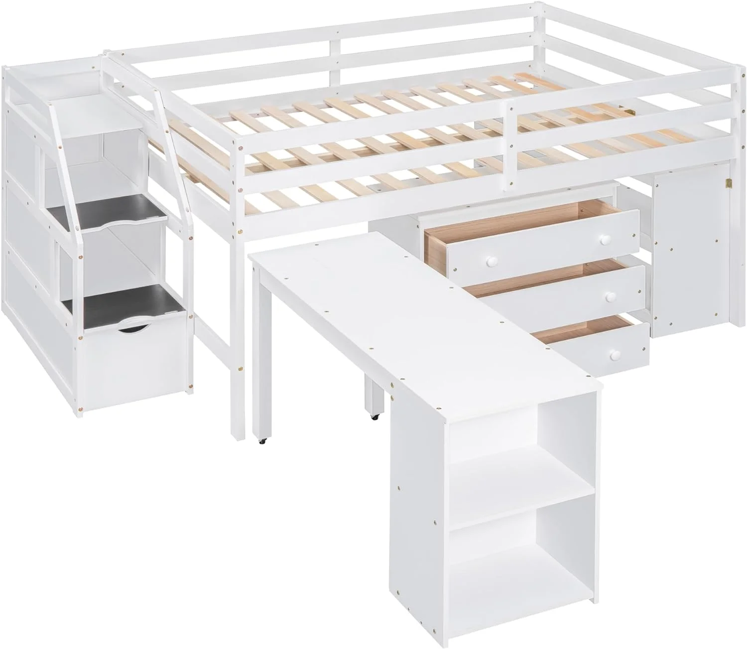 CoSoTower Twin Size Daybed with Desk, Green Leaf Shape Drawers and Shelves, White