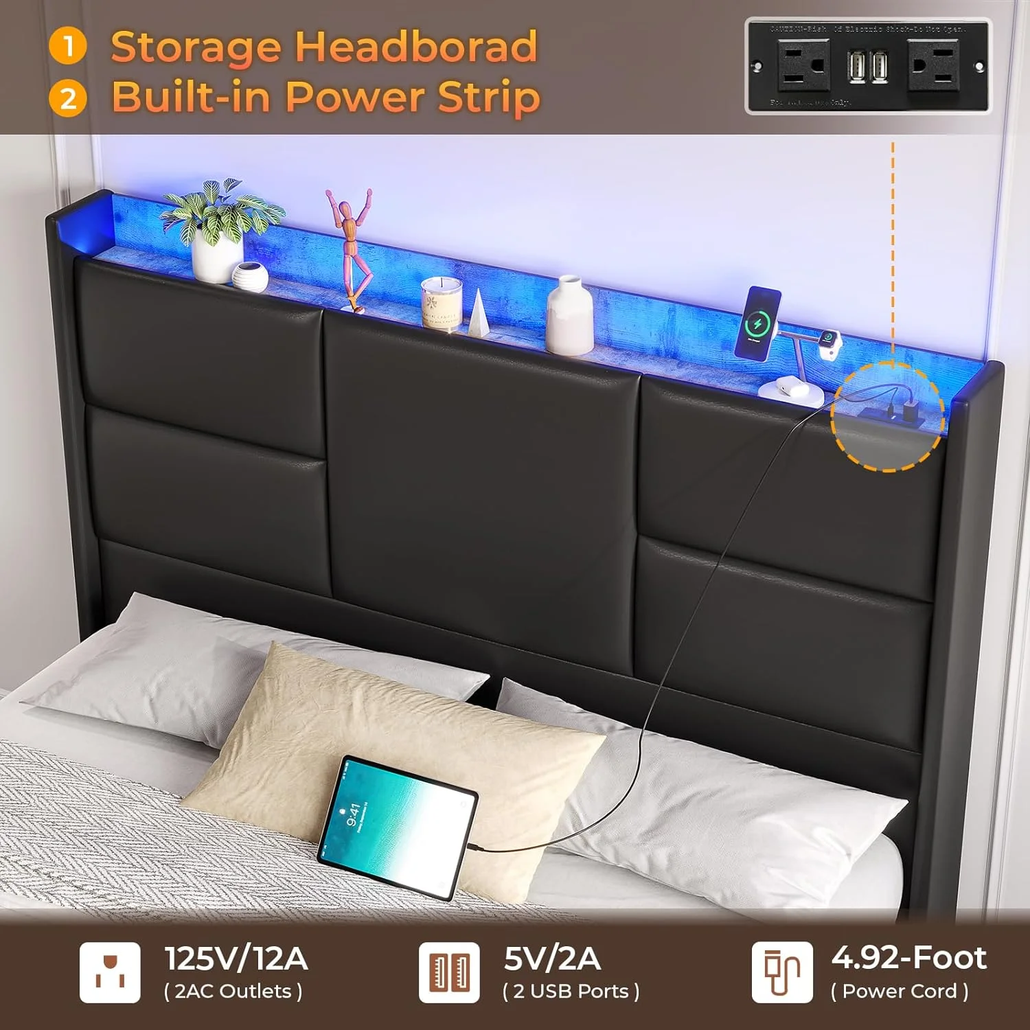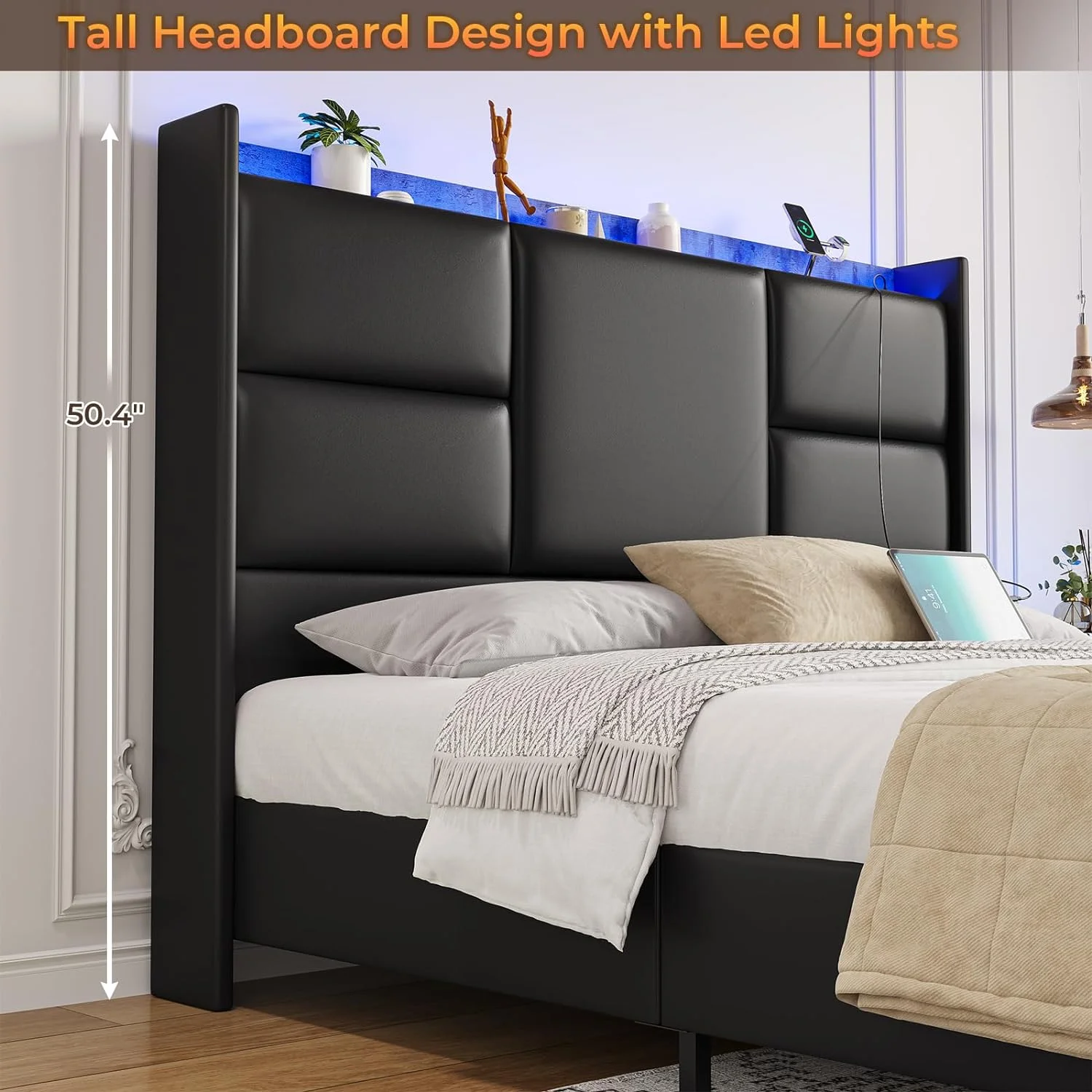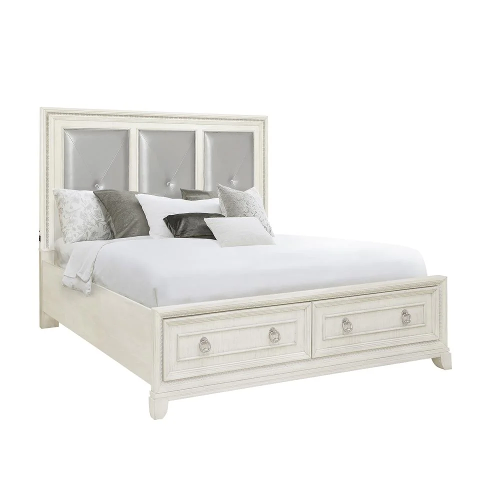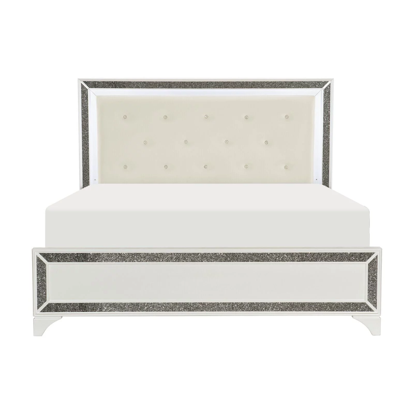 Beautiful Pearl White Metallic Finish Est-King Size Bed 1pc Button-Tufted Faux Leather Upholstered LED Lighting Headboard