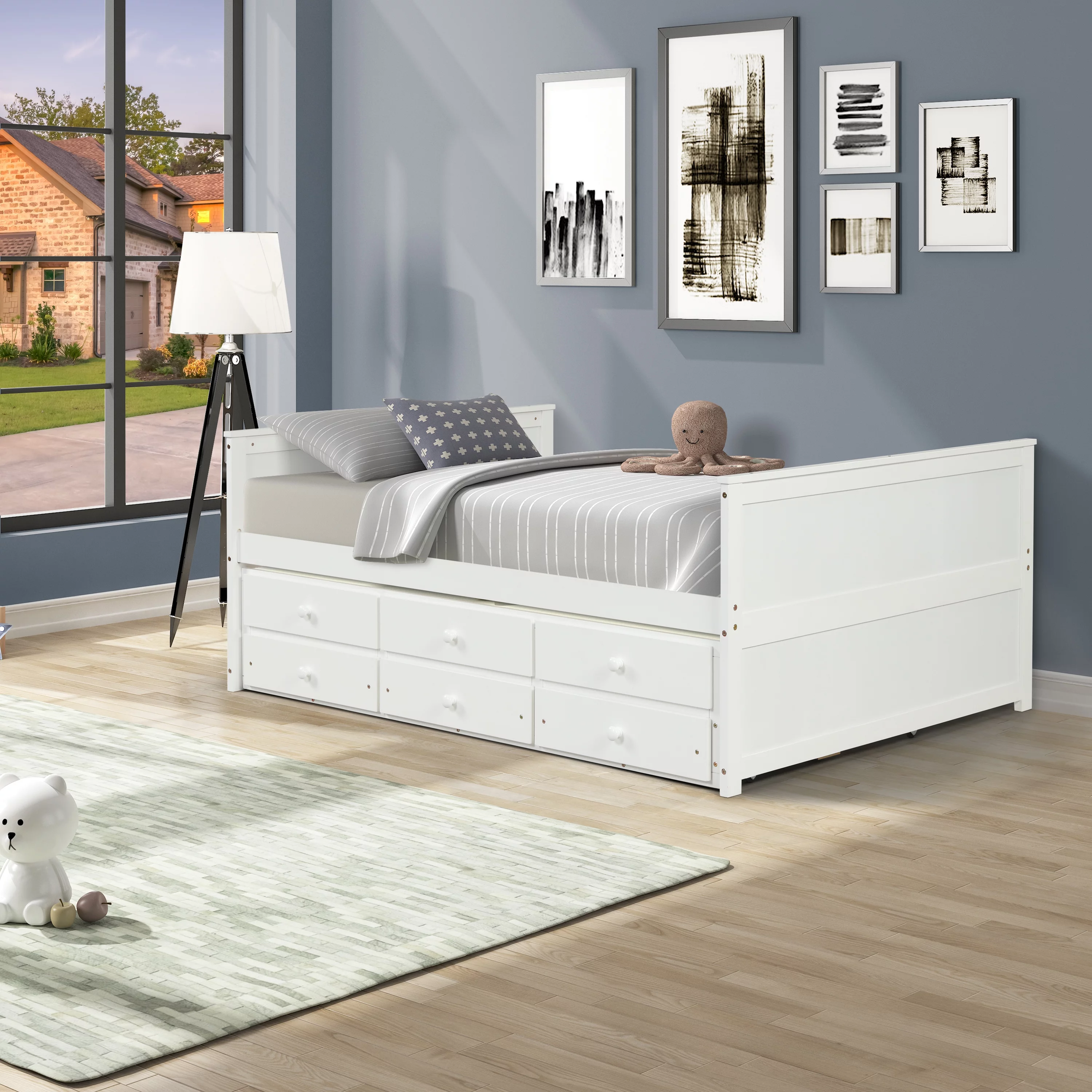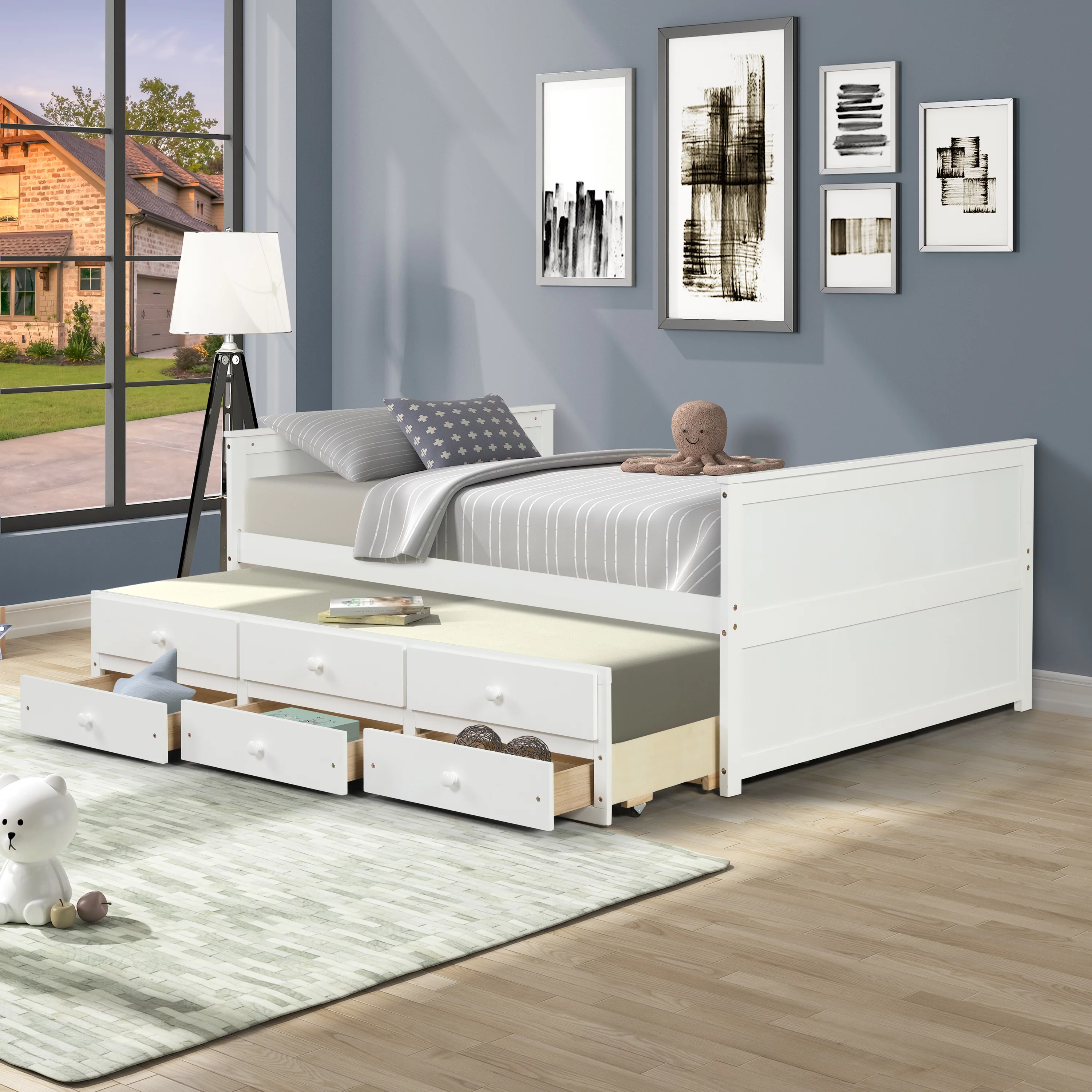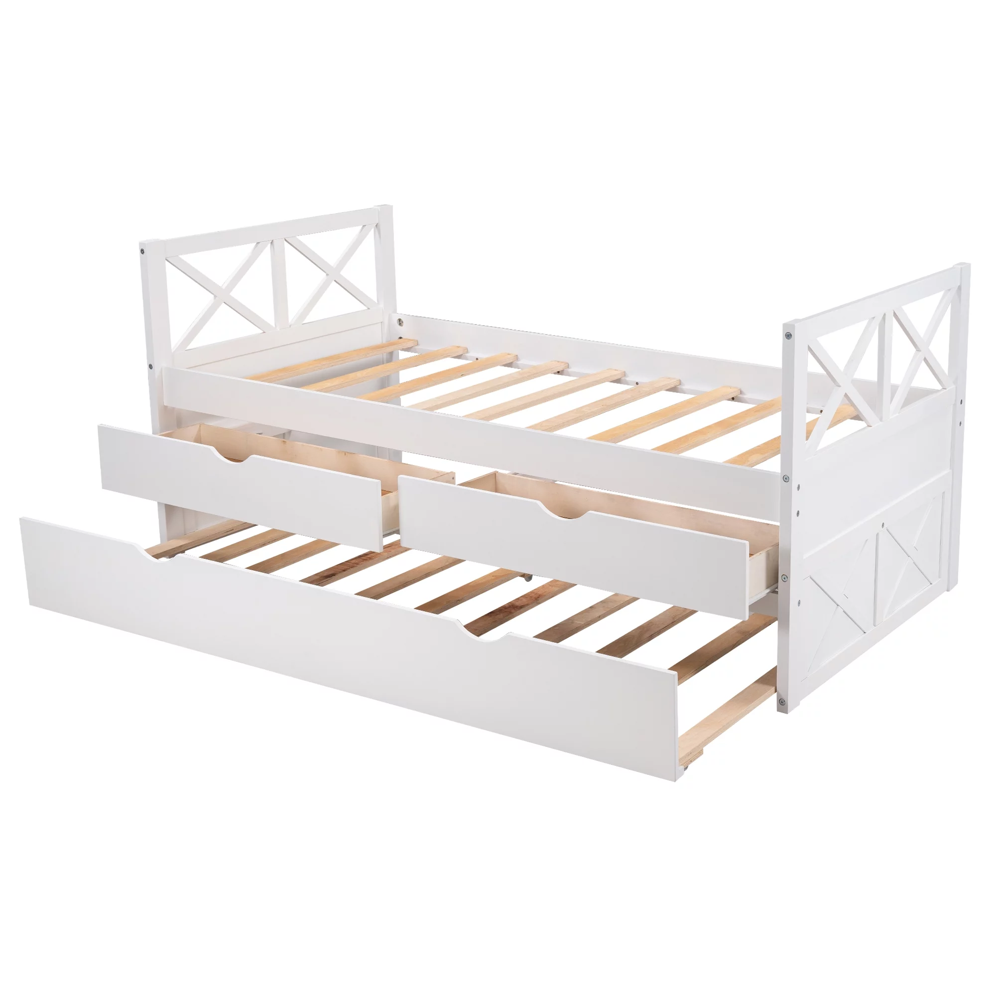 Twin Daybed with Trundle Bed and Storage Drawers - Captain’s Bed Style, White