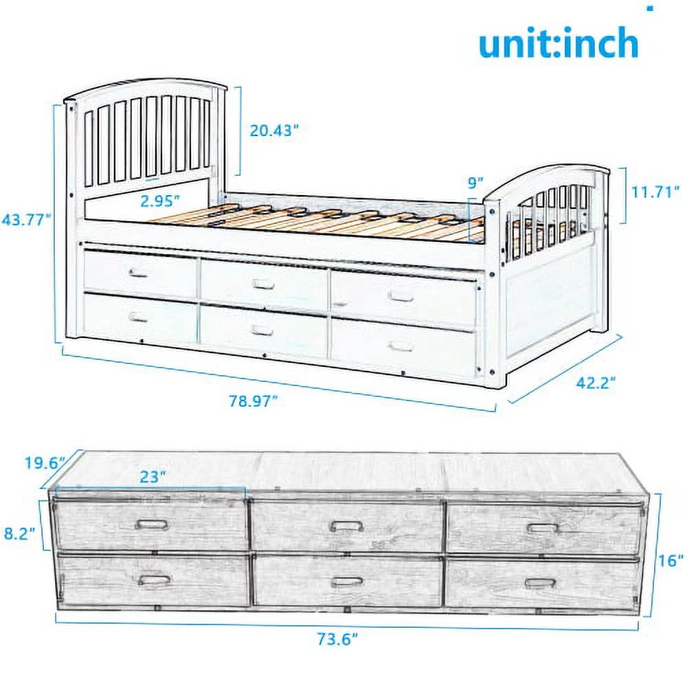 Twin Size Platform Storage Bed Solid Wood Bed with 6 Drawers Comfort Bed for Bedroom (Espresso)