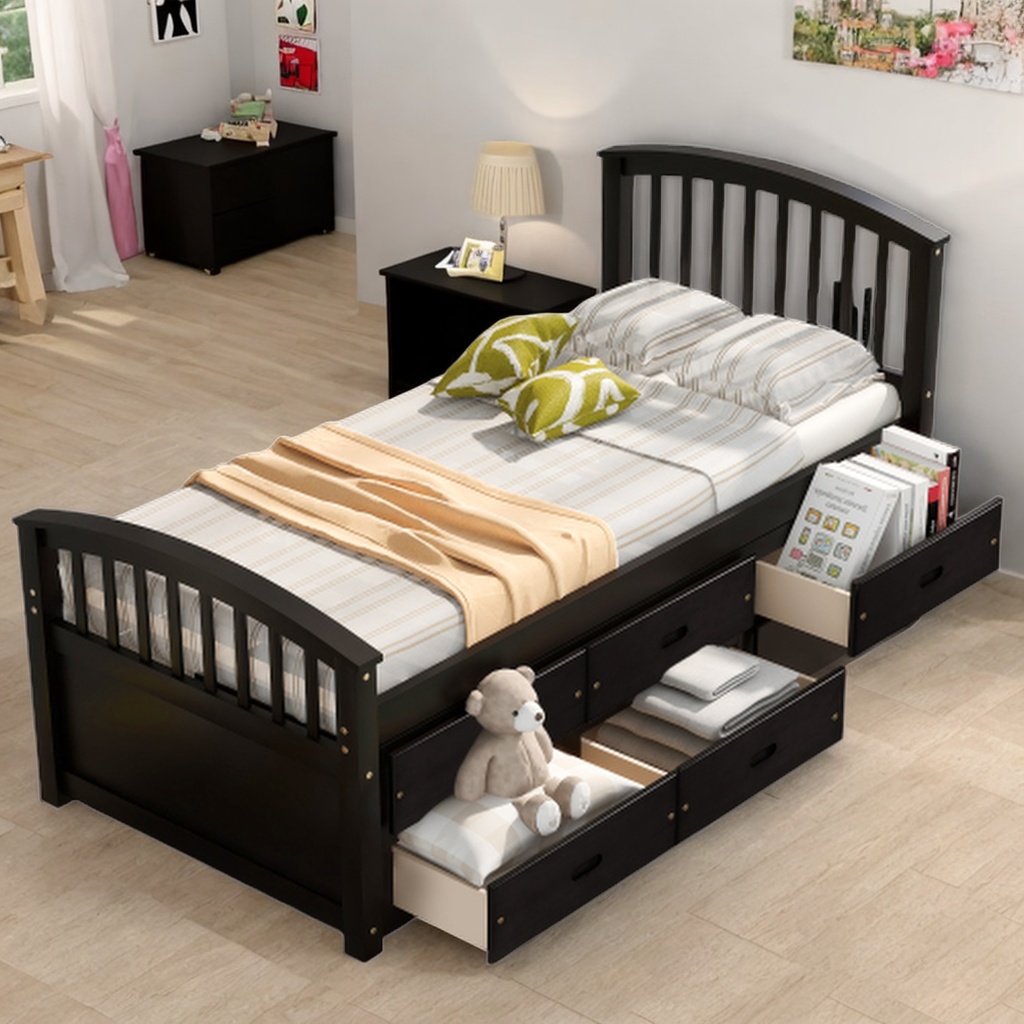 Twin Size Platform Storage Bed Solid Wood Bed with 6 Drawers Espresso Espresso
