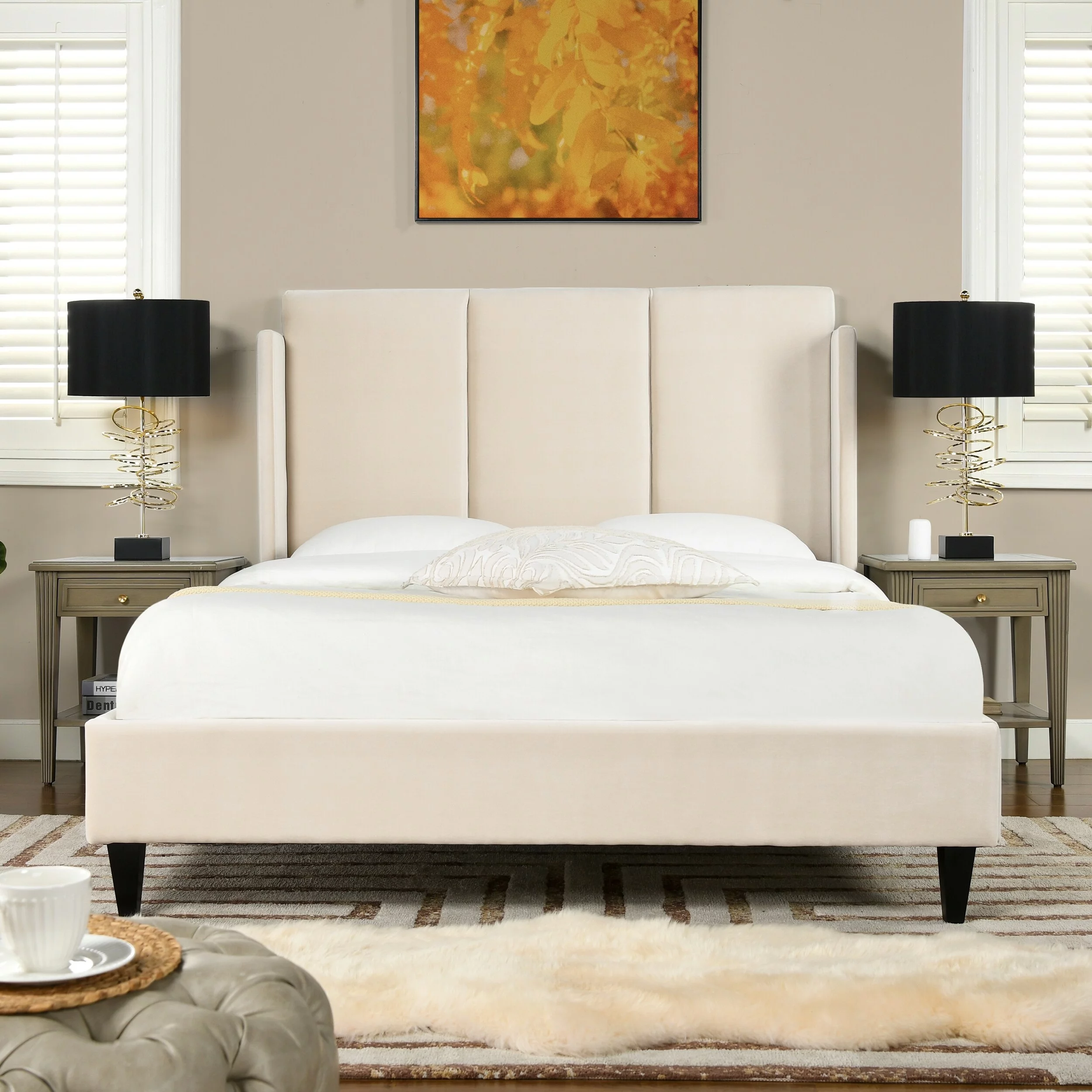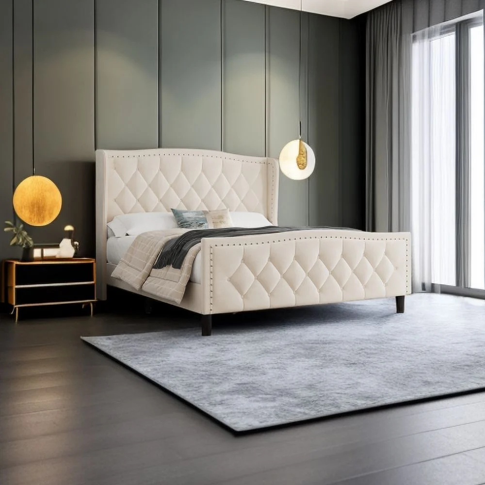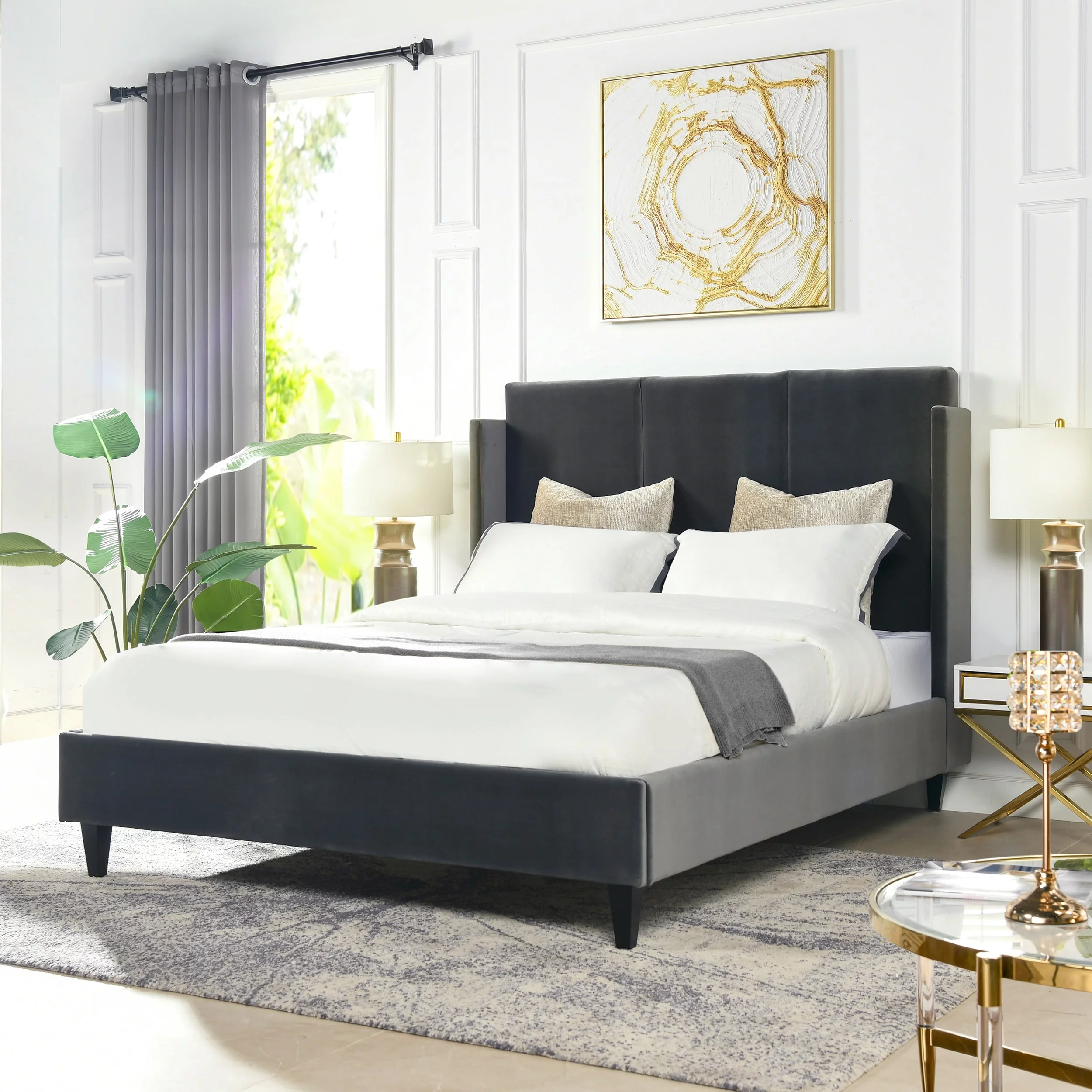 Adonis Tall Wingback Queen Platform Bed Frame Steel Gray Performance Velvet