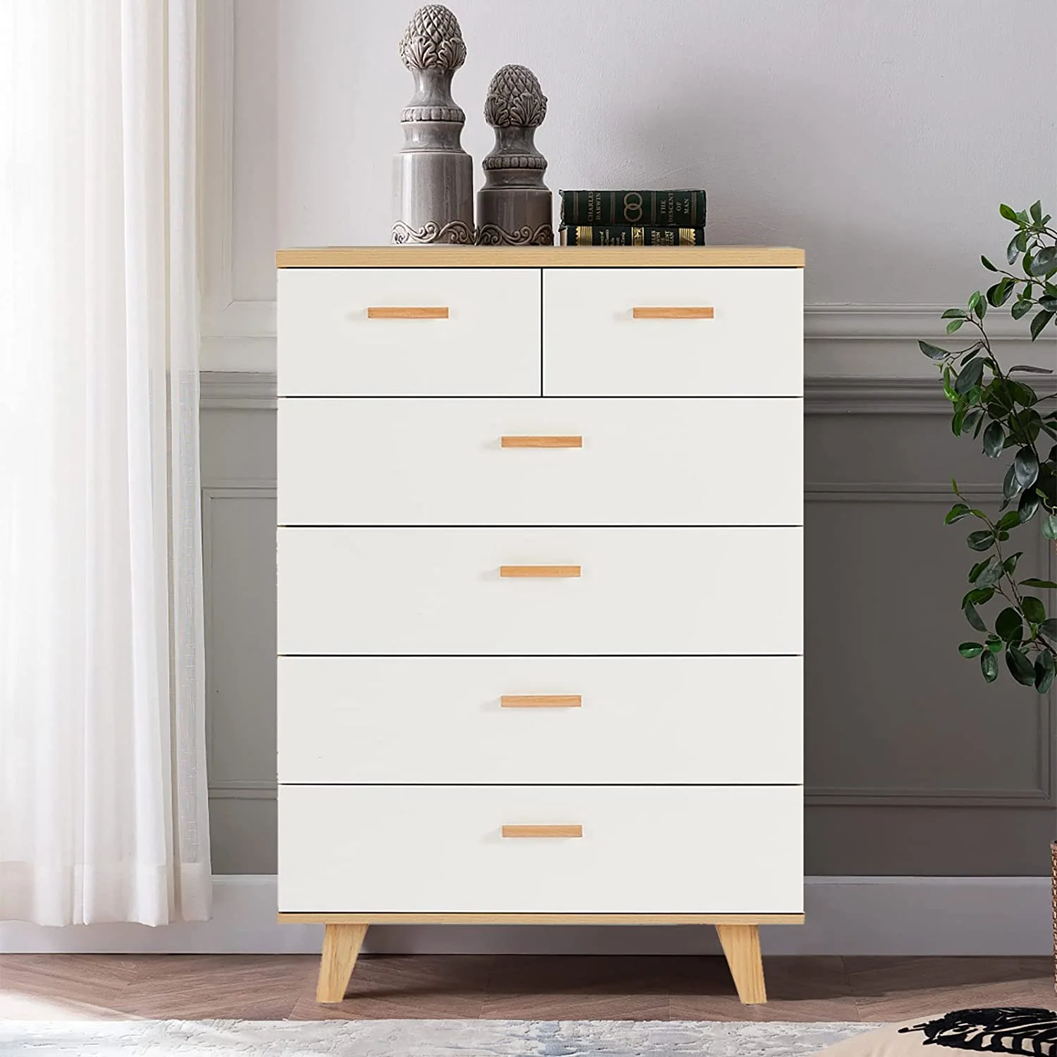Twin Size Platform Storage Bed Solid Wood Bed with 6 Drawers Comfort Bed for Bedroom (Gray)