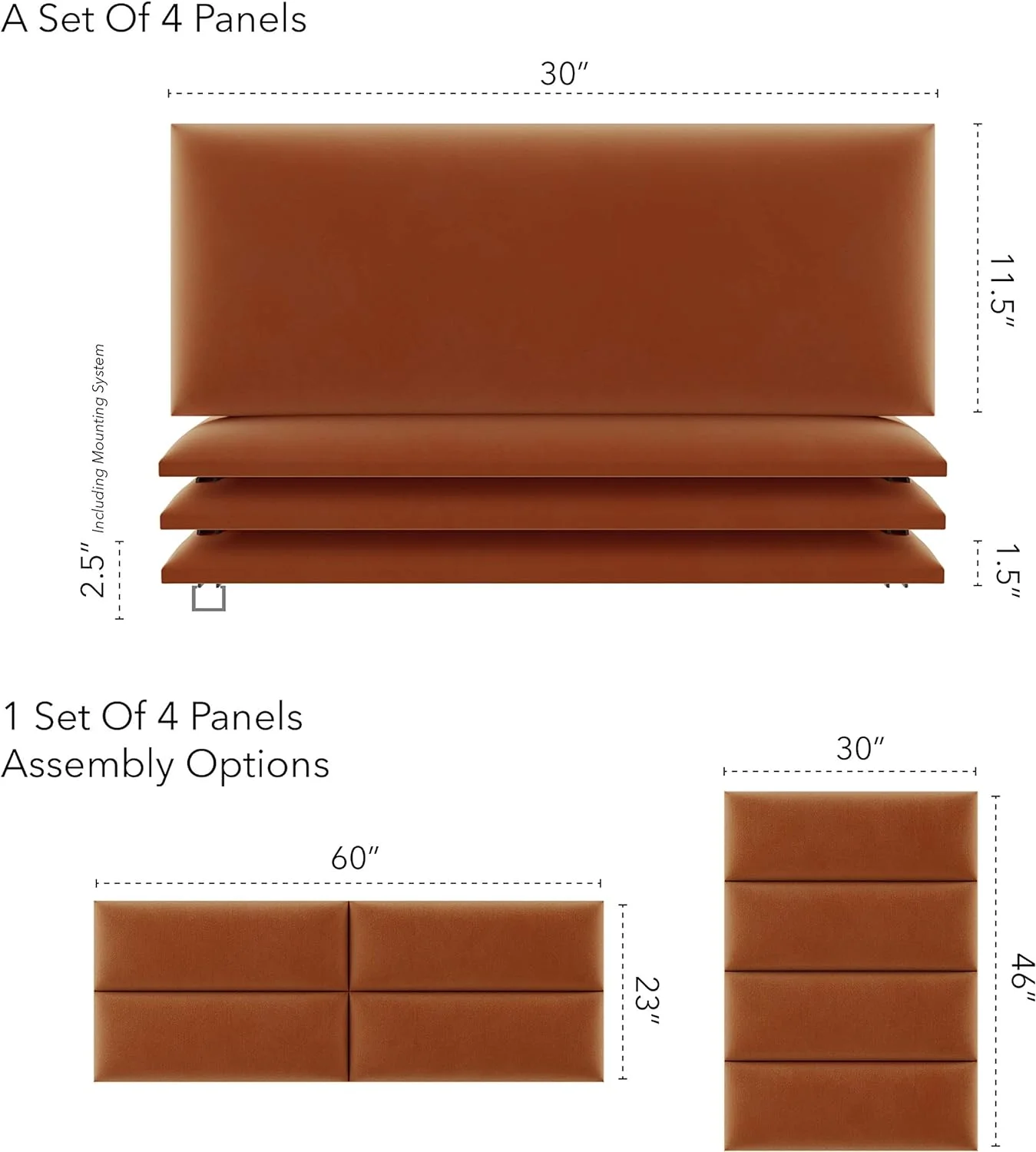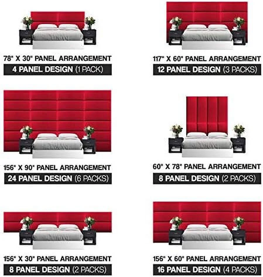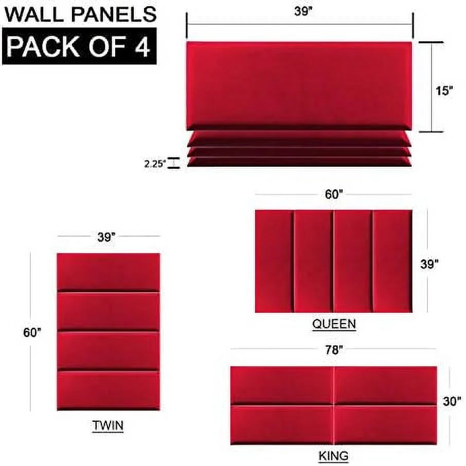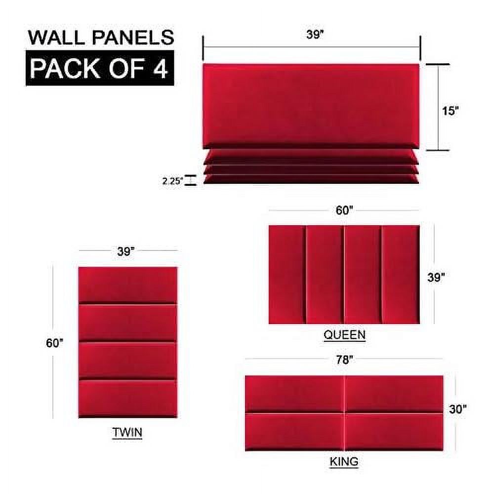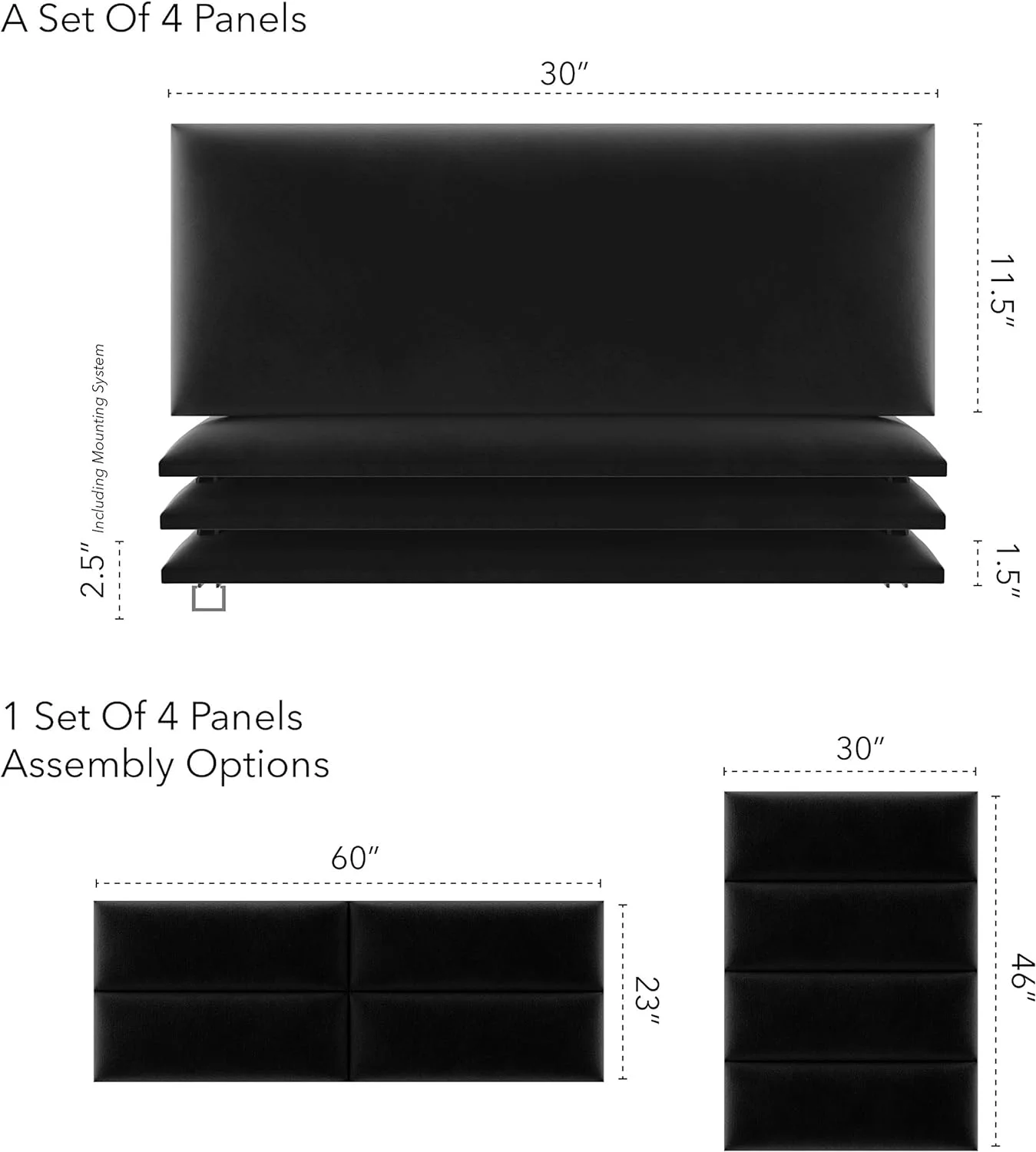 Upholstered Headboards - Wall Panels - Velvet Black - Queen/Full - Set Of 4 Panels (Each Individual Panel 30"X11.5")