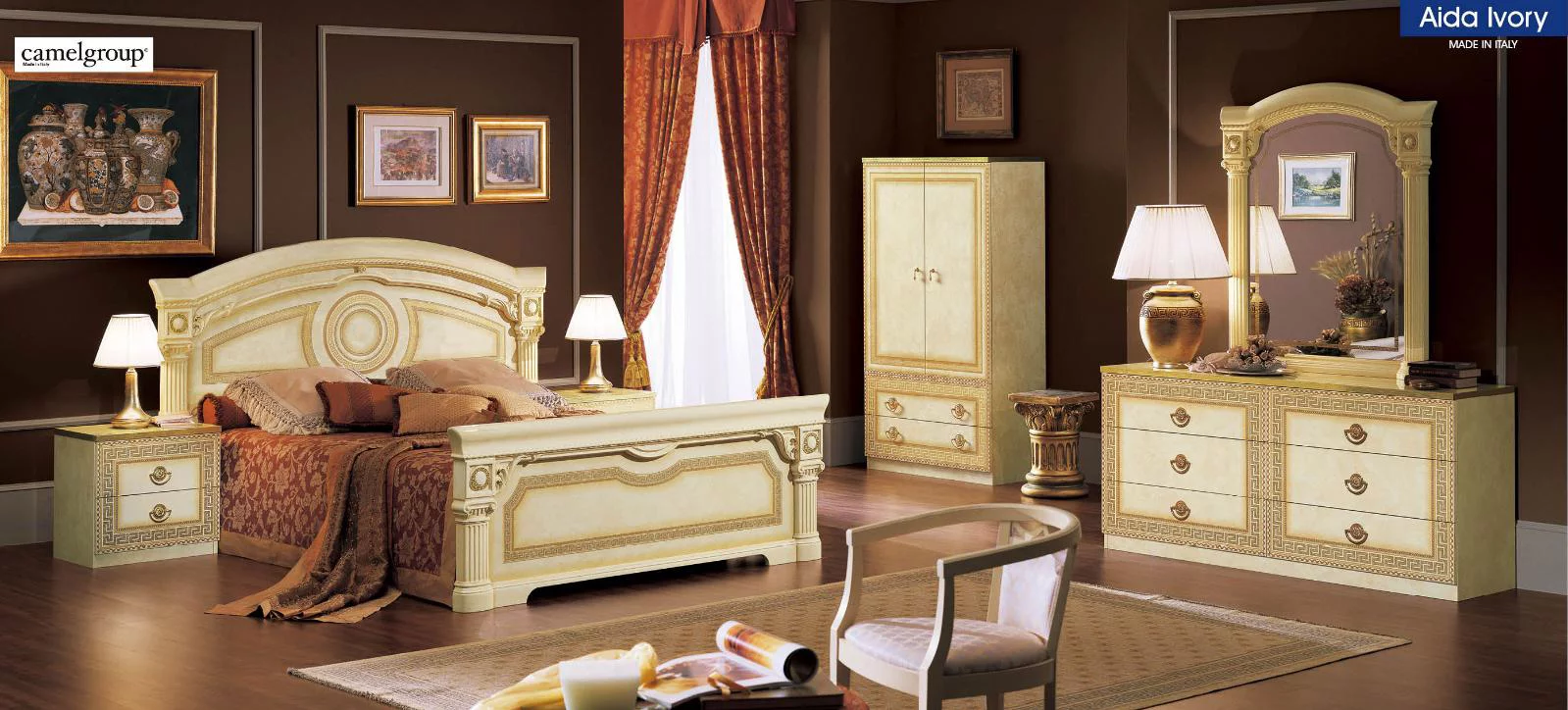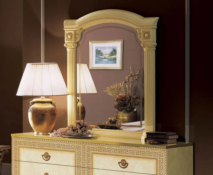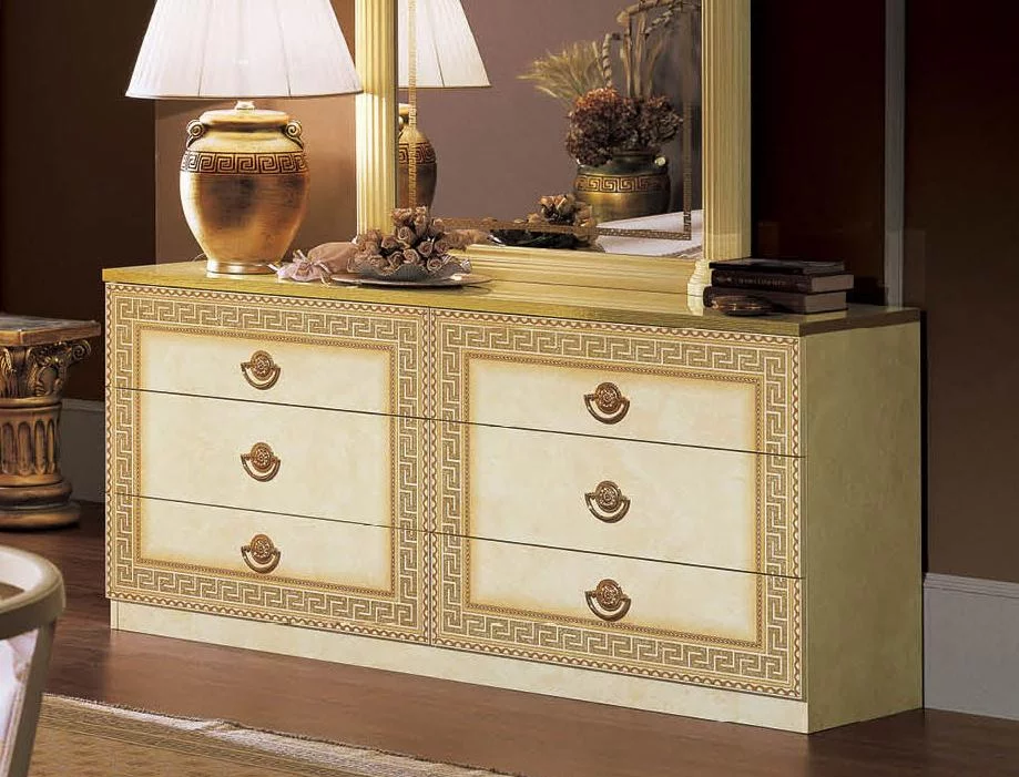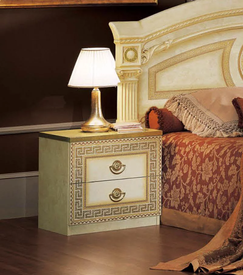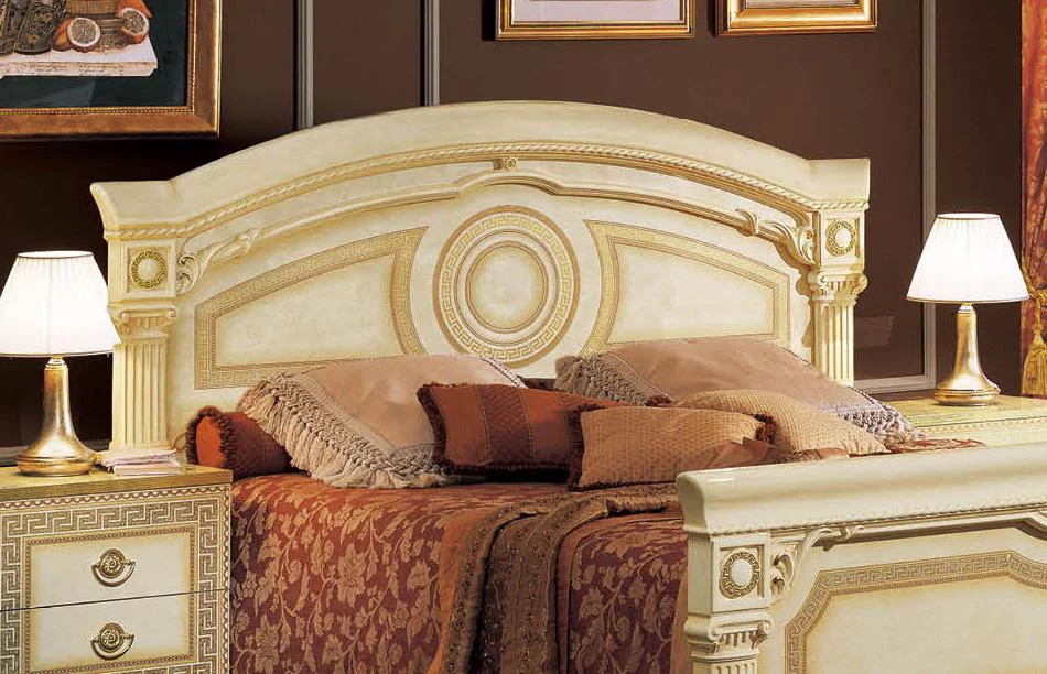 Lacquer Finish King Bedroom Set 5Pcs Made in Italy ESF Aida Ivory Gold