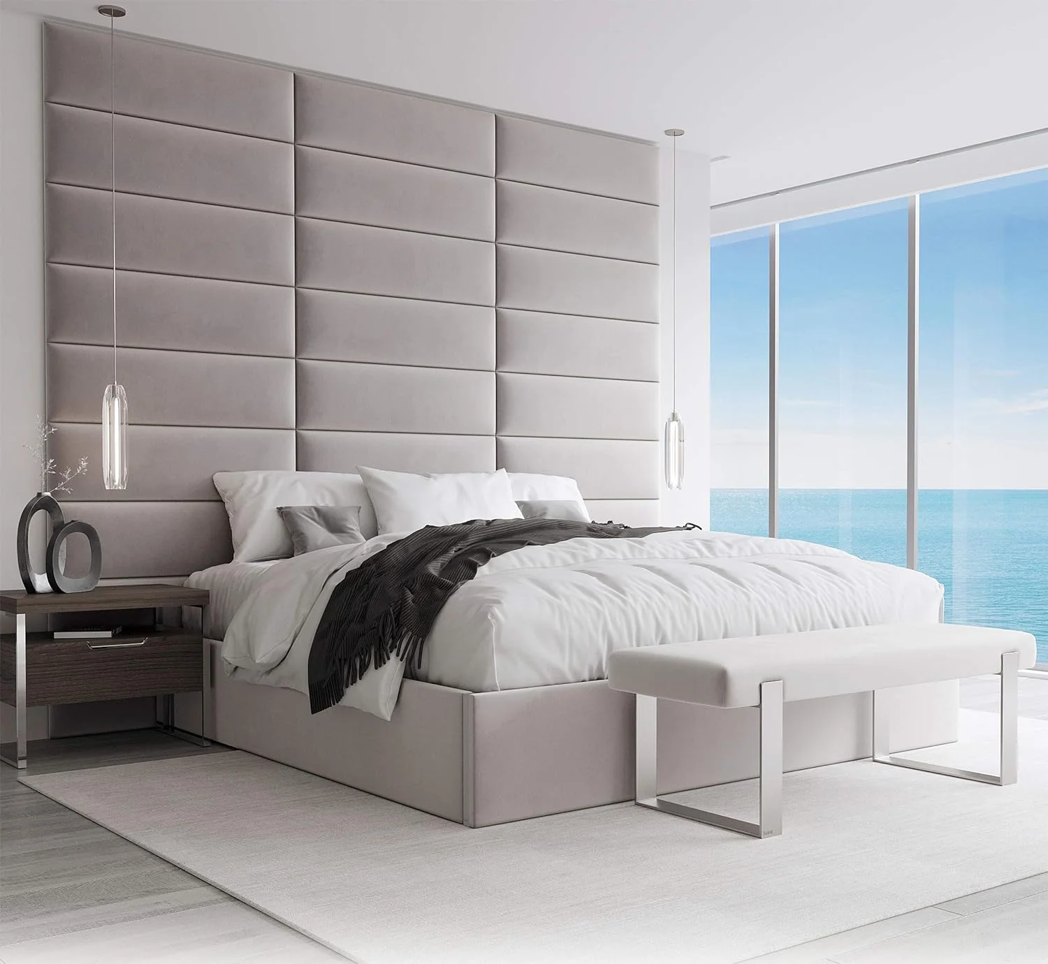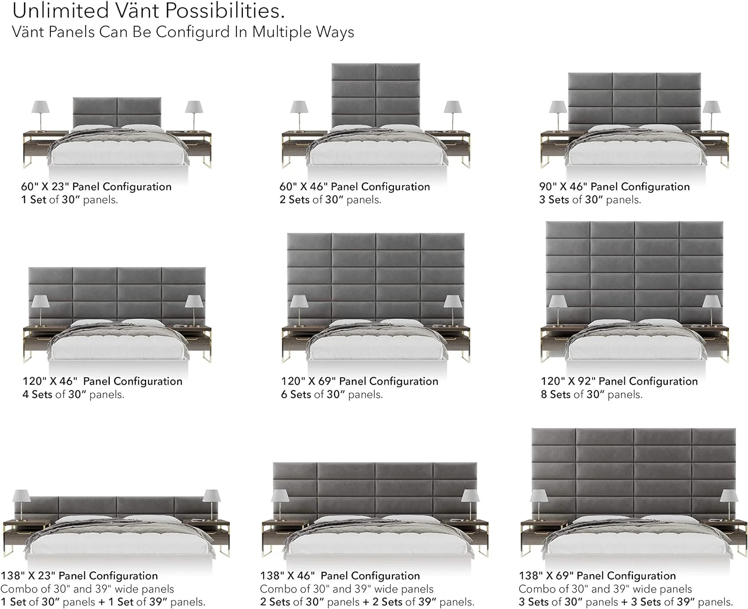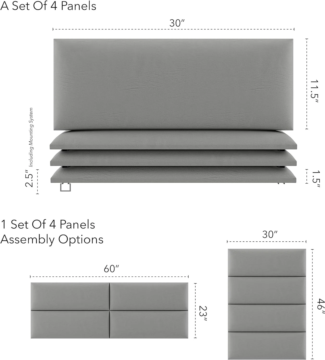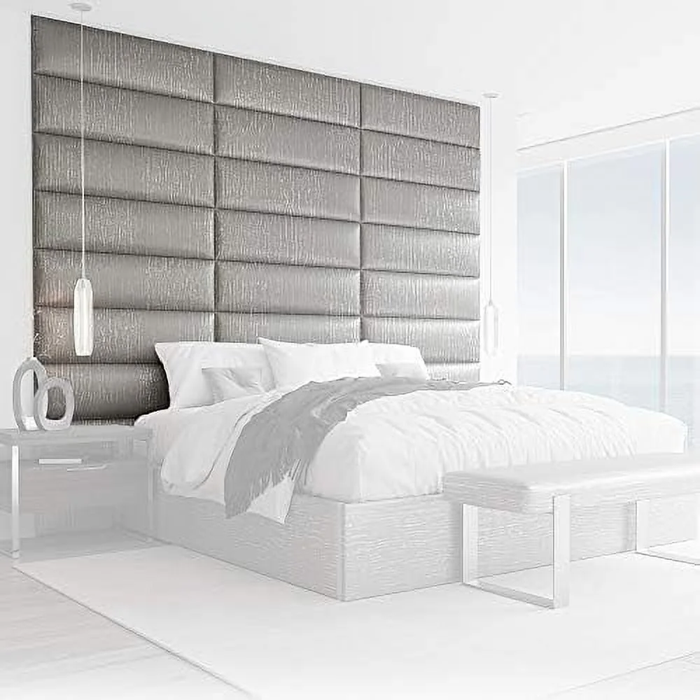 Upholstered Headboards - Wall Panels - Metallic Silver - Queen/Full - Set Of 4 Panels (Each Individual Panel 30"X11.5")