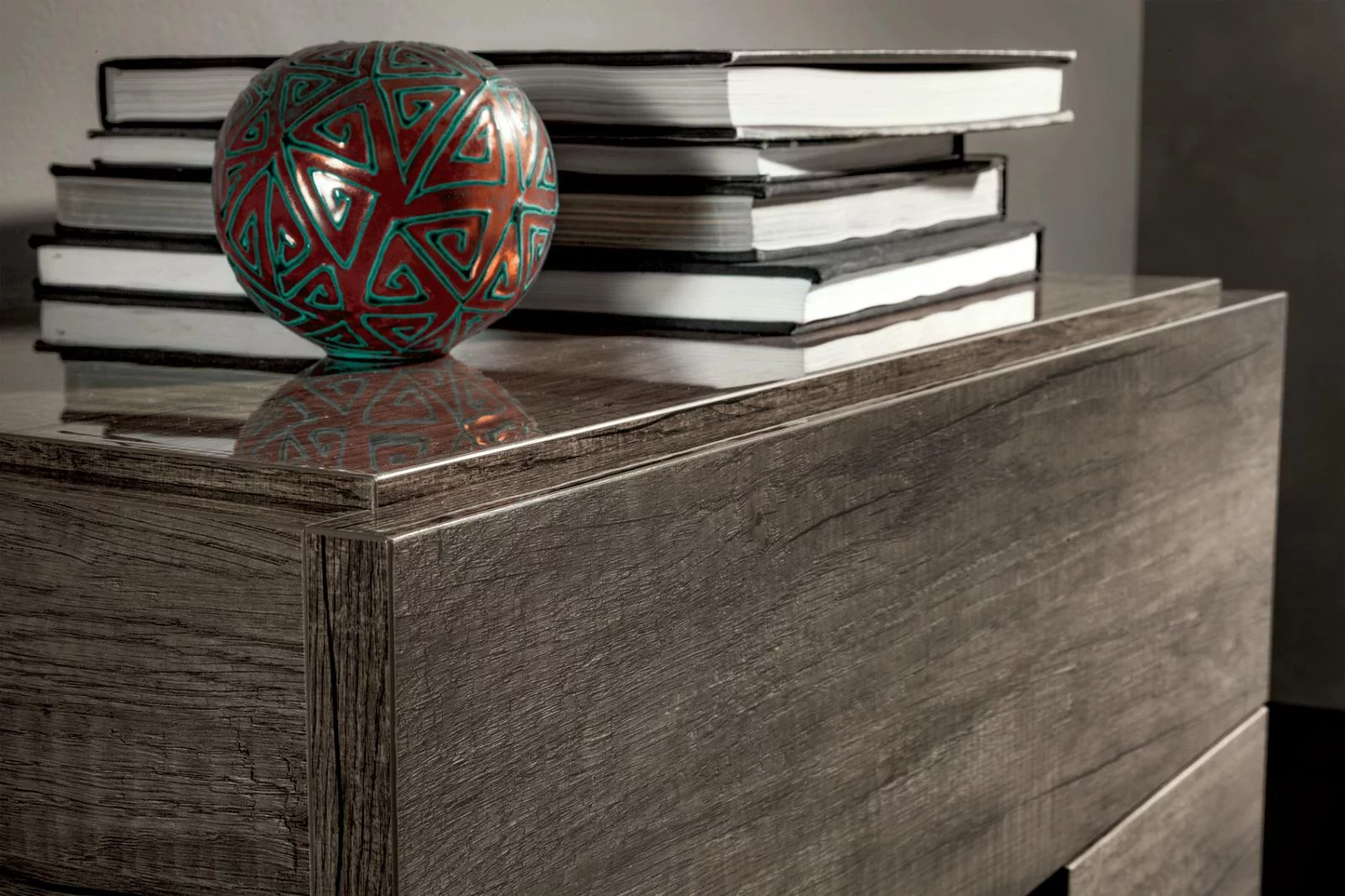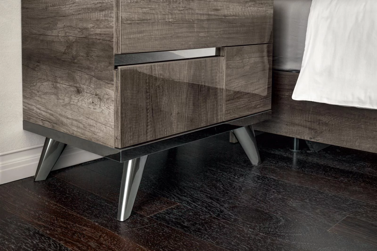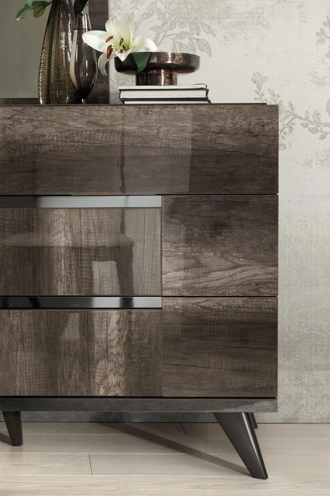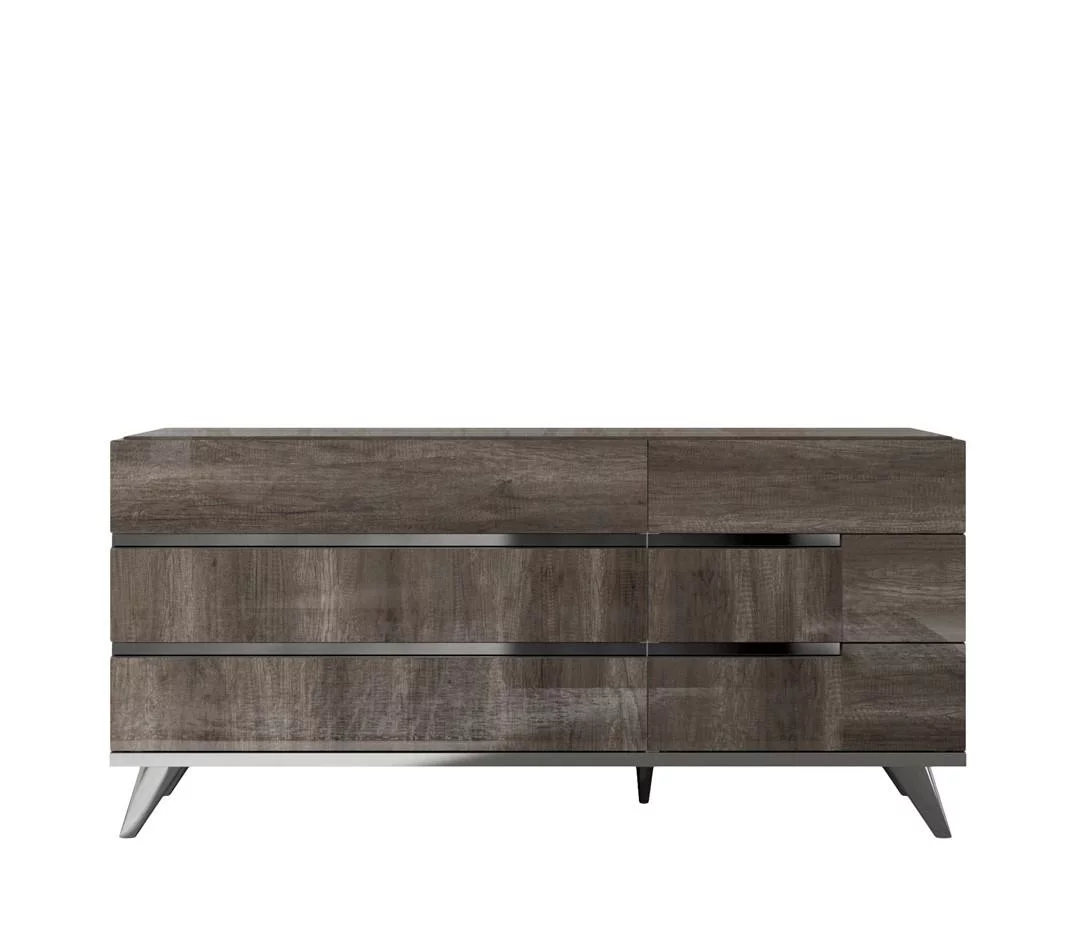 Vintage Oak Gloss Finish King Bedroom Set 5 Pcs Made in Italy Soflex Medea