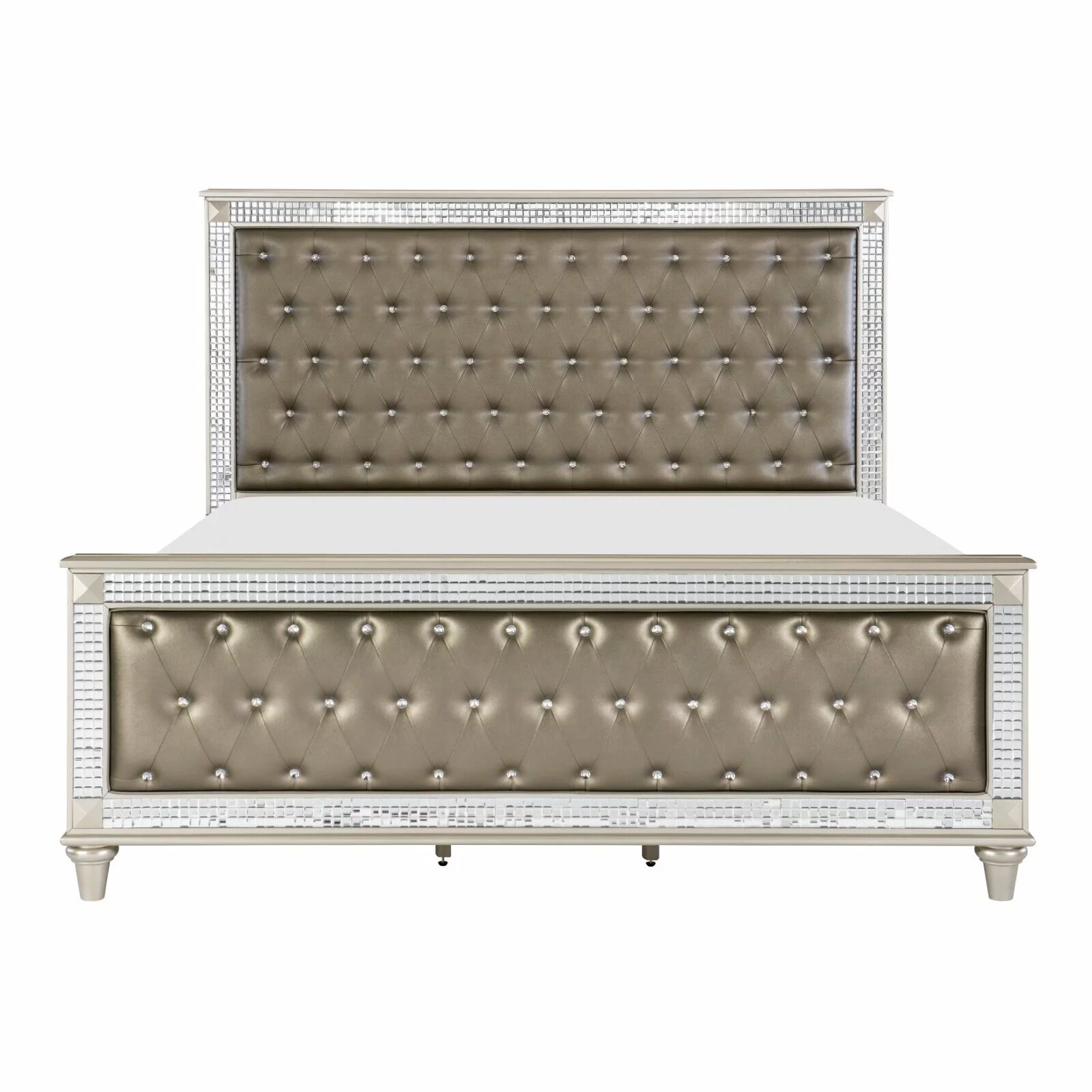 Modern Design Champagne Finish 1pc Est King Bed Acrylic Crystal Tufting Upholstered Headboard Elegant Style Bed