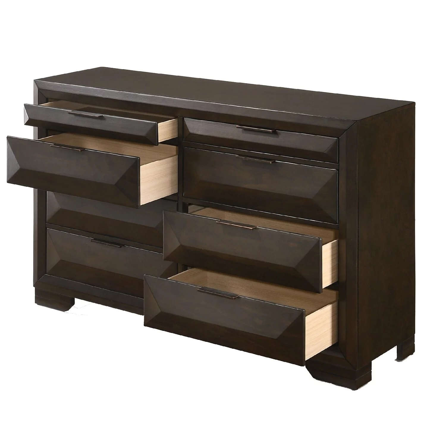 Benzara Eight Drawers Wooden Dresser with Beveled Drawer Fronts, Espresso Brown