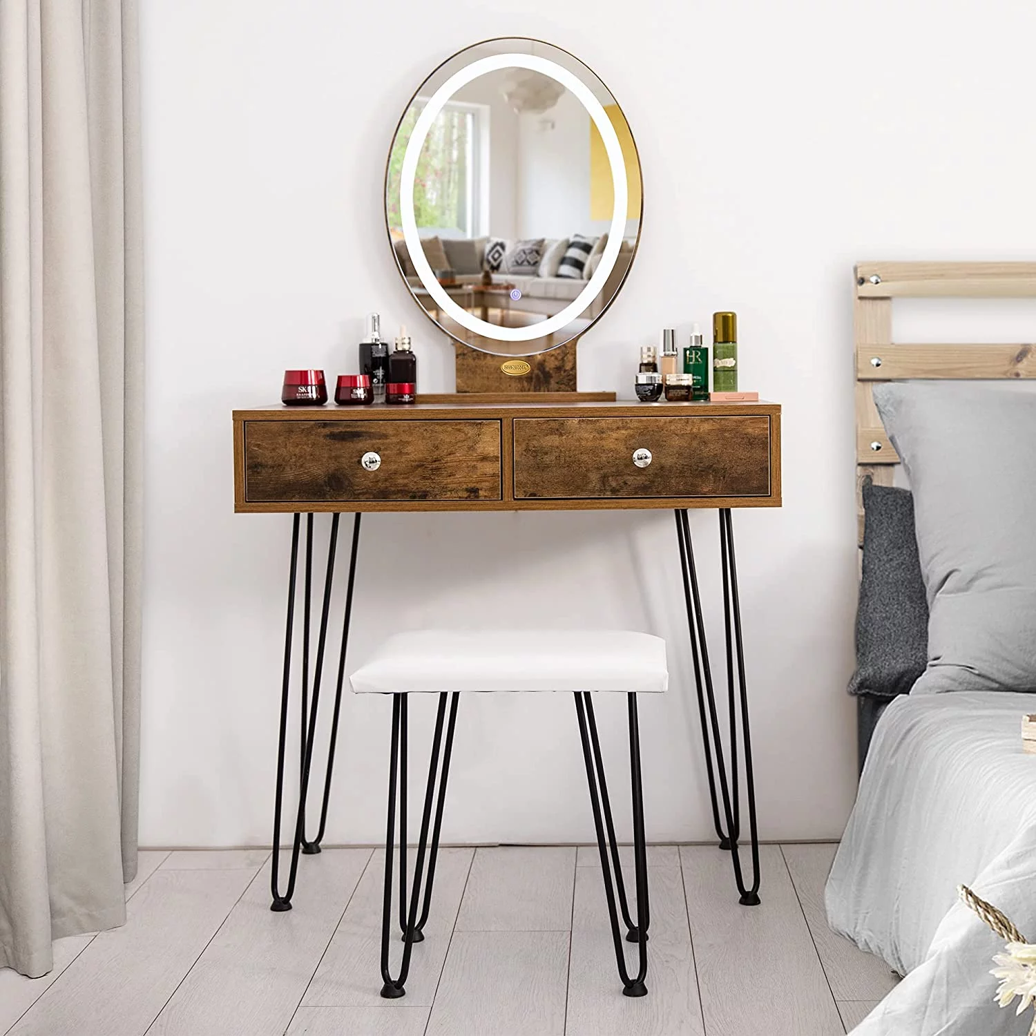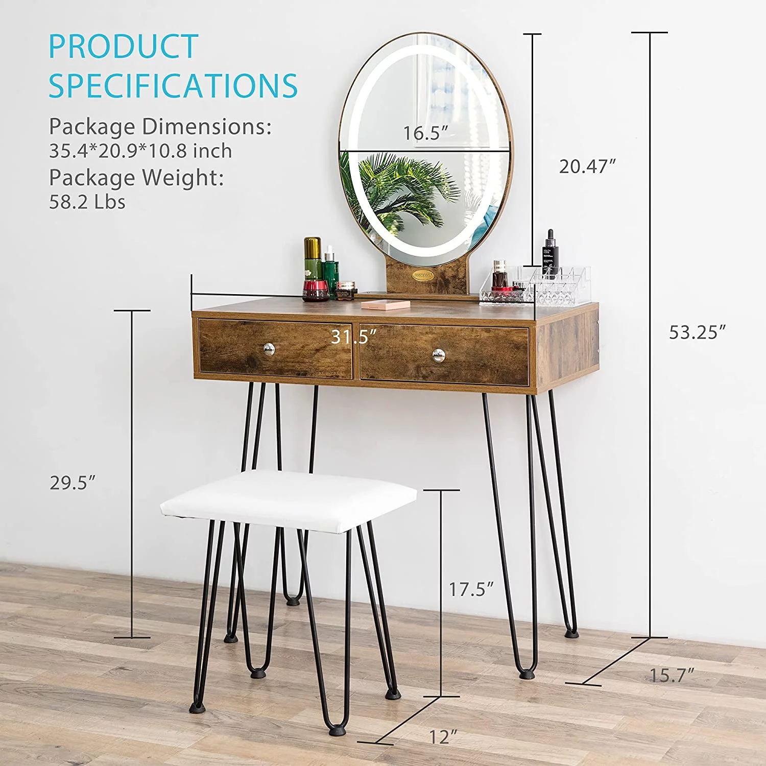 Wood Grain Twin Size Loft Bed Frame with Wood Ladder & Side Rails, White & Brown