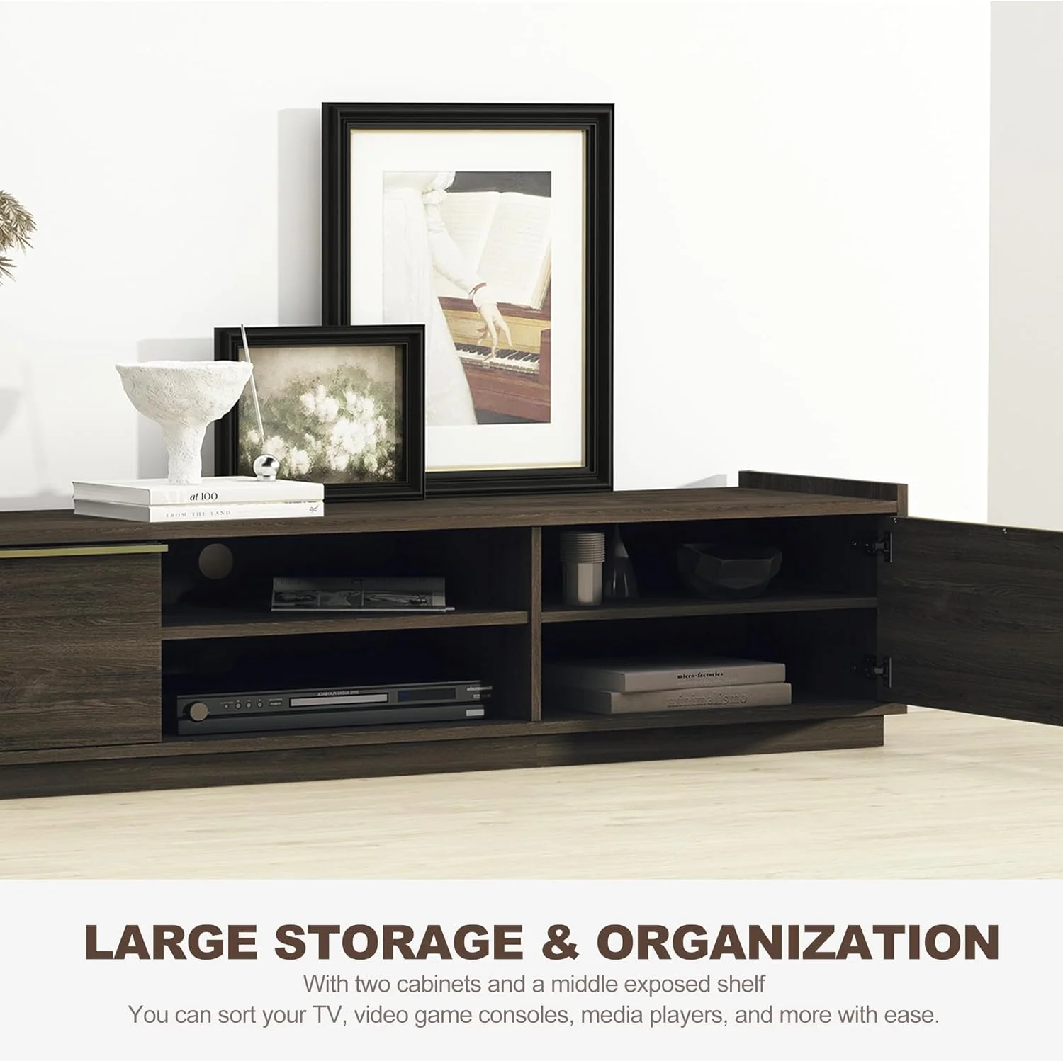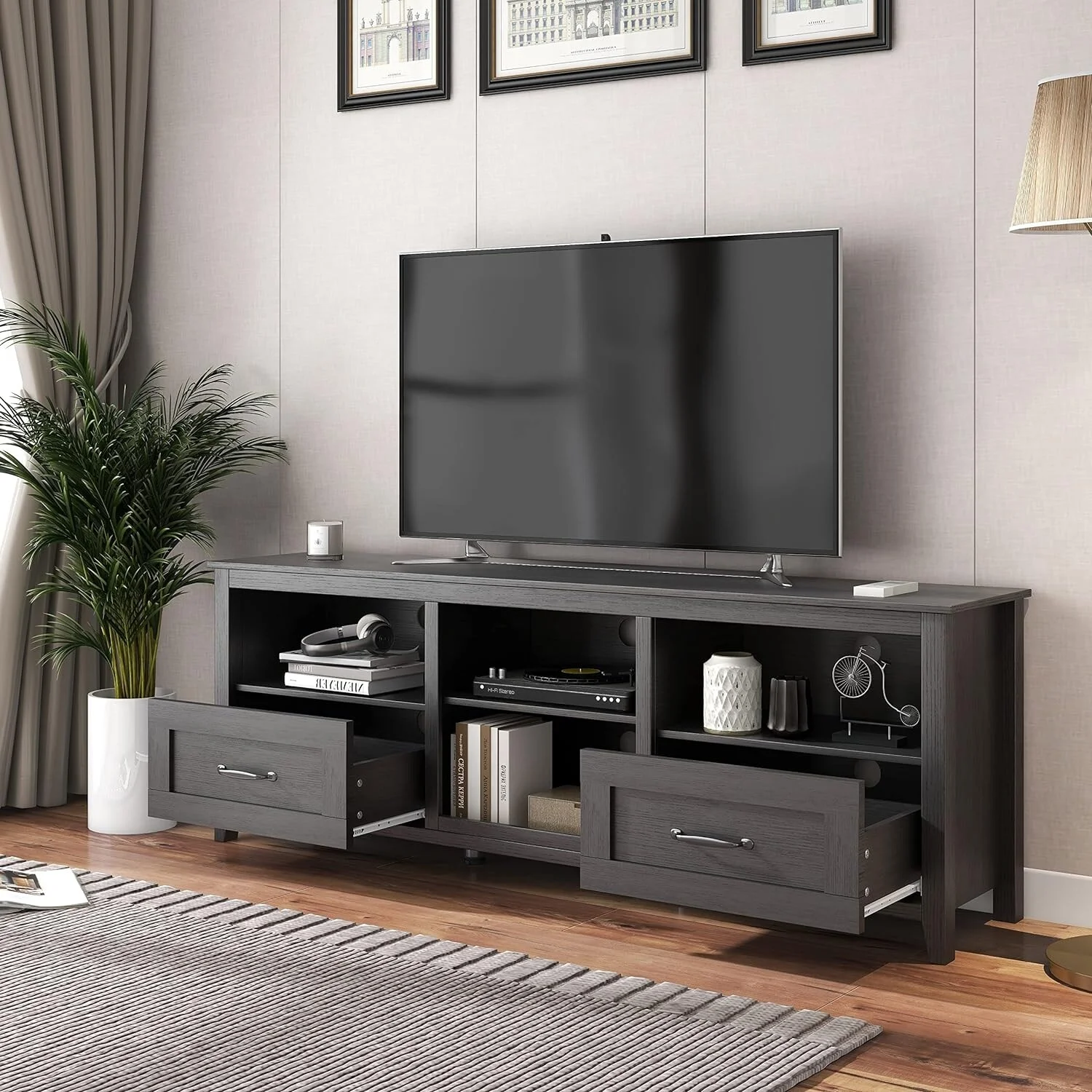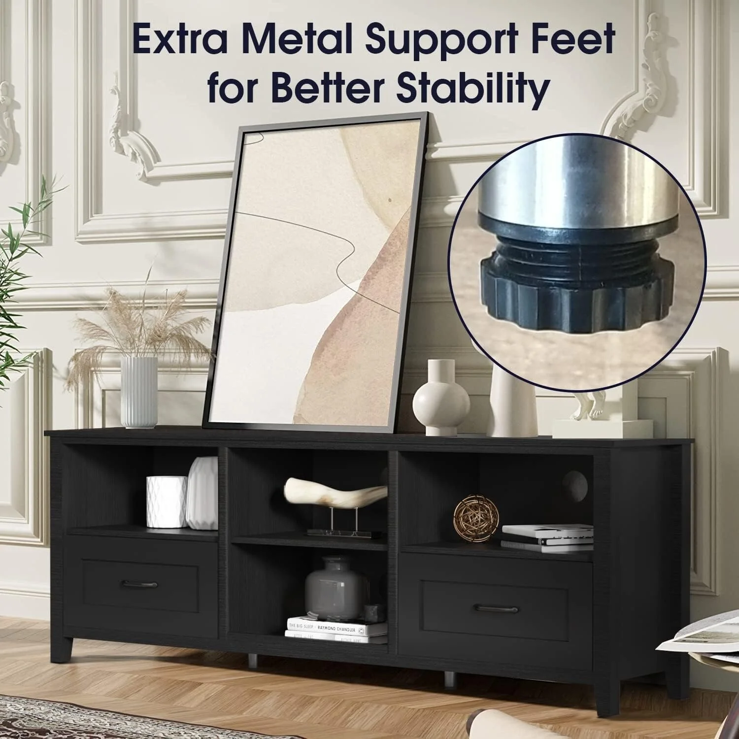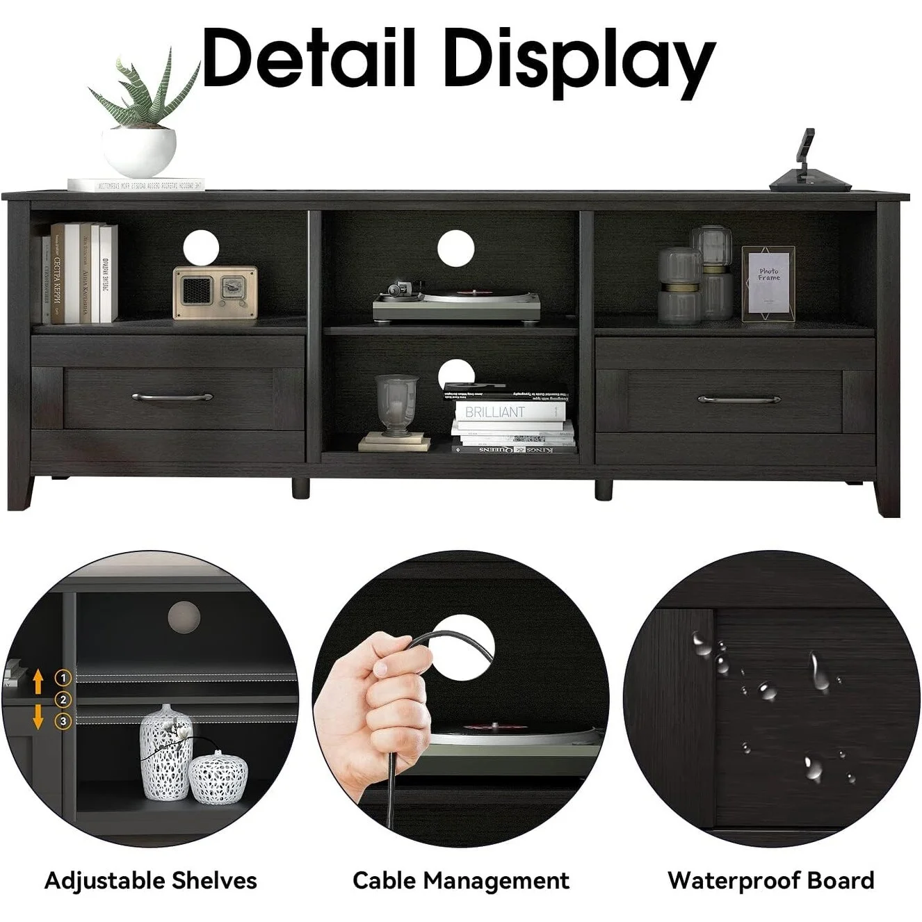 TV Stand Home Cabinet with Drawers/Shelves/Doors for Living Room Bedroom 70 inch 73 inches - Black