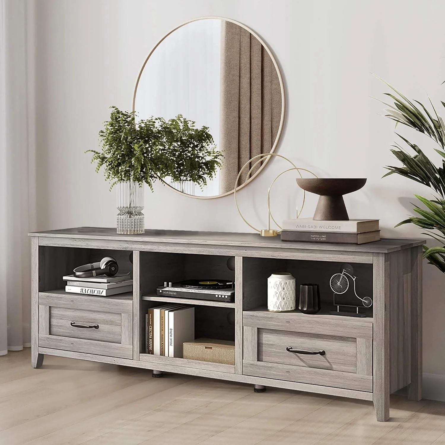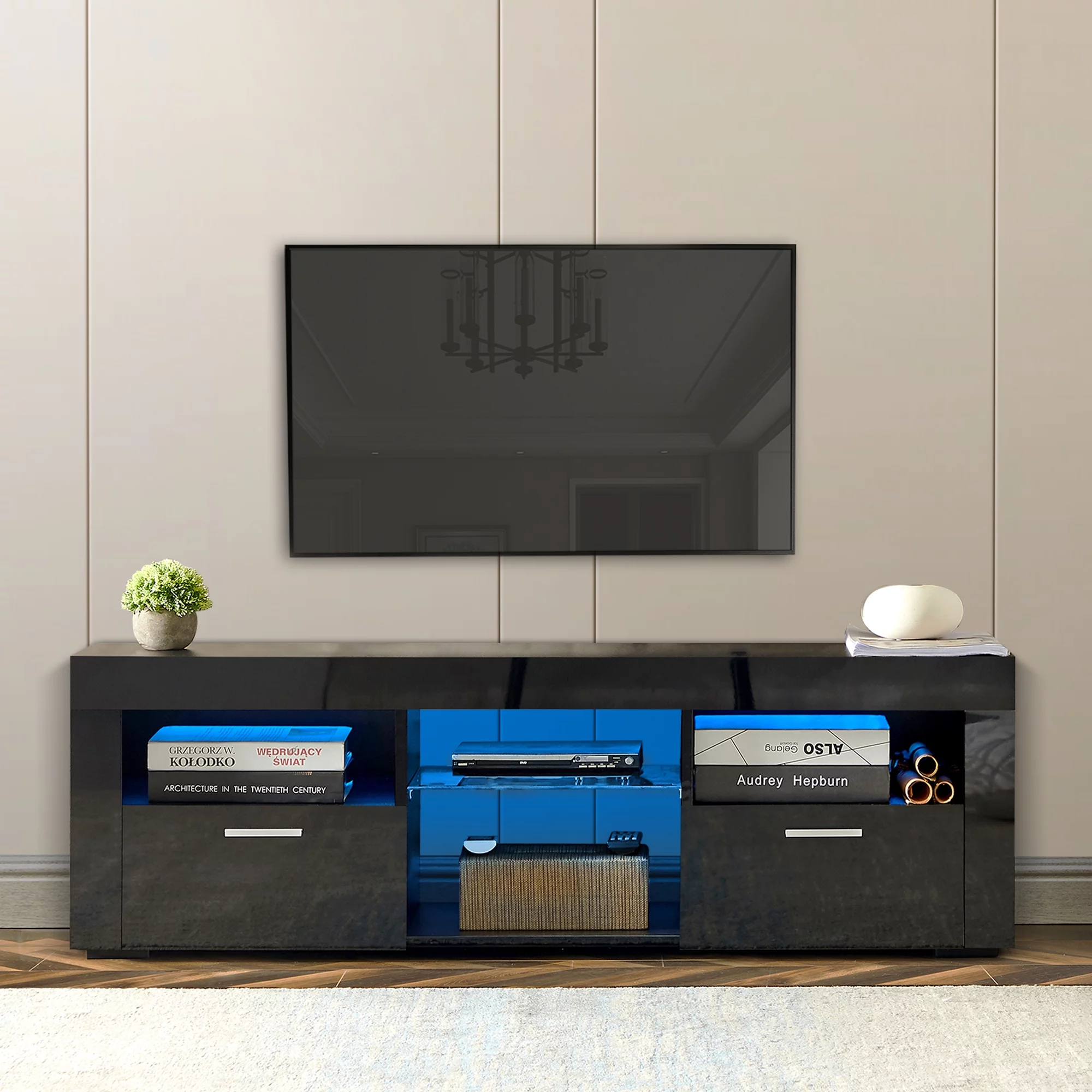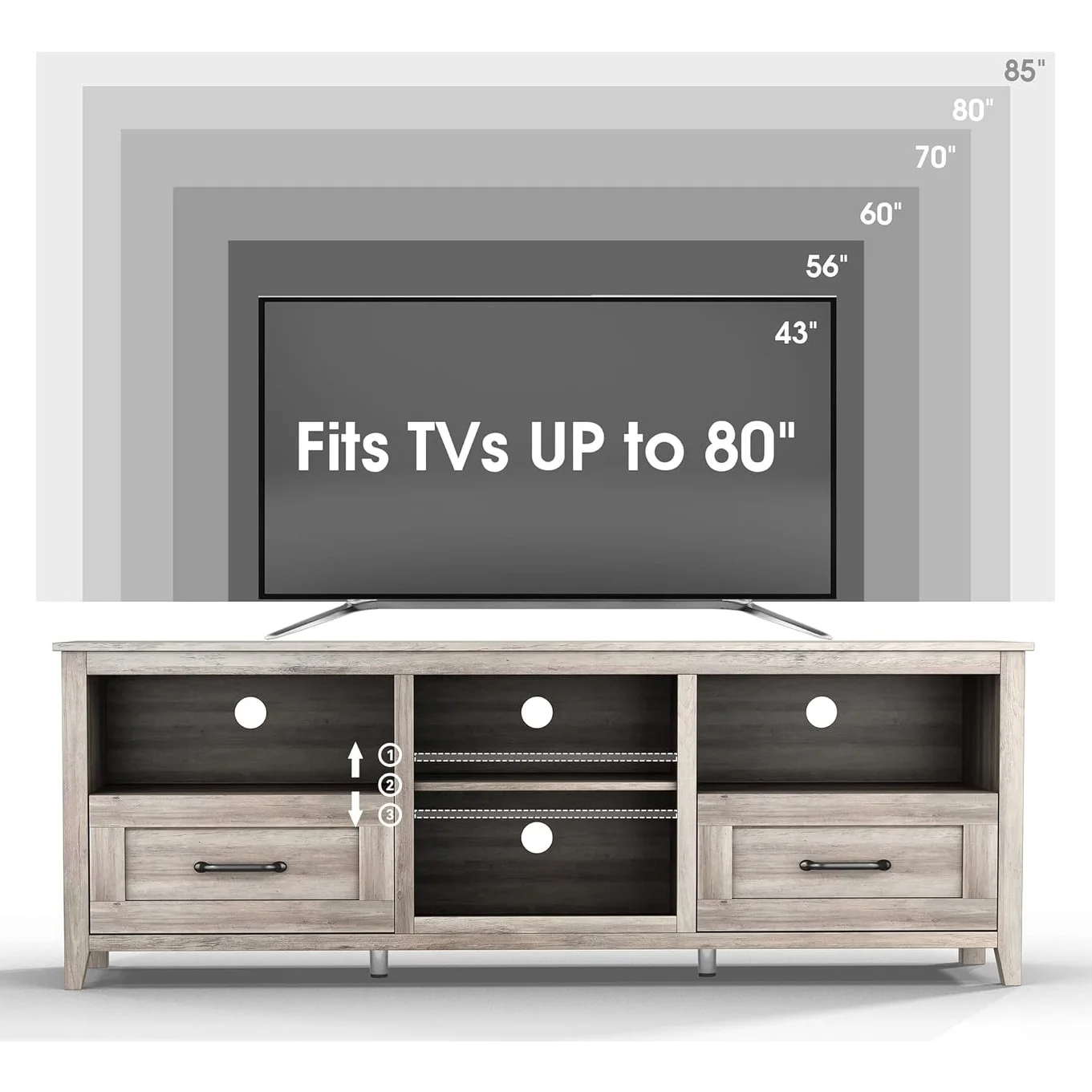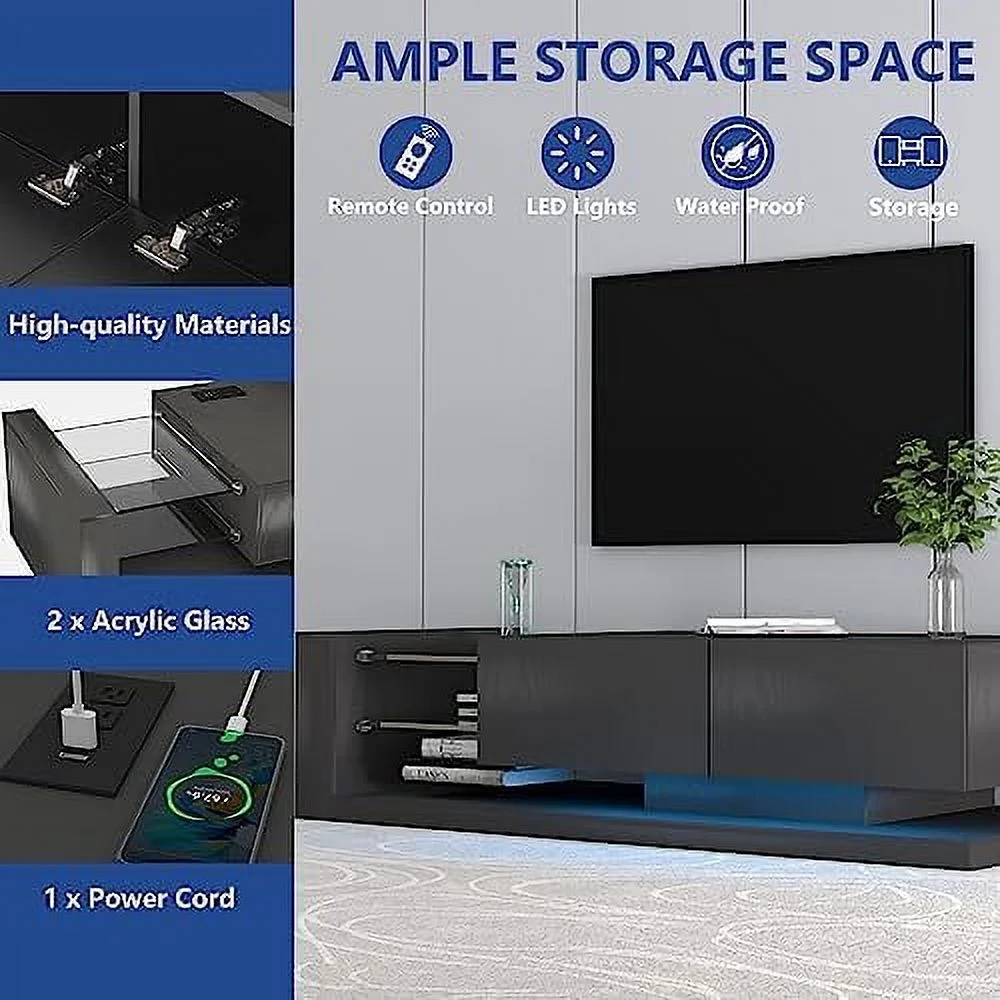 TV Stand Home Cabinet with Drawers/Shelves/Doors for Living Room Bedroom 70 inch 73 inches - Black