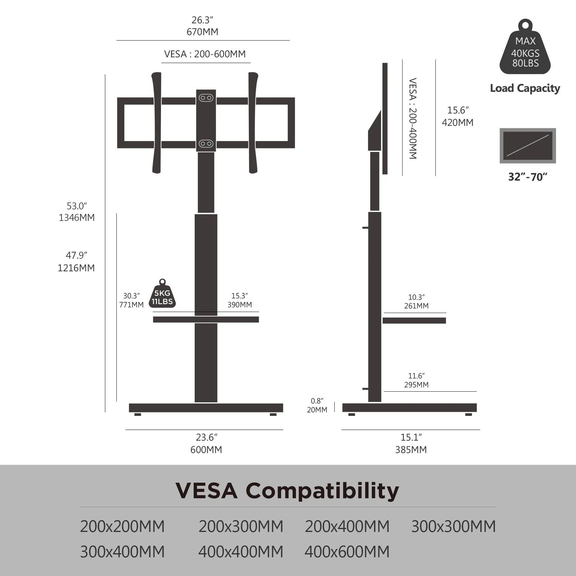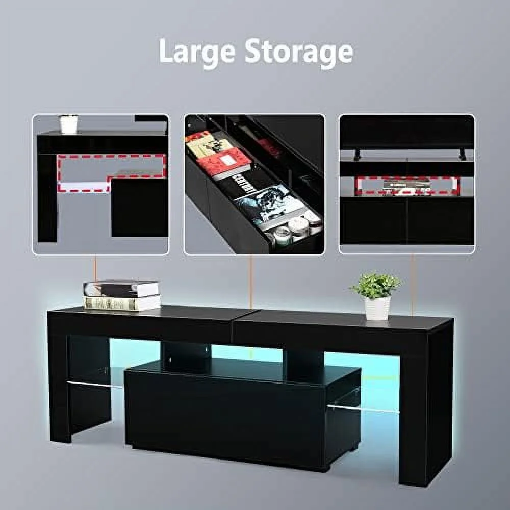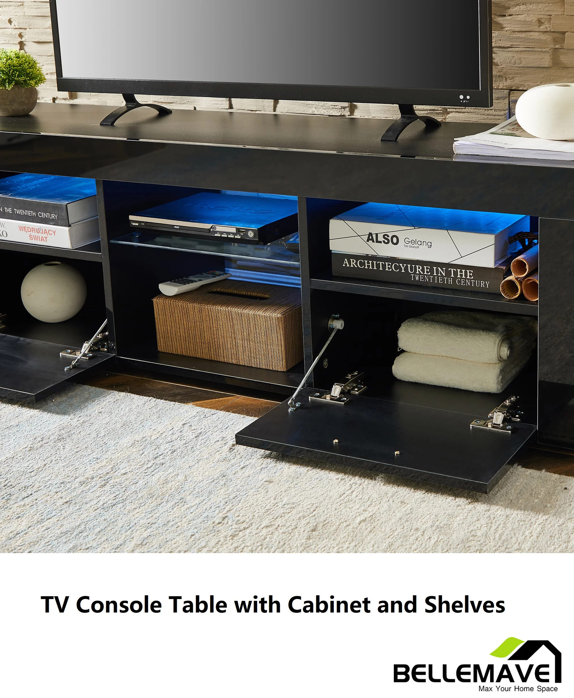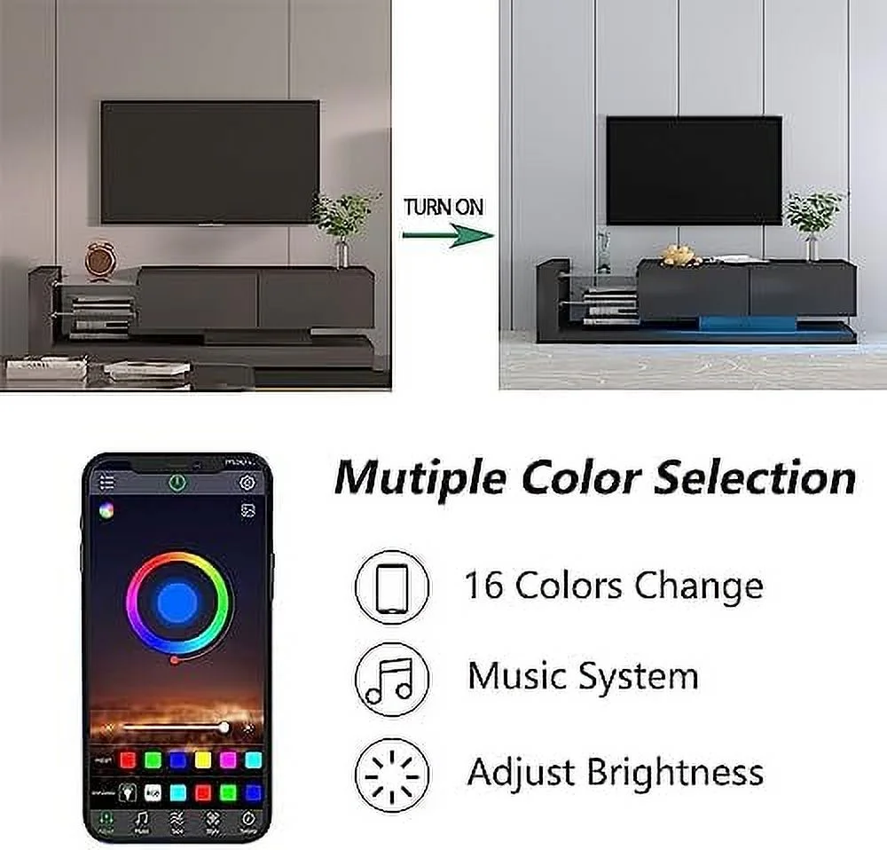 TV Stand Home Cabinet with Drawers/Shelves/Doors for Living Room Bedroom 70 inch 73 inches - Black