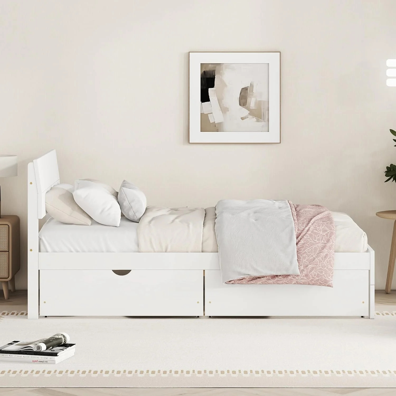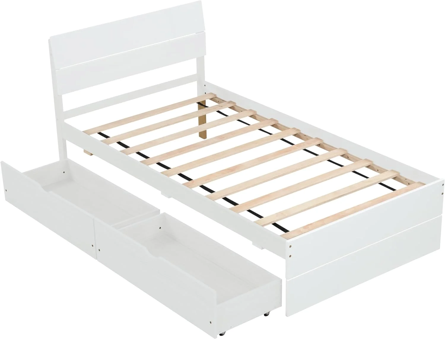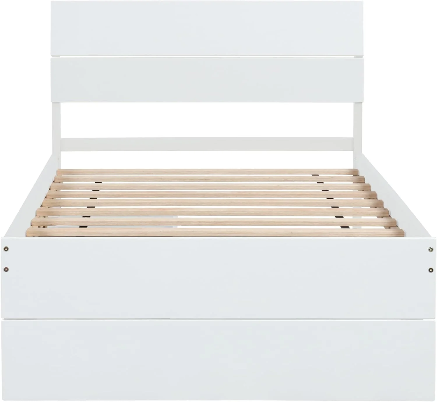 Moder Platform Bed With 2 Storage Drawers Ad Headboard, Size Bed Frame,Wood Slats Support For Boys/Girls/Adult Bedroom,White