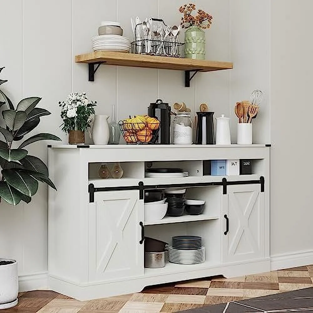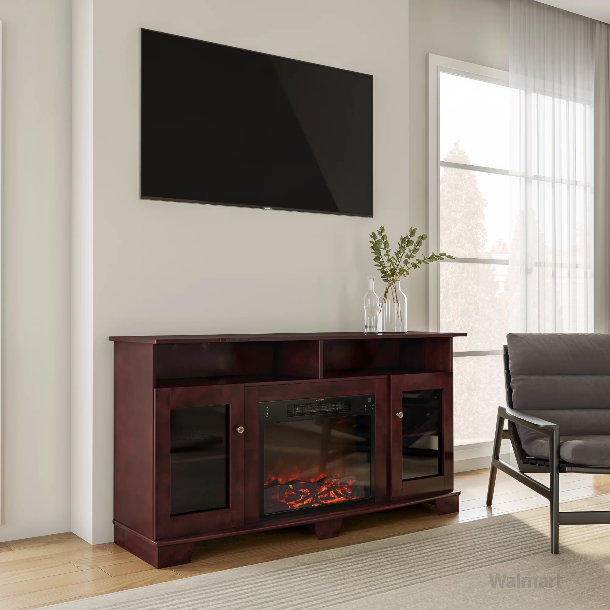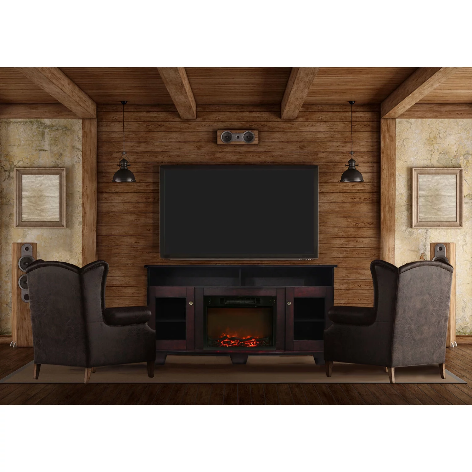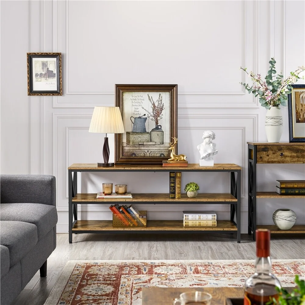 Yaheetech 55'' TV Stand with Storage Shelves for Living Room Rustic Brown