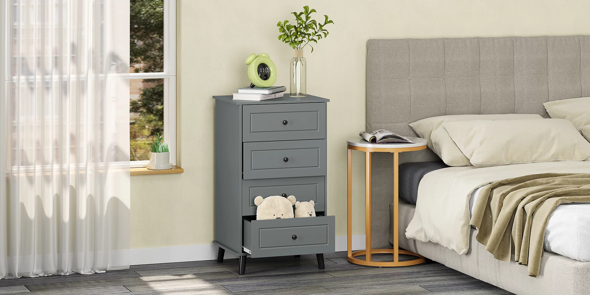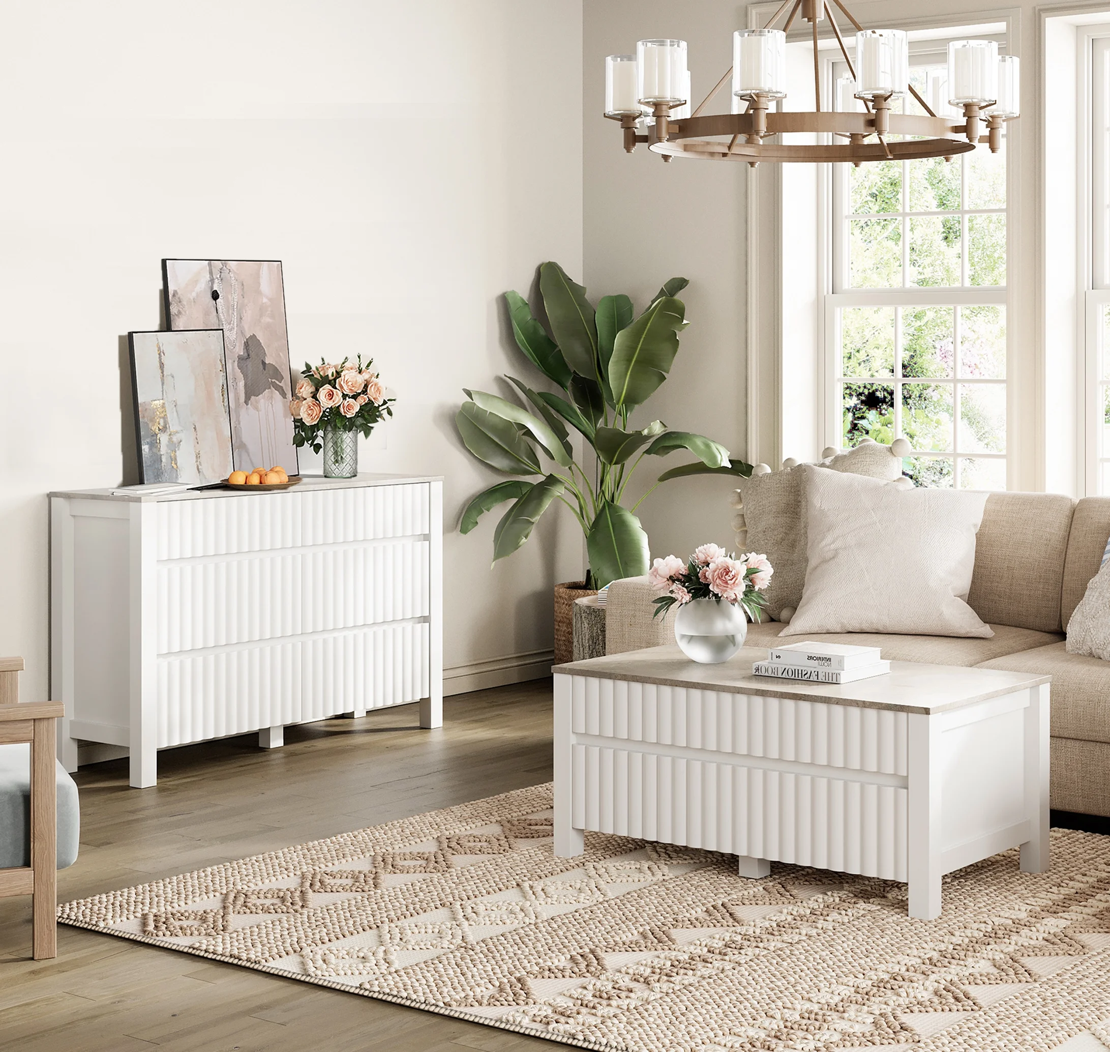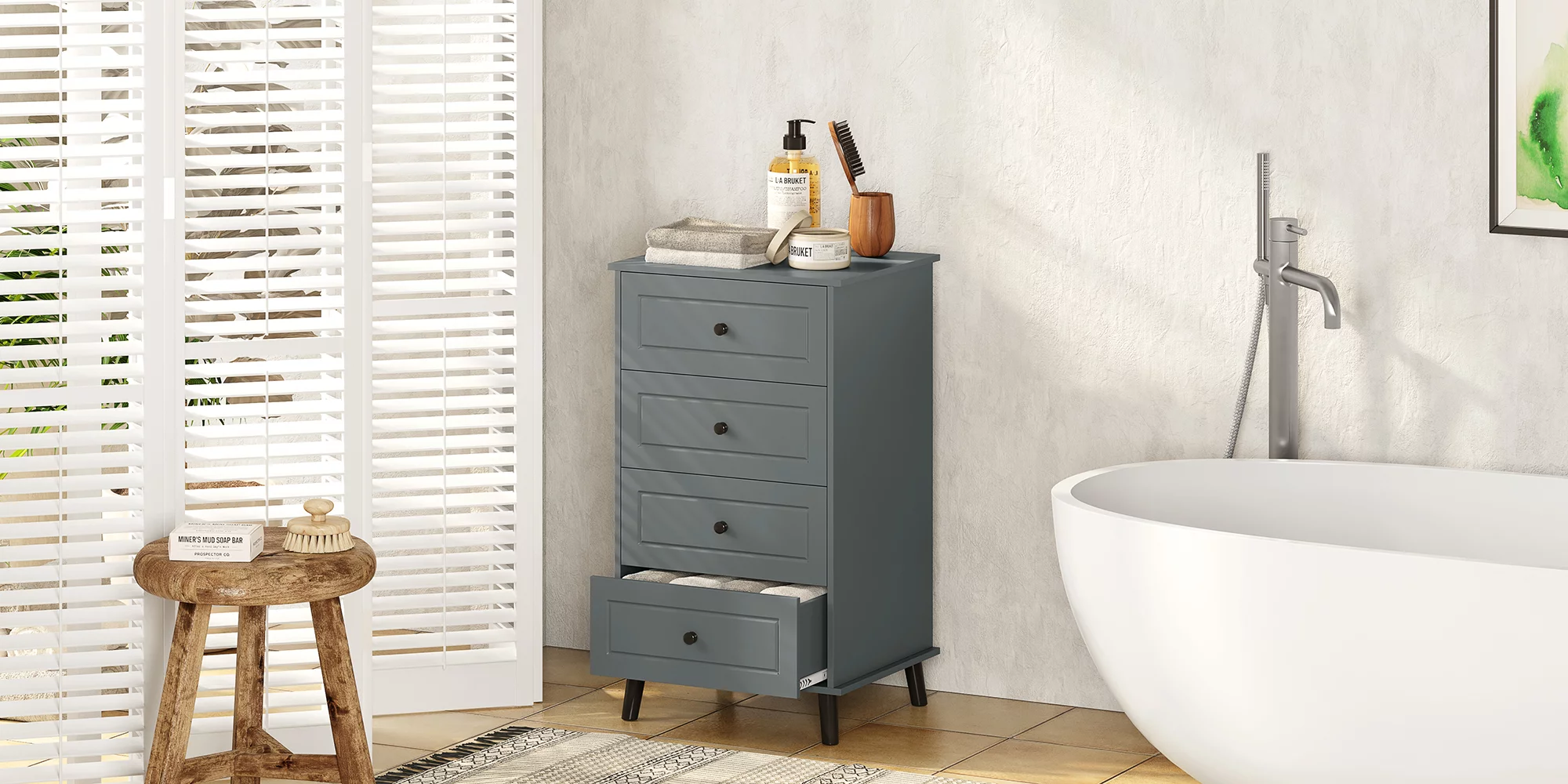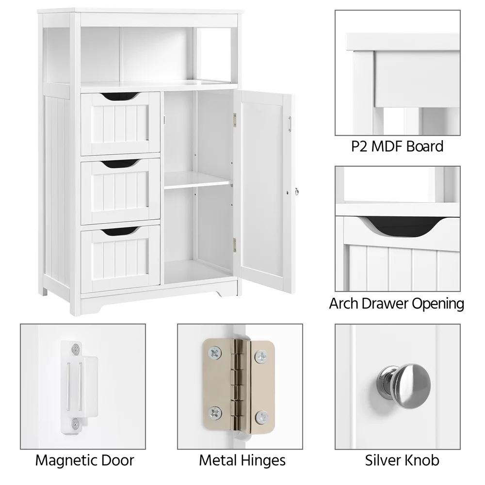 Topeakmart Wooden Bathroom Floor Cabinet Storage Organizer with Drawers, White