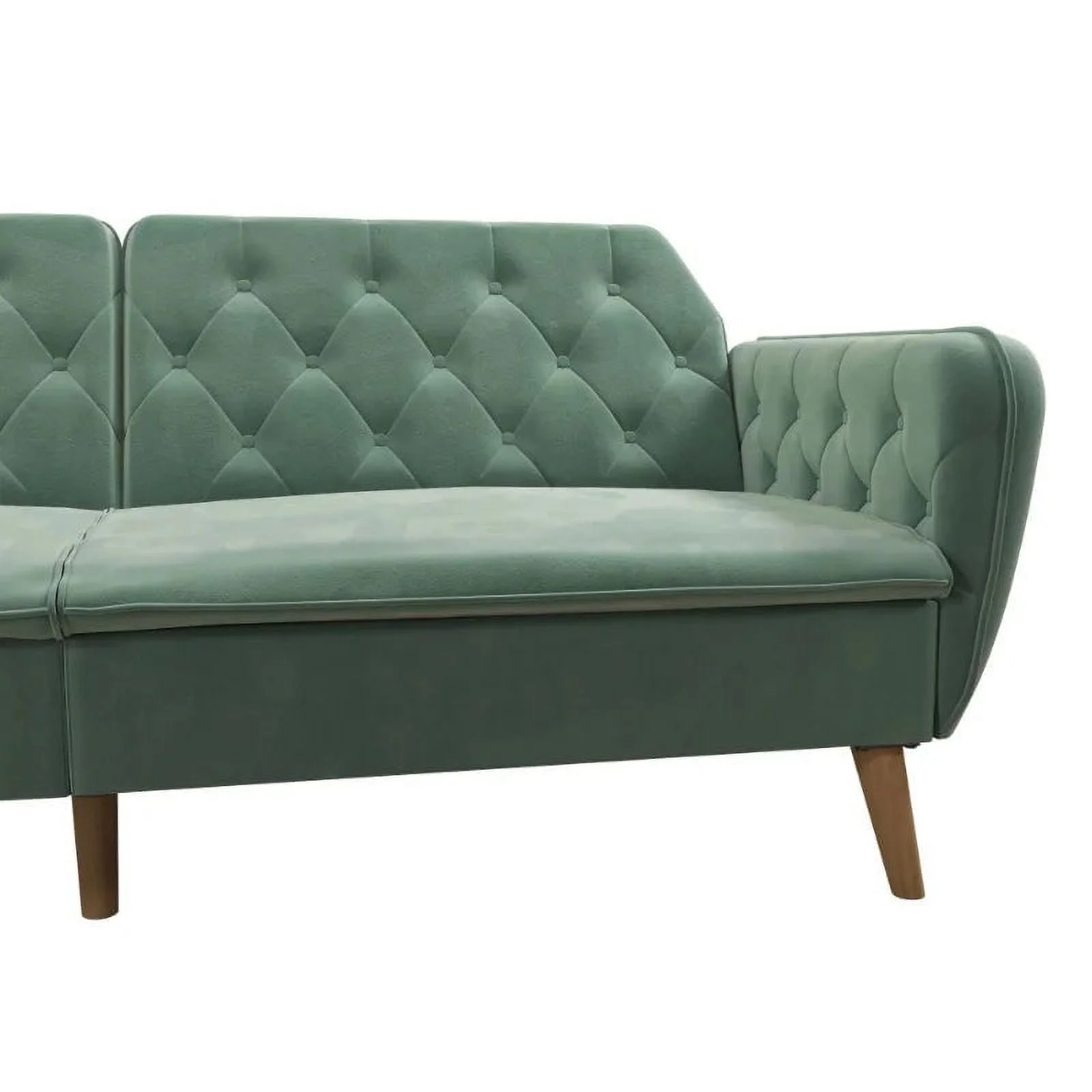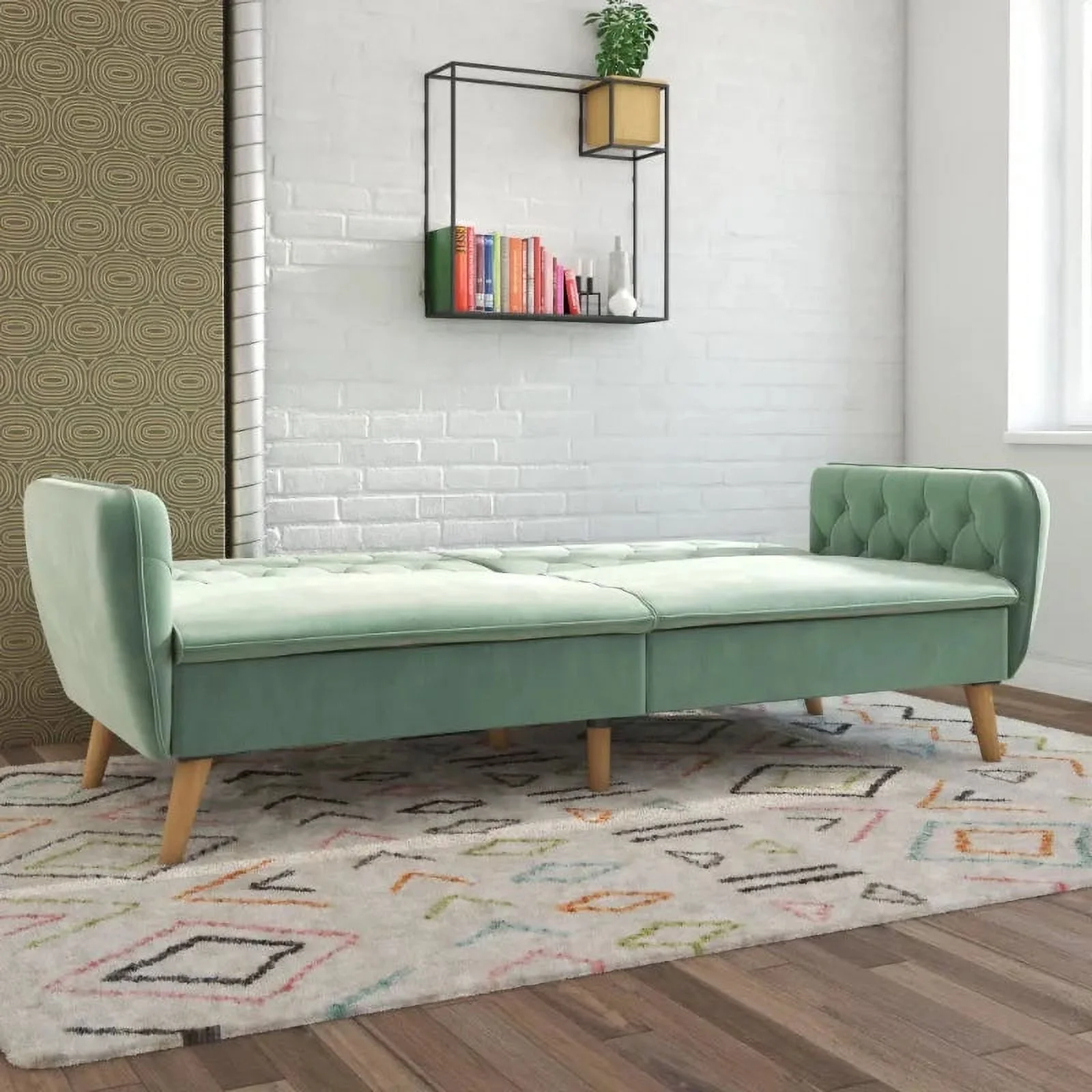 Novogratz Tallulah Memory Foam Futon and Sofa Bed, Light Green Velvet living room furniture minimalist sofa