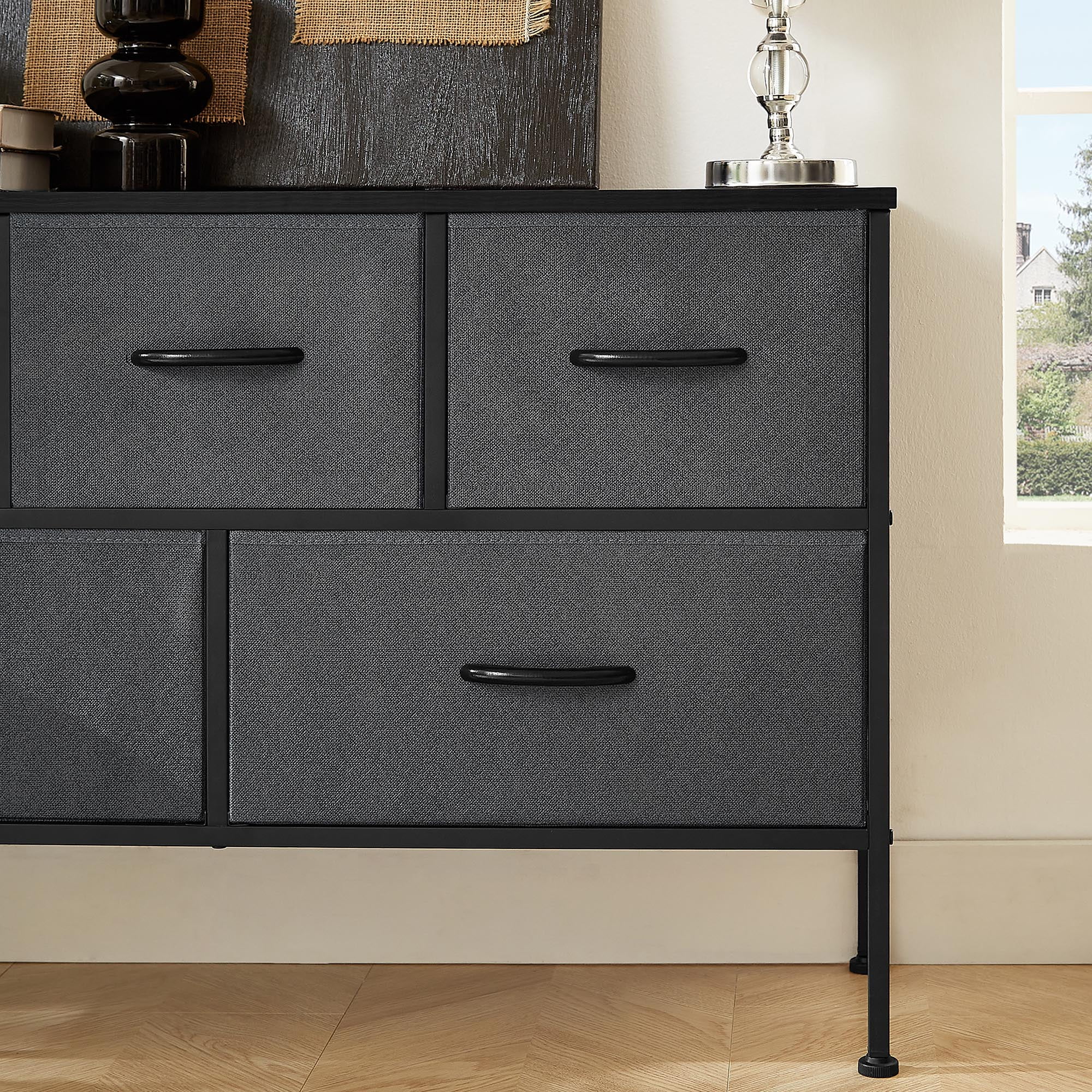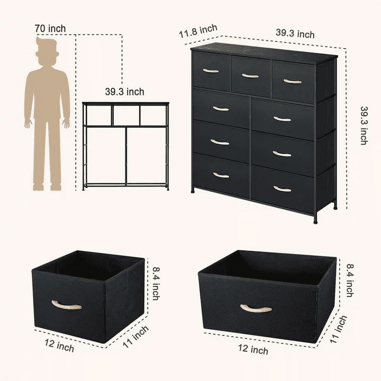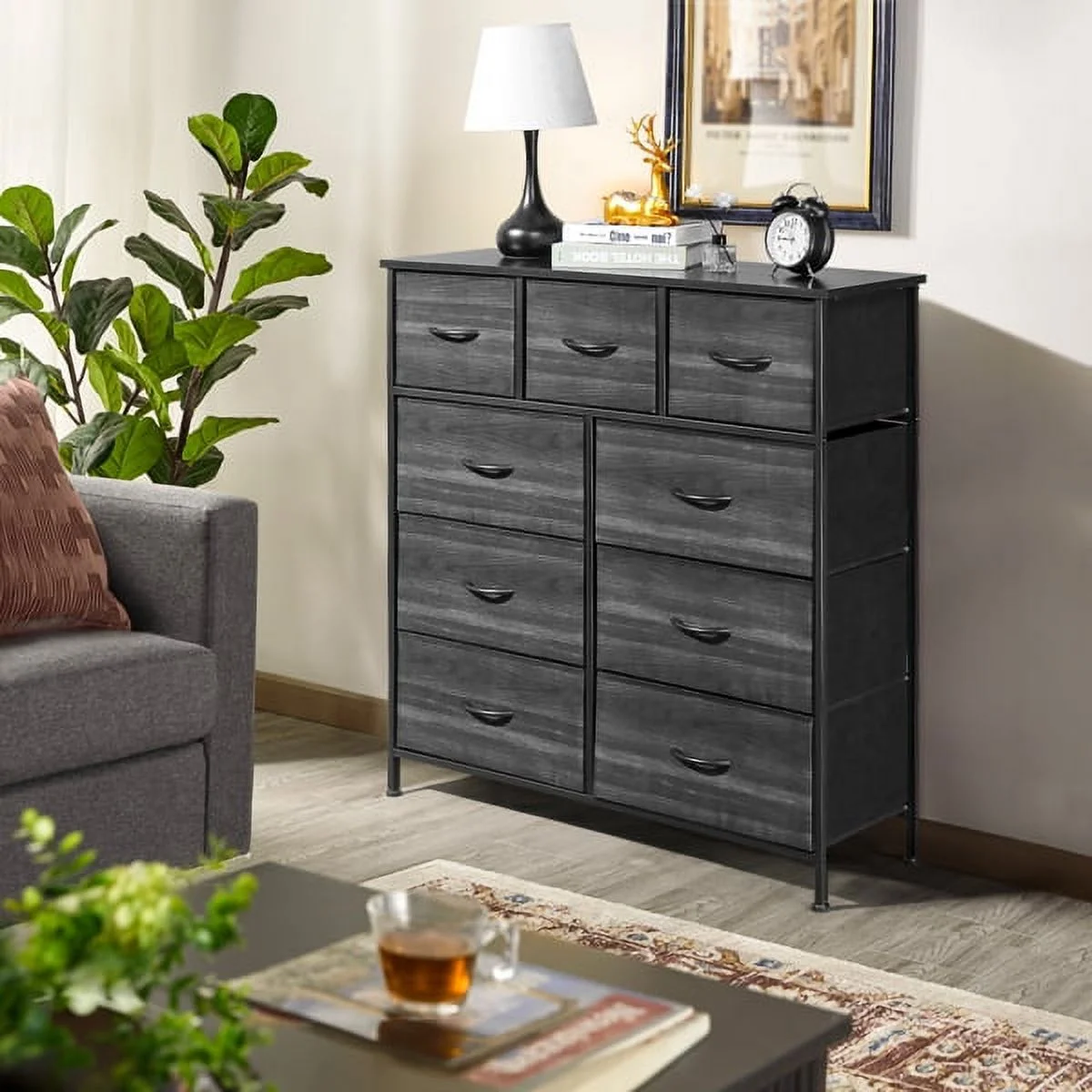 SYTHERS Fabric Dresser with 9 Drawers, Storage Organizer Unit with Fabric Bins for Closet, Living Room, Hallway, Dark Grey