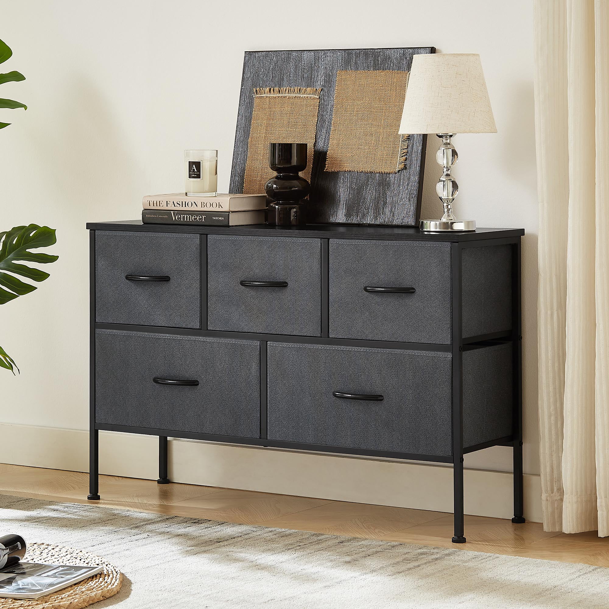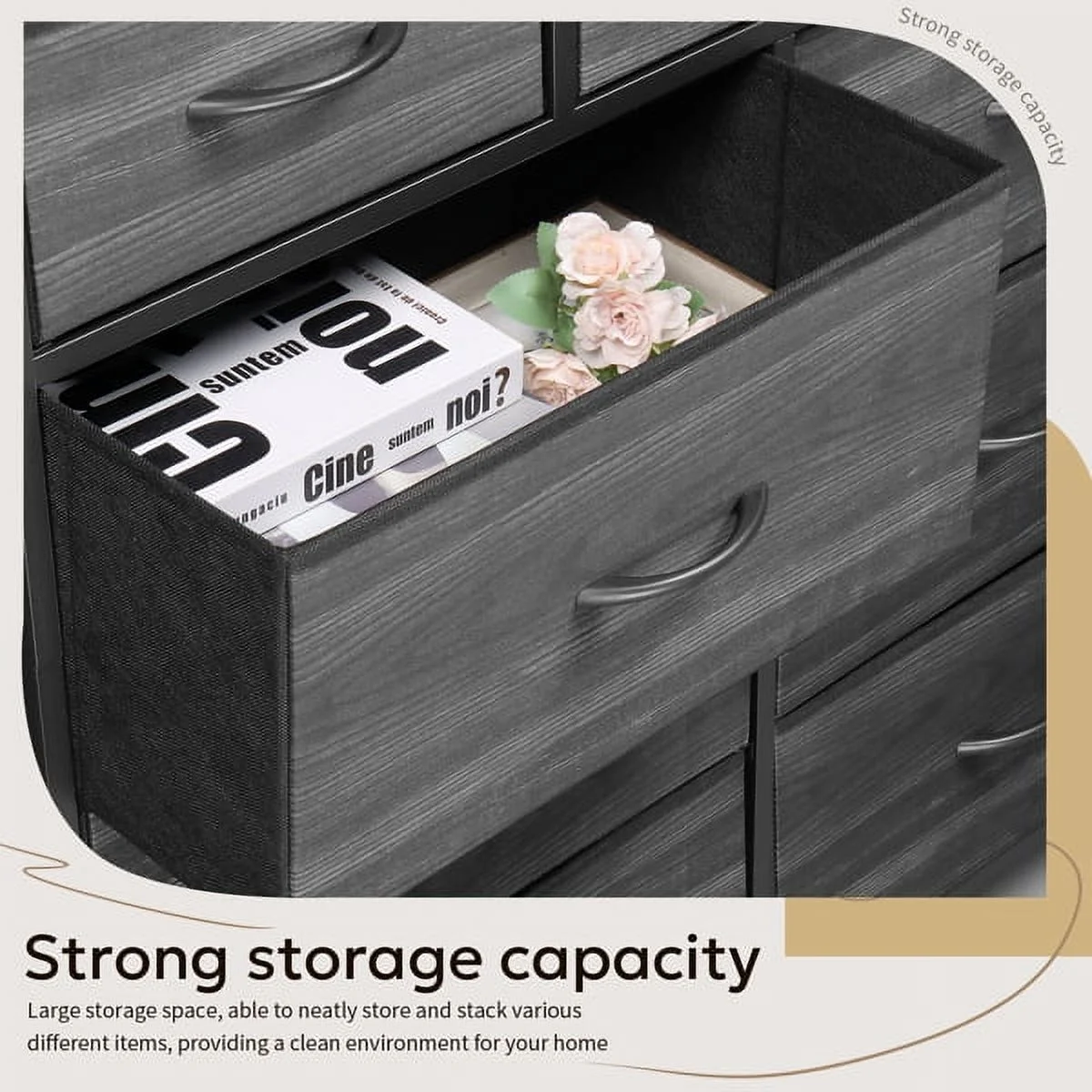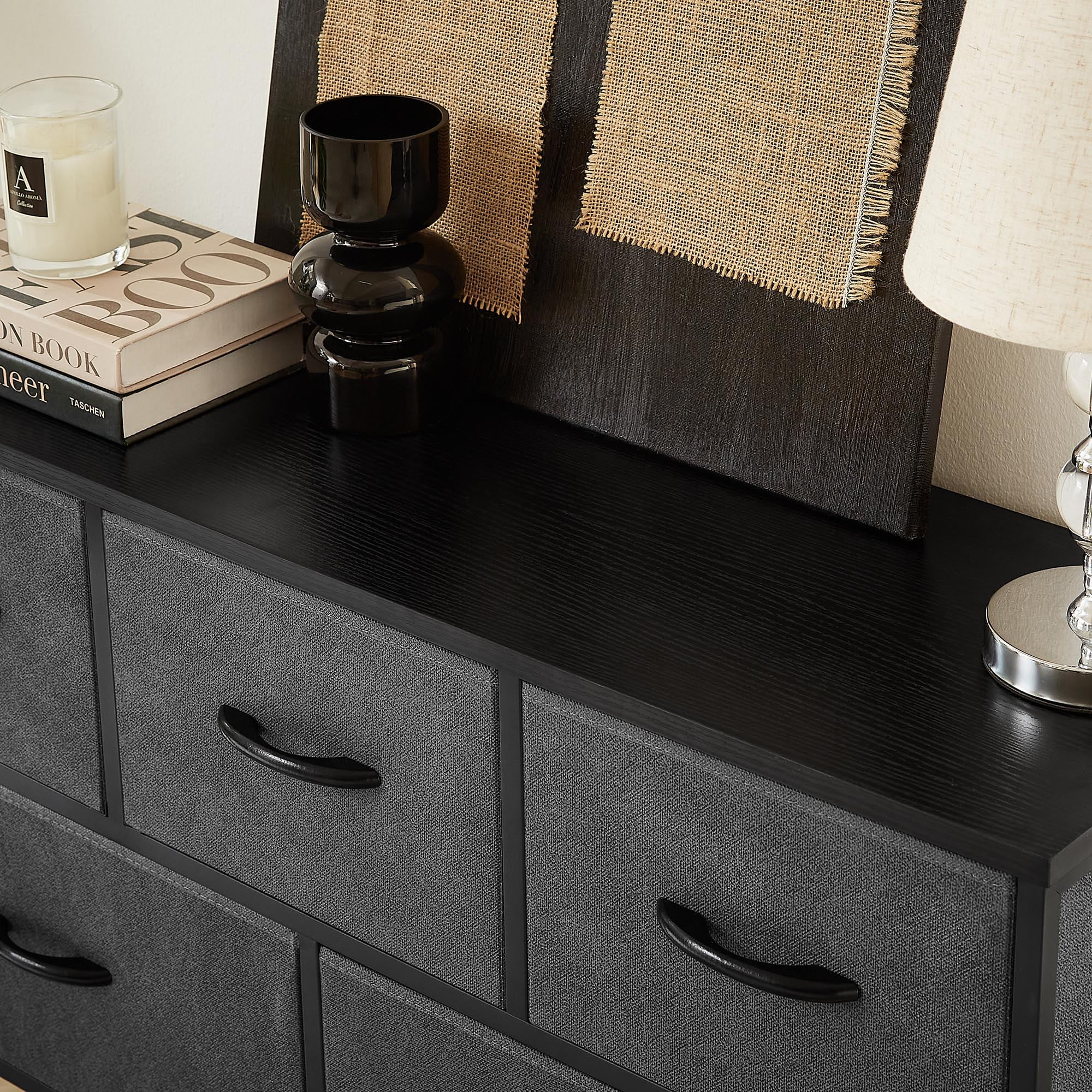 SYTHERS Fabric Dresser with 9 Drawers, Storage Organizer Unit with Fabric Bins for Closet, Living Room, Hallway, Dark Grey