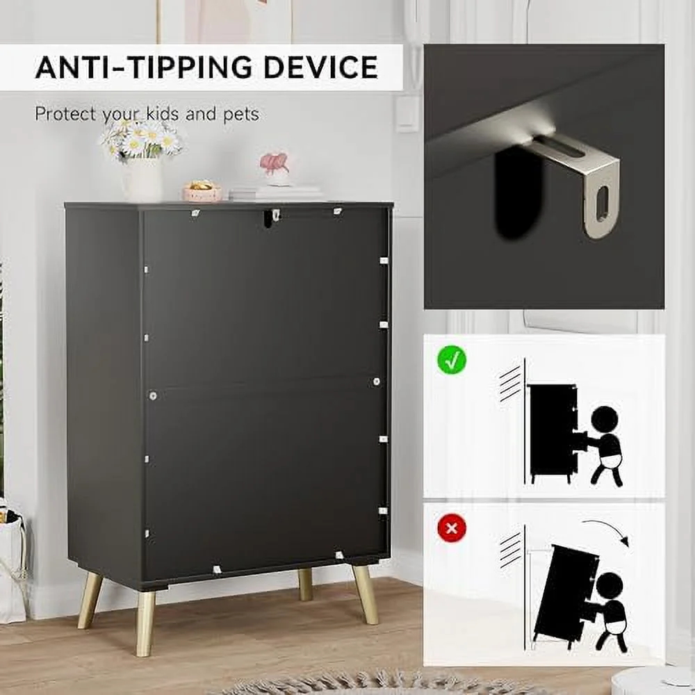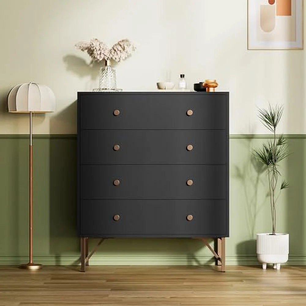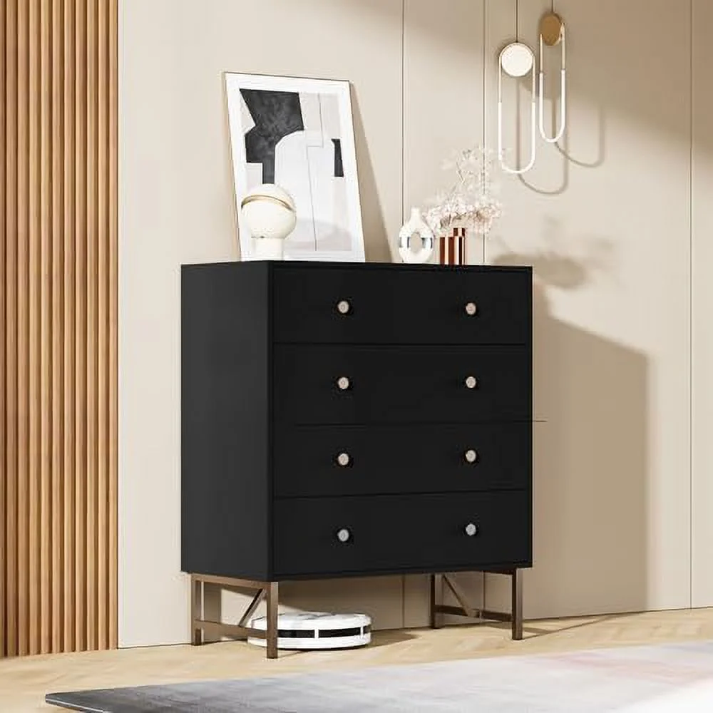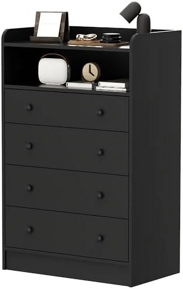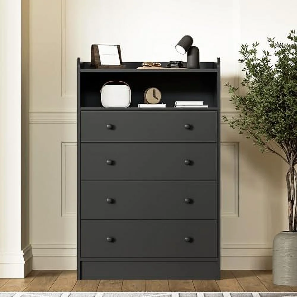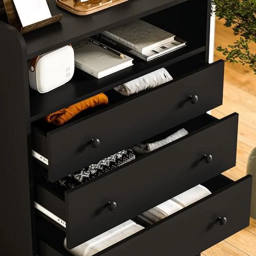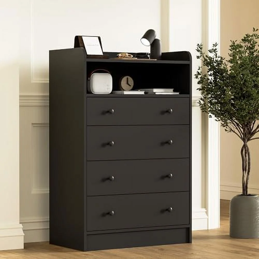 xrboomlife Black 4 Drawers with 1 Dresser Modern Wooden Dressers & Chests of Drawers for Bedroom Living Room