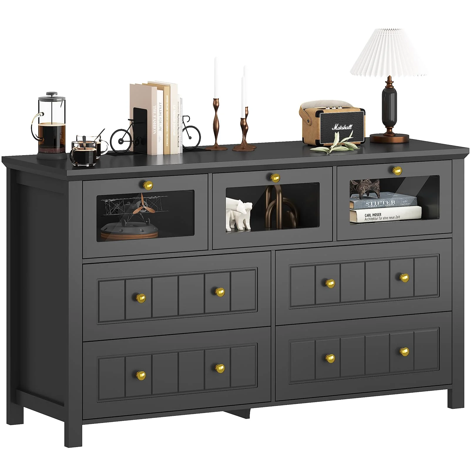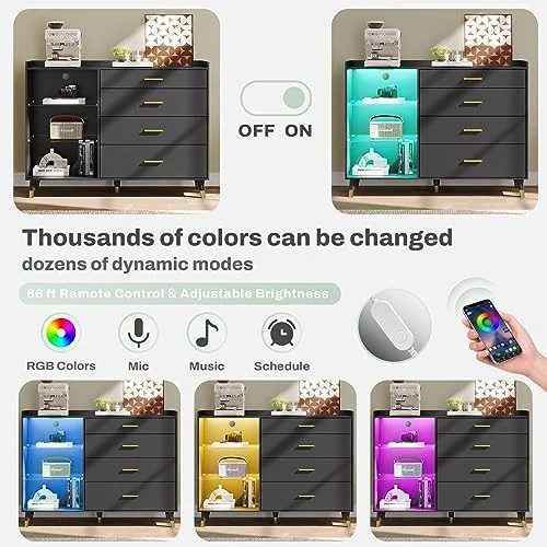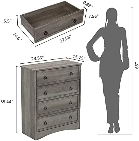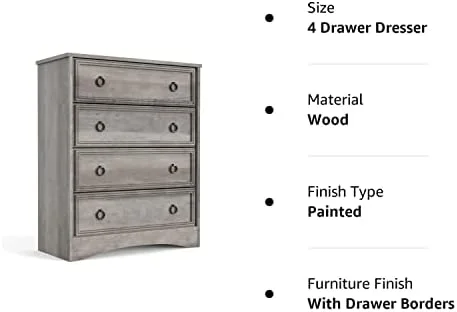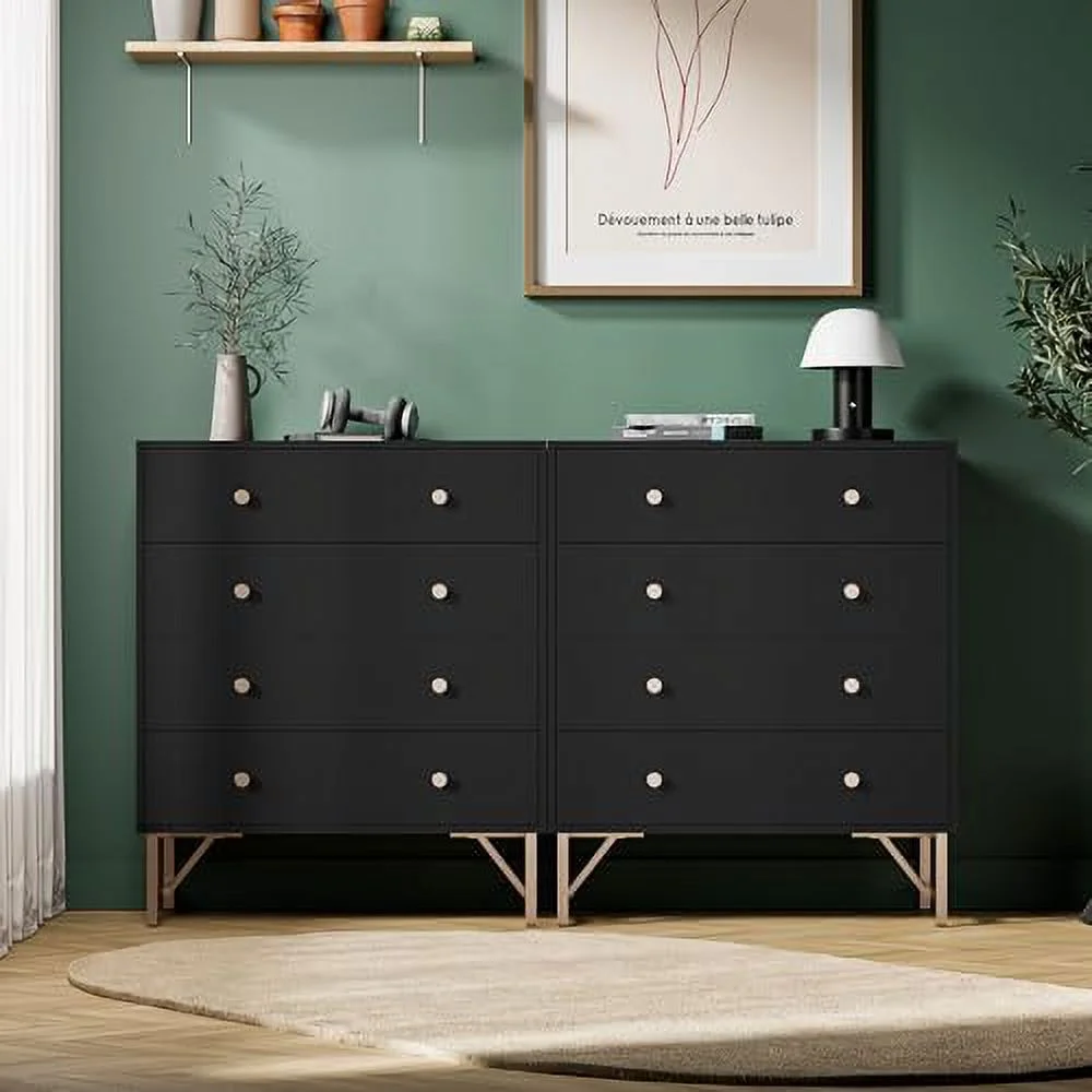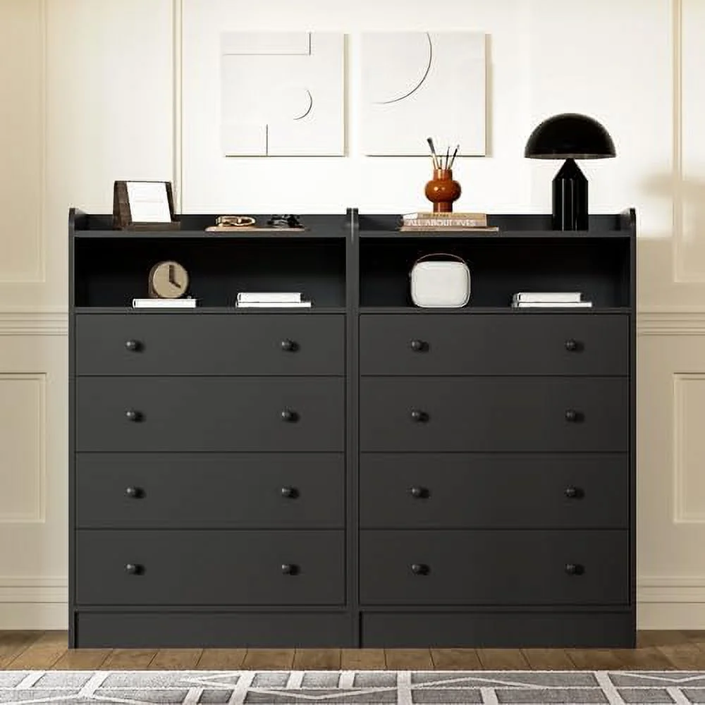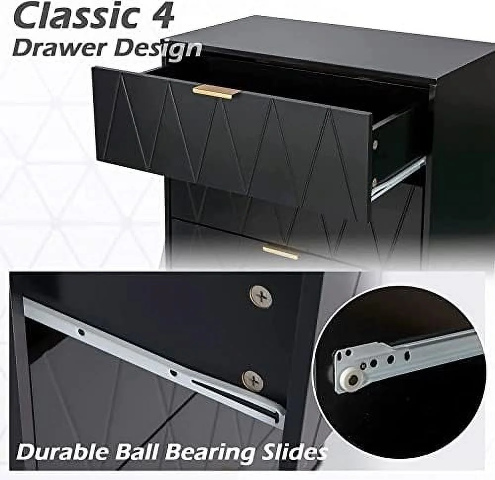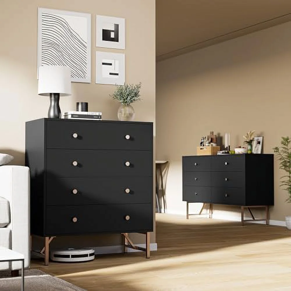 xrboomlife Black 4 Drawers with 1 Dresser Modern Wooden Dressers & Chests of Drawers for Bedroom Living Room