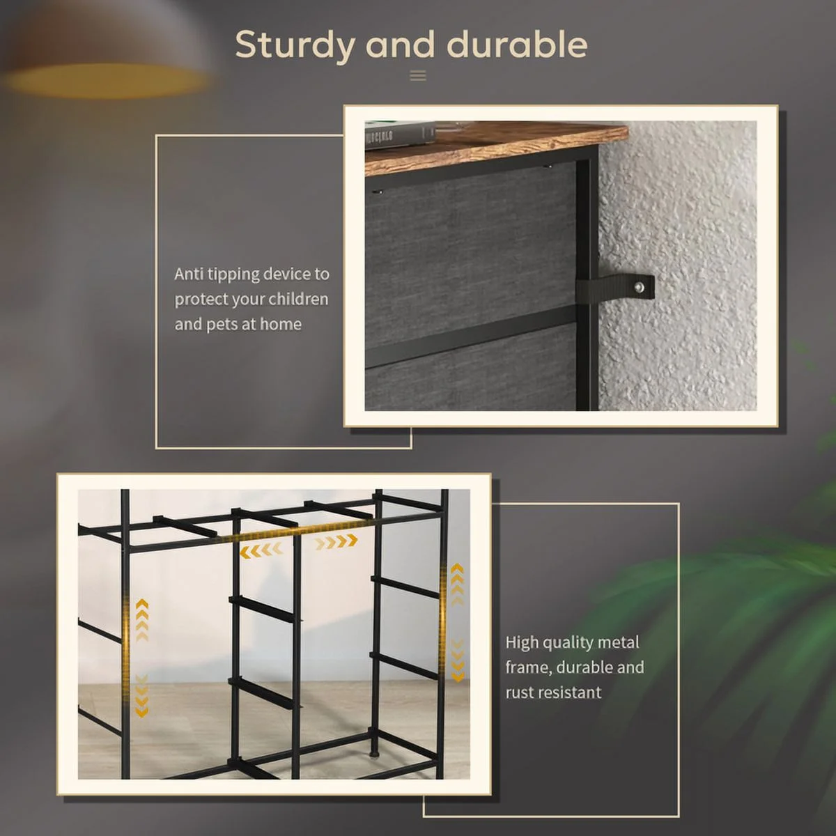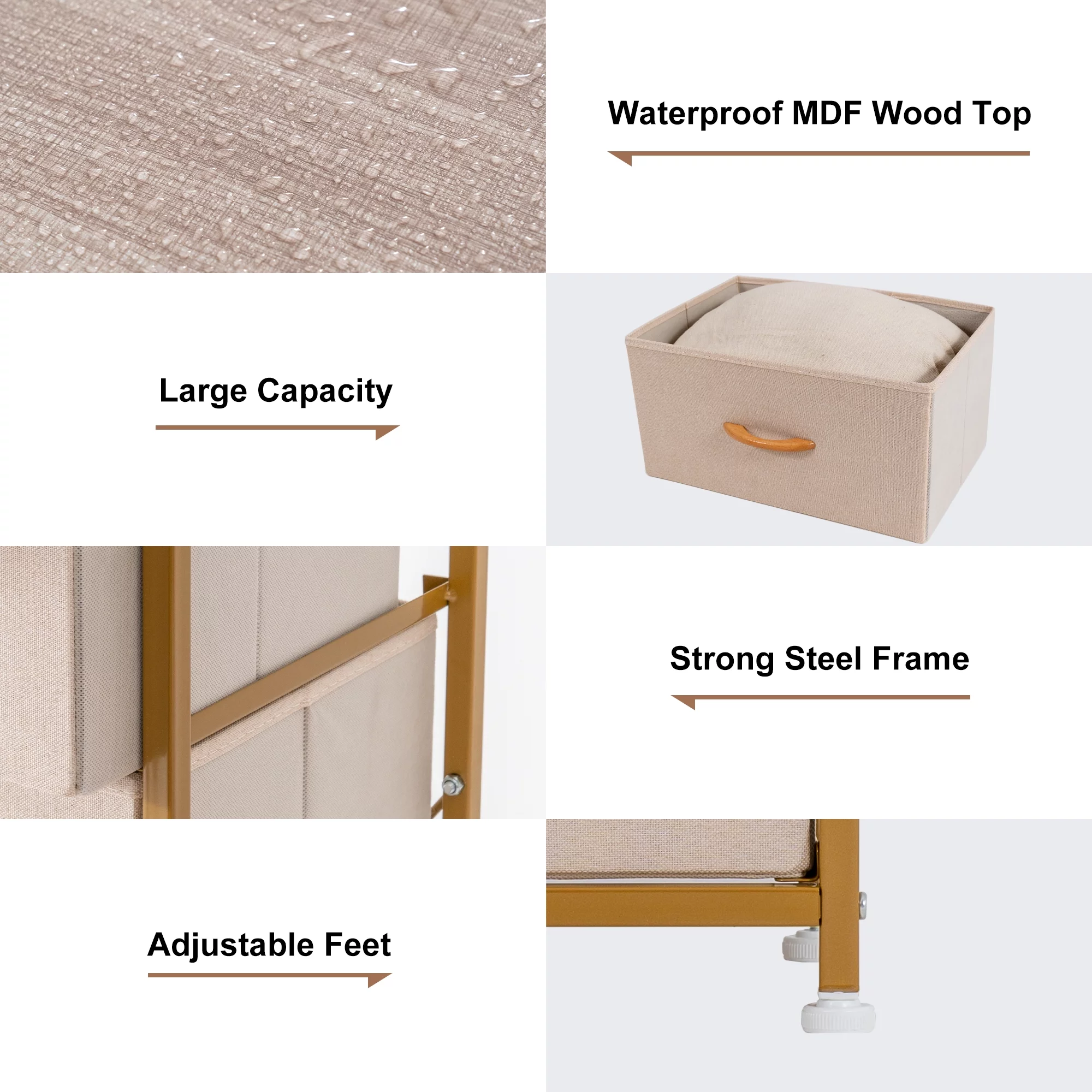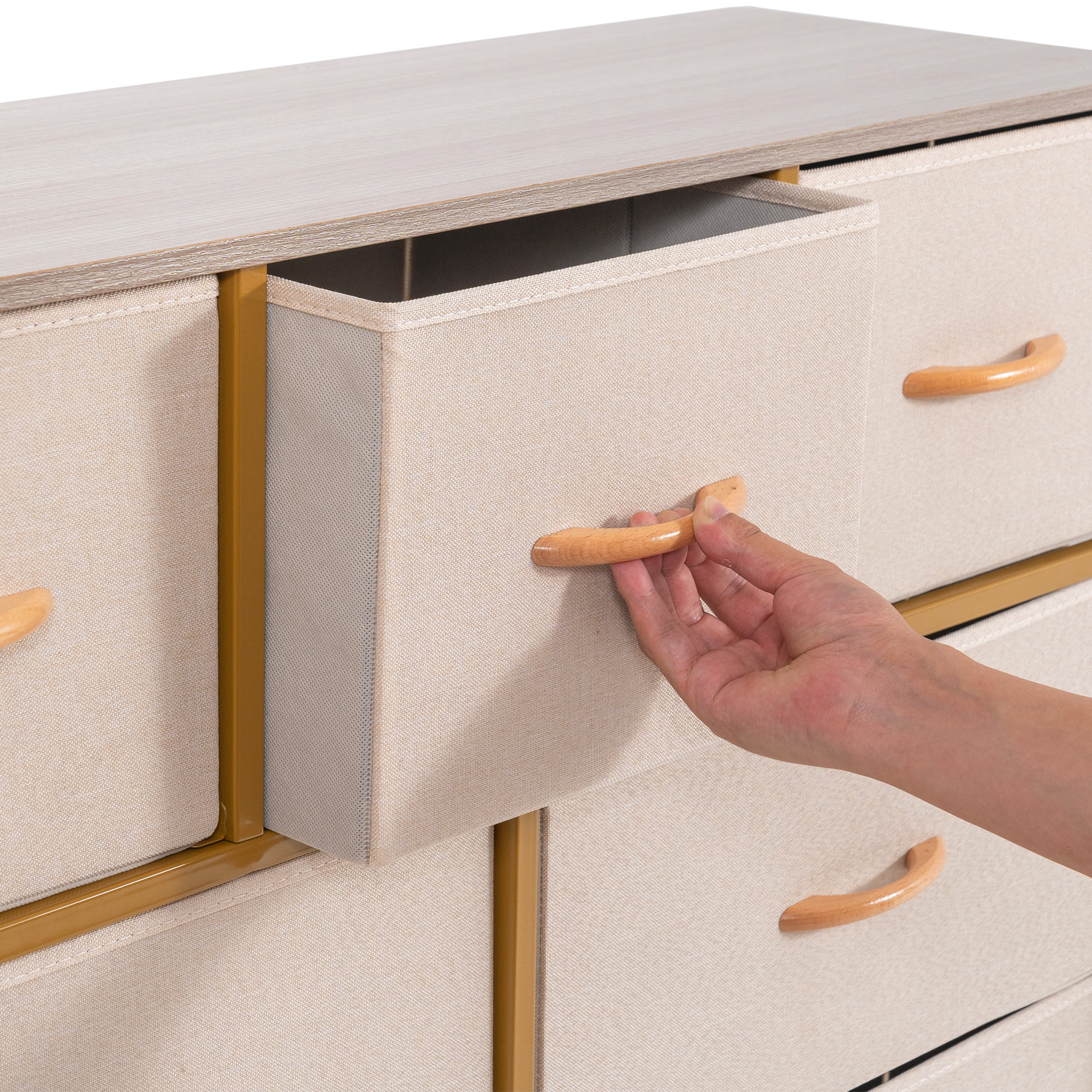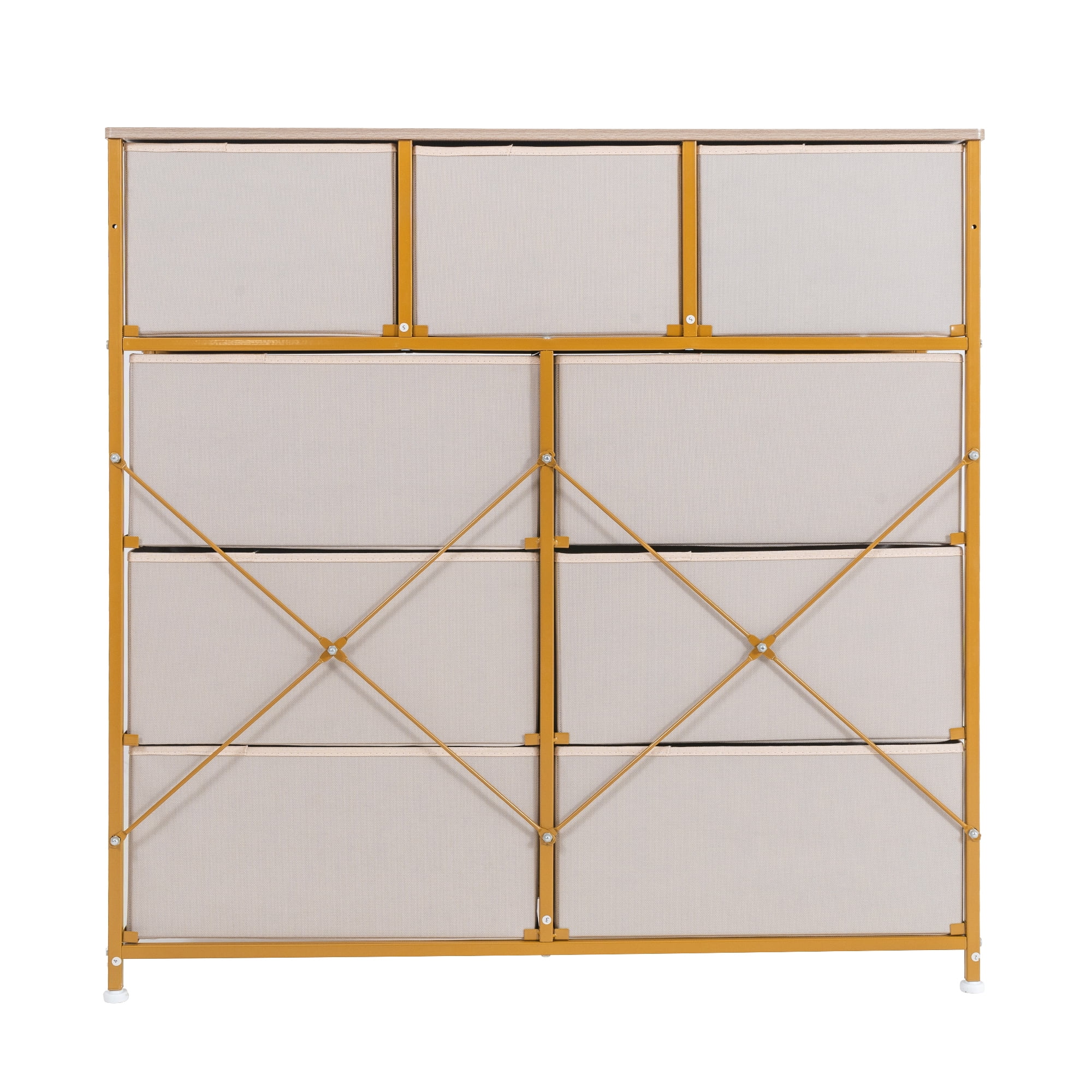 Bedroom Storage Dresser with 9 Drawers Bins Steel Frame Organizer Non-woven Fabric Chest Gold Pink