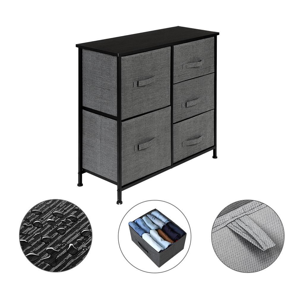 Homfa 5 Drawer Dresser with Door, Modern Accent Storage Cabinet Chest of Drawers for Bedroom Living Room, Black
